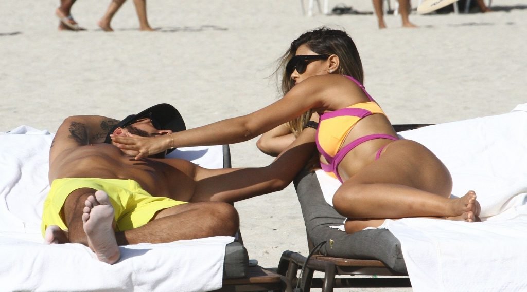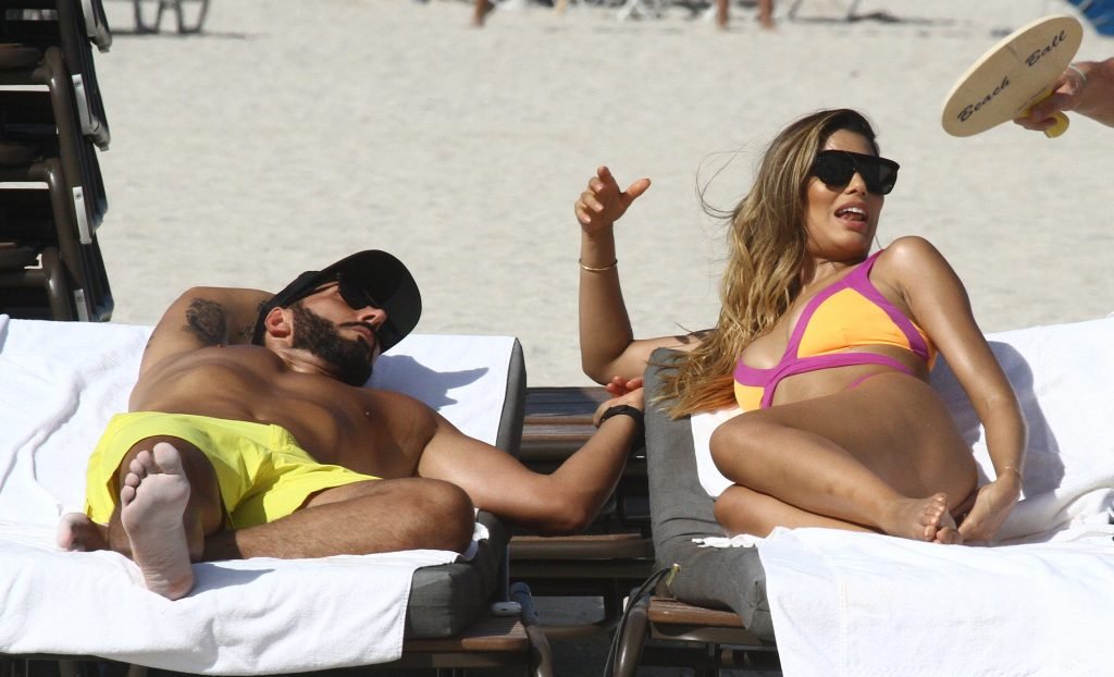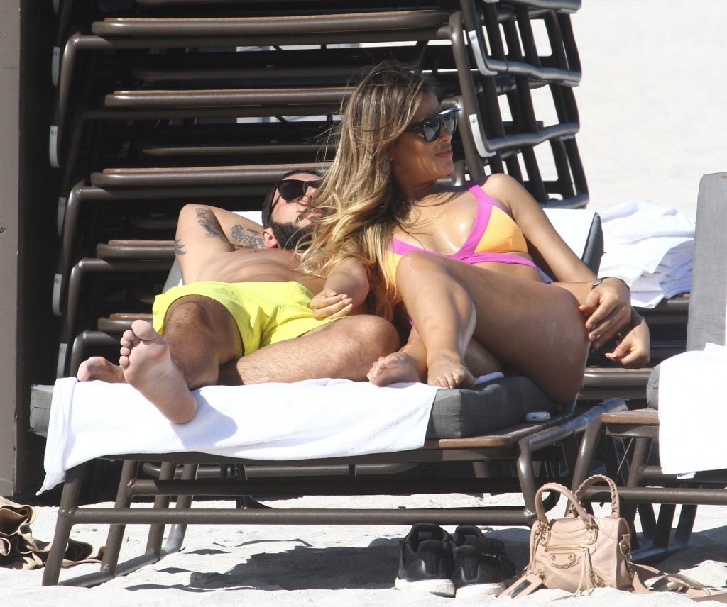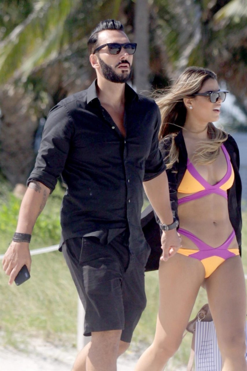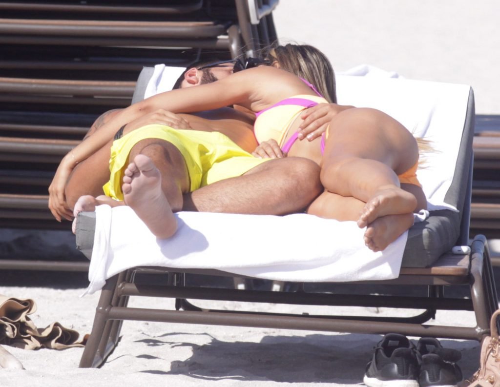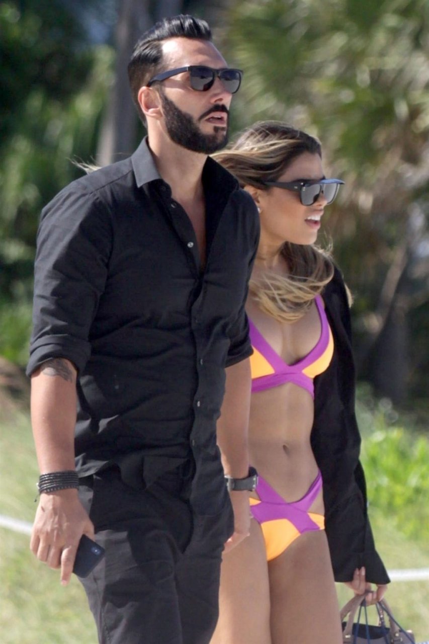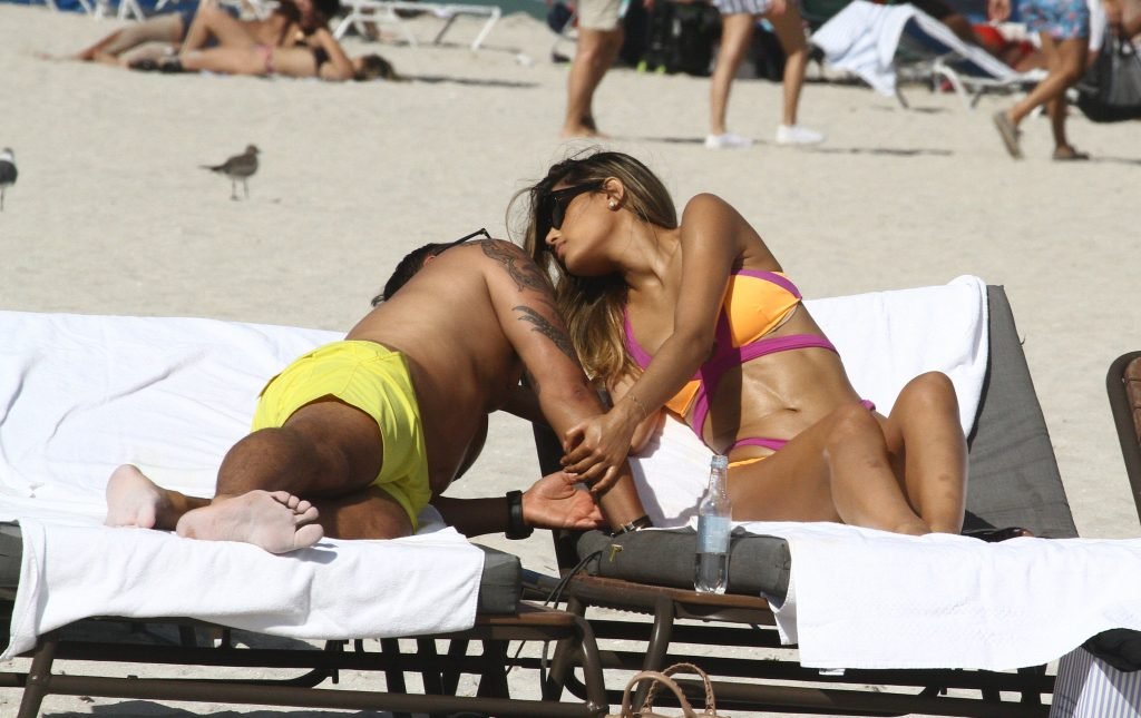 Colombiana sexy, la ex Miss Universo de 24 años, Ariadna Gutierrez, mostró su cuerpo en bikini jugando con una amiga en la playa de Miami Beach, 30/08/2018.