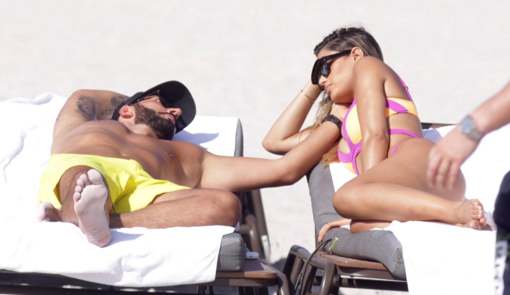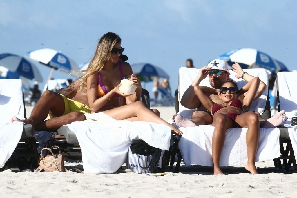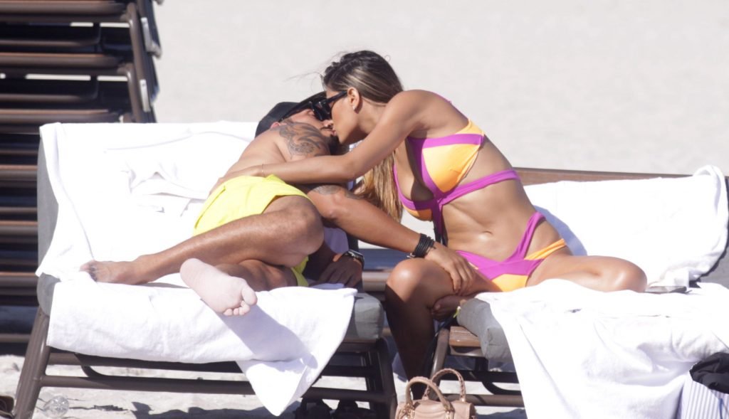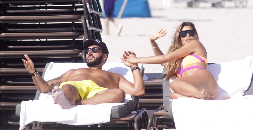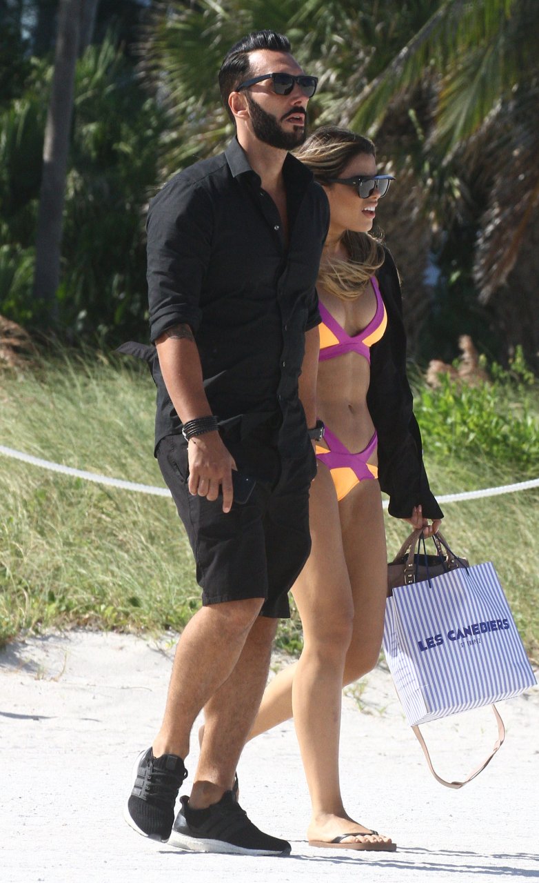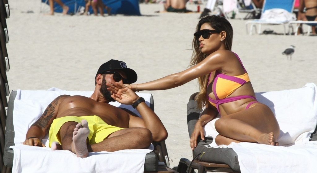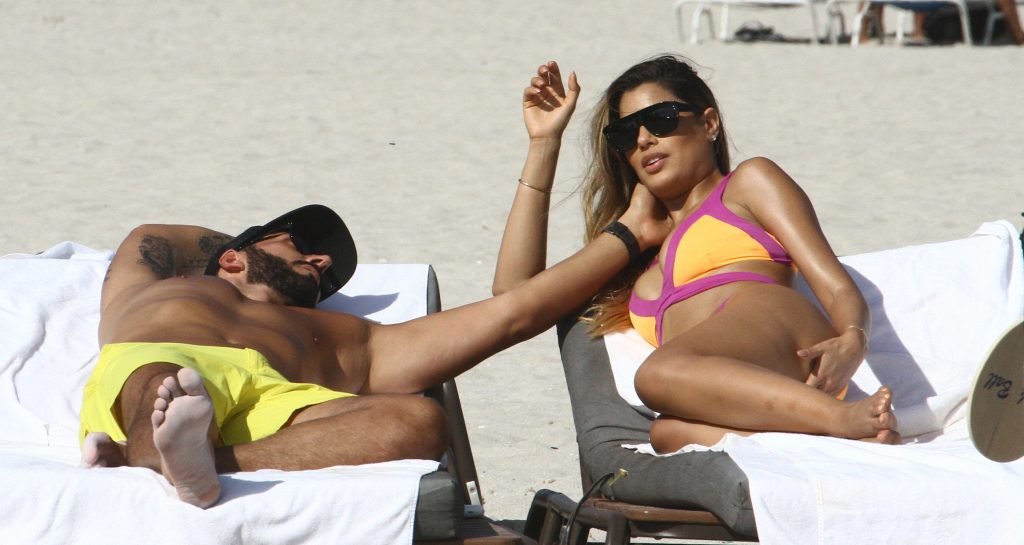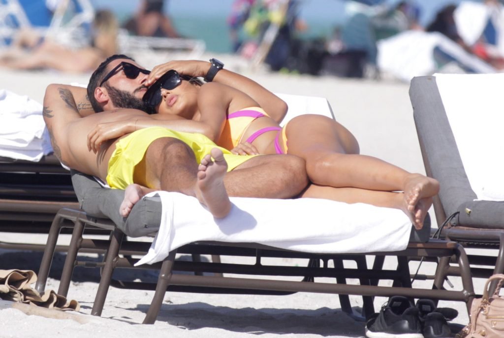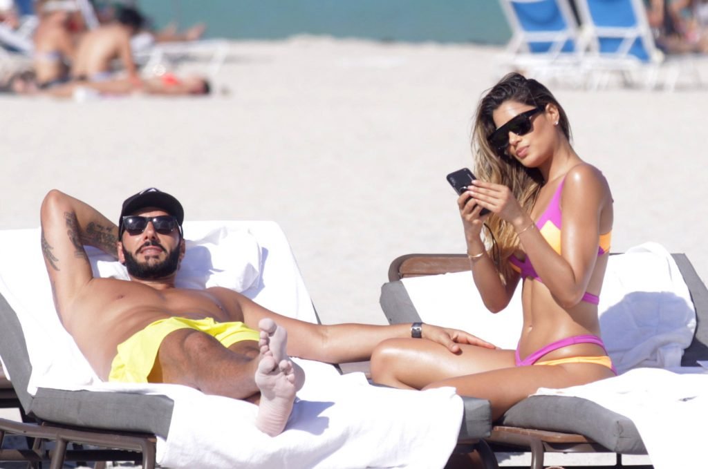 Colombiana sexy, la ex Miss Universo de 24 años, Ariadna Gutierrez, mostró su cuerpo en bikini jugando con una amiga en la playa de Miami Beach, 30/08/2018.