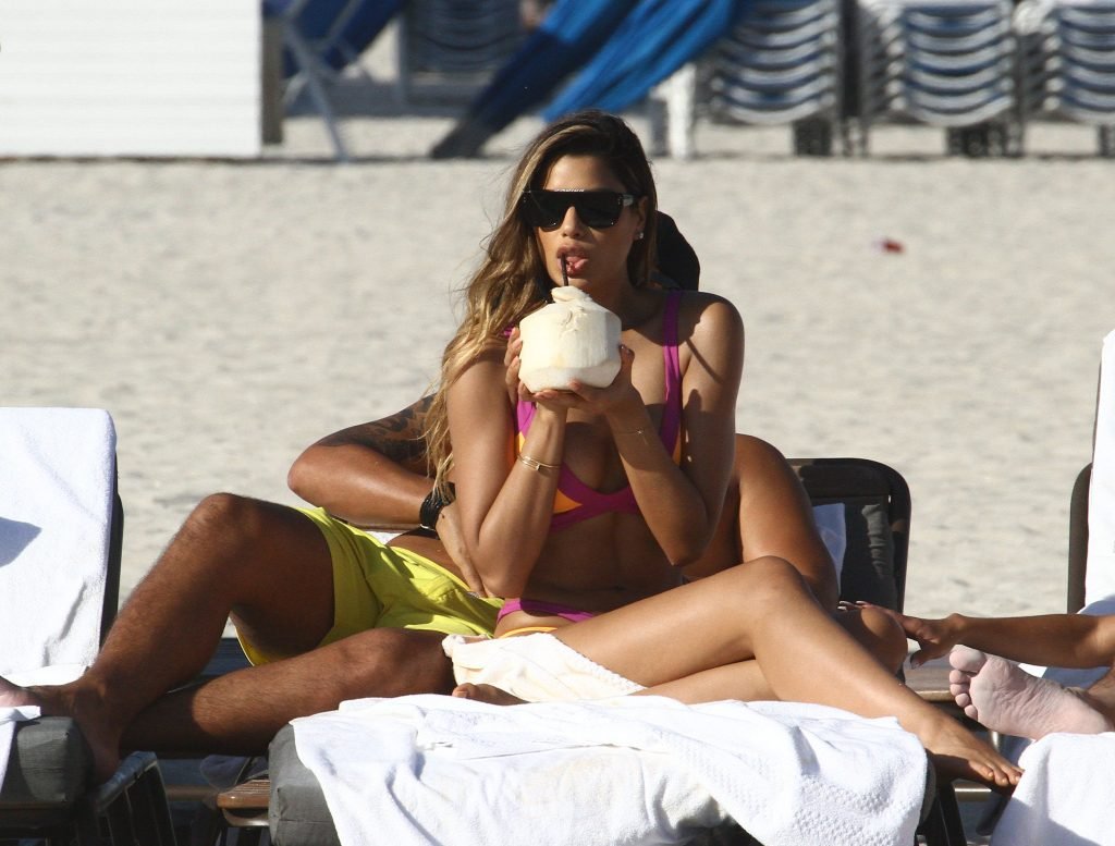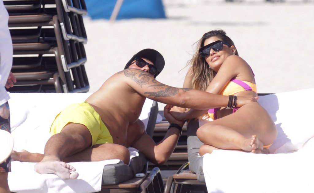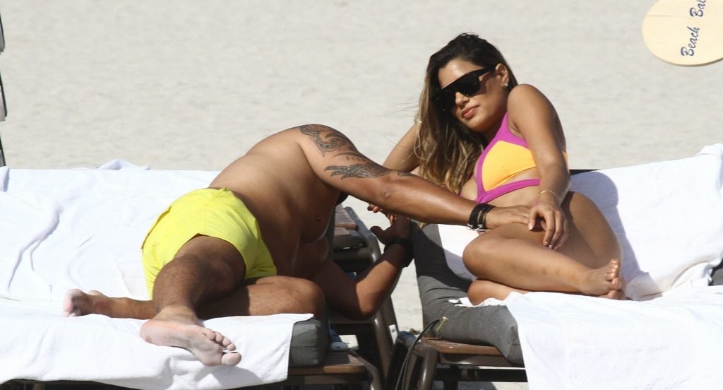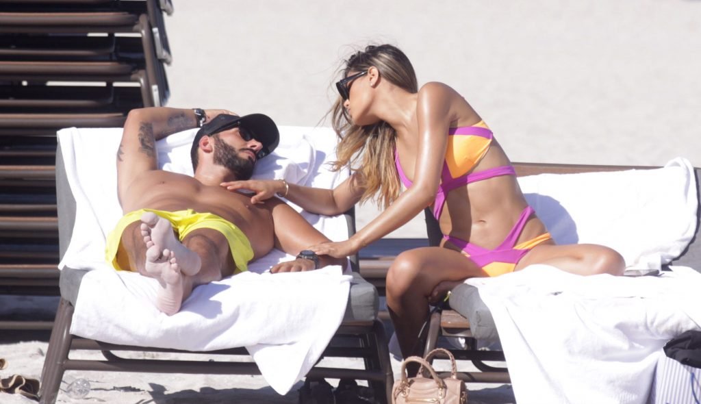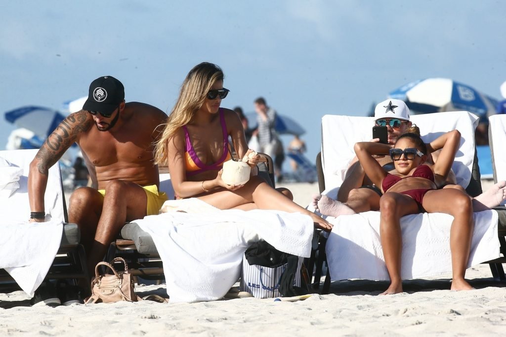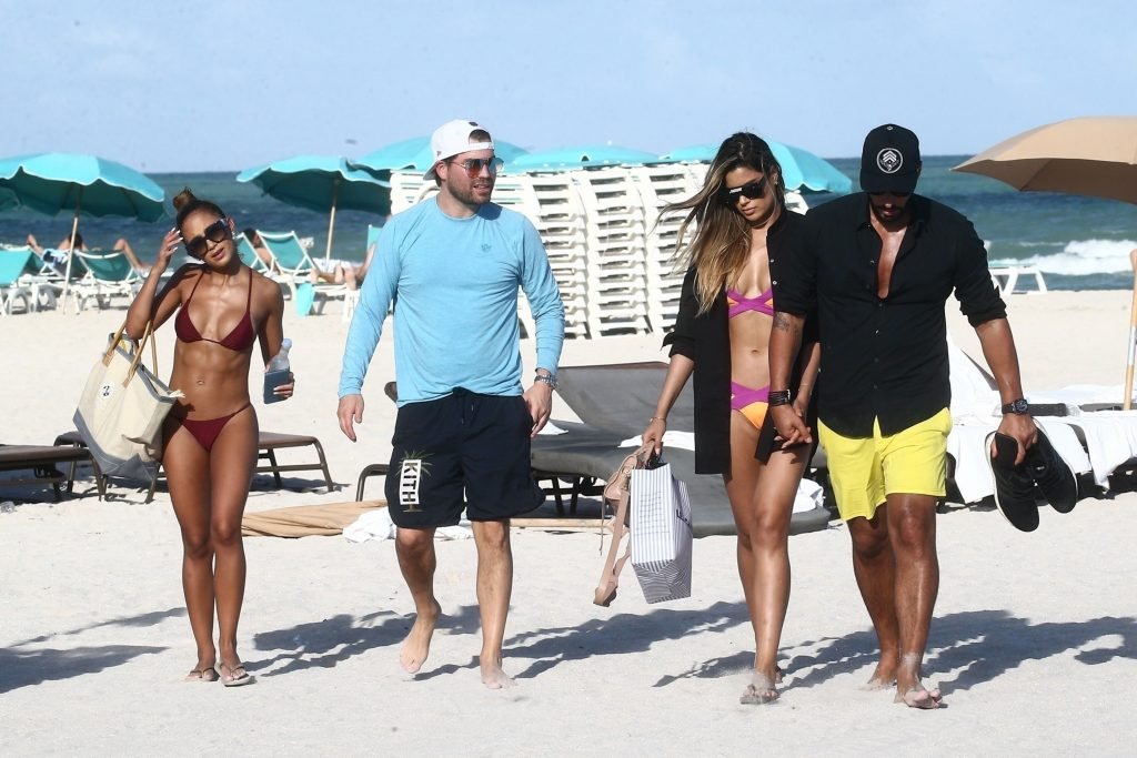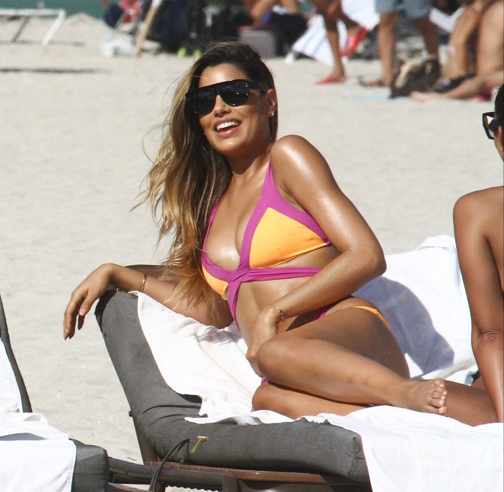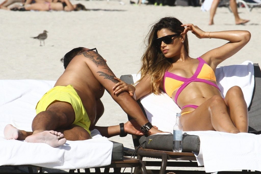 Colombiana sexy, la ex Miss Universo de 24 años, Ariadna Gutierrez, mostró su cuerpo en bikini jugando con una amiga en la playa de Miami Beach, 30/08/2018.