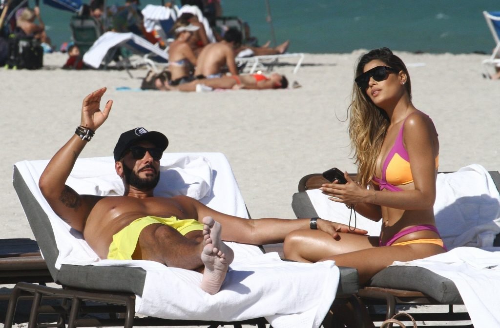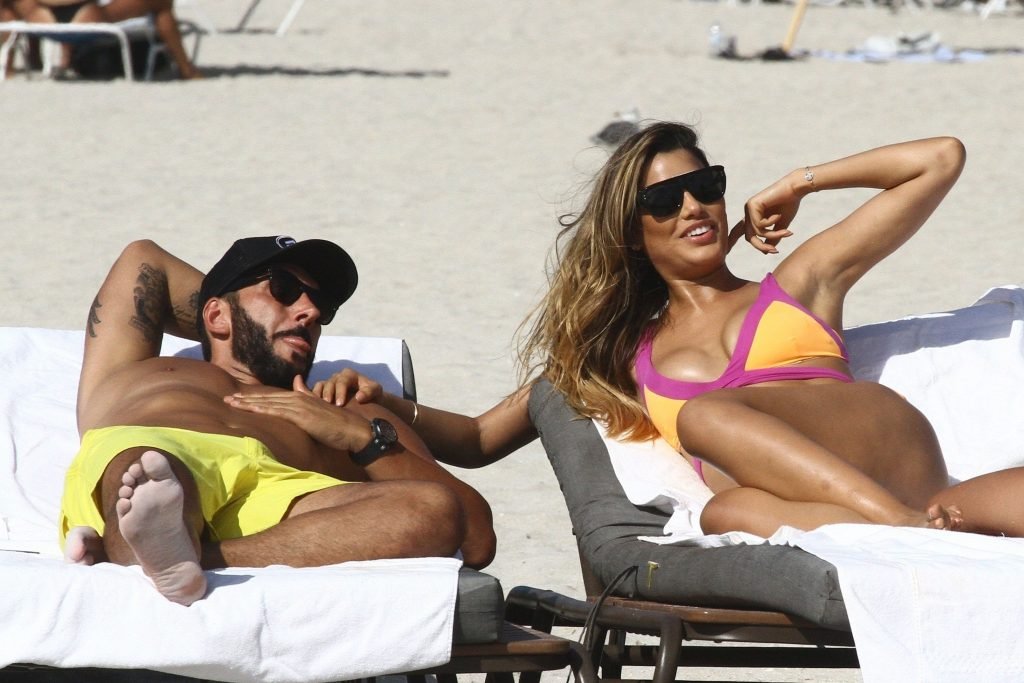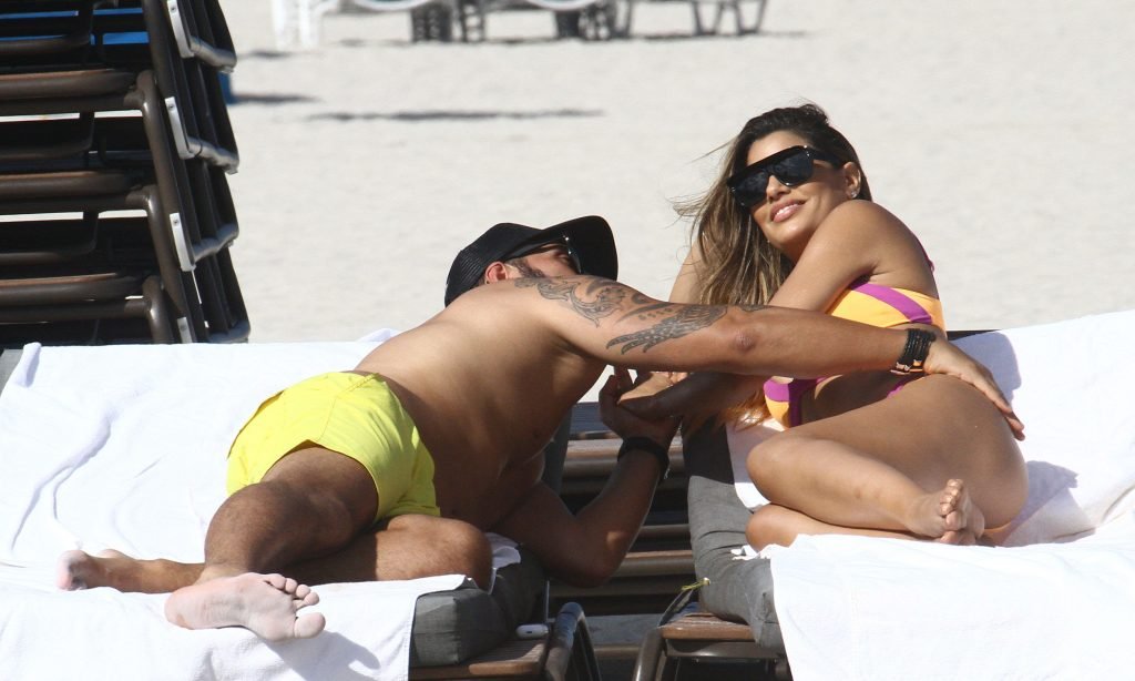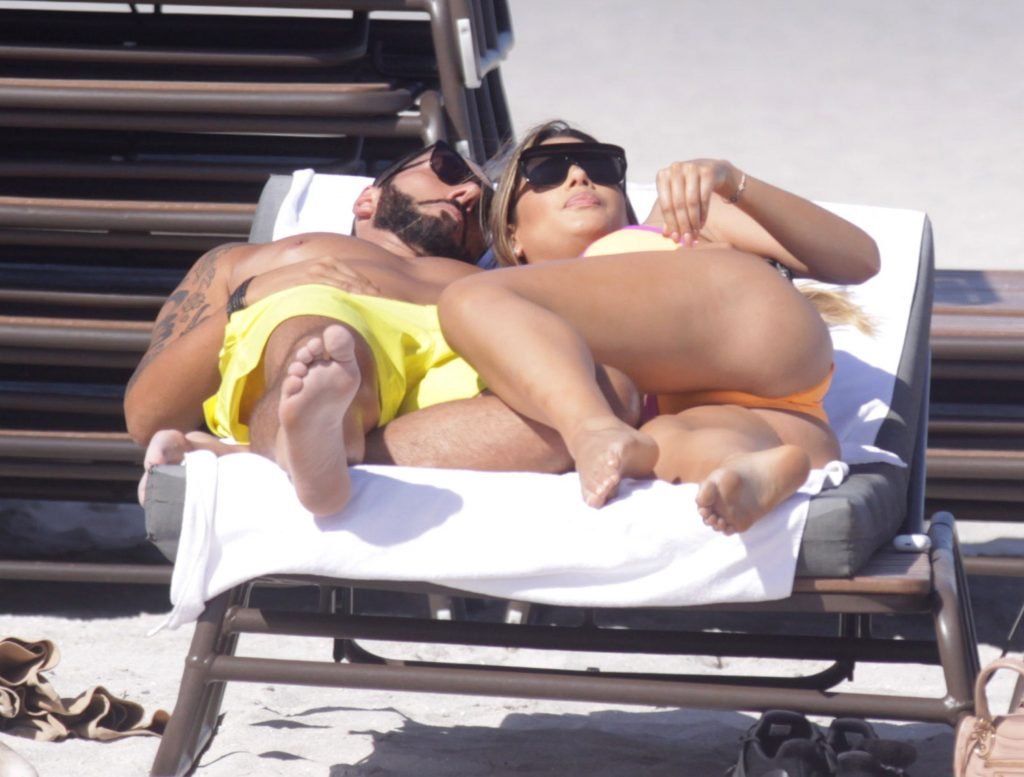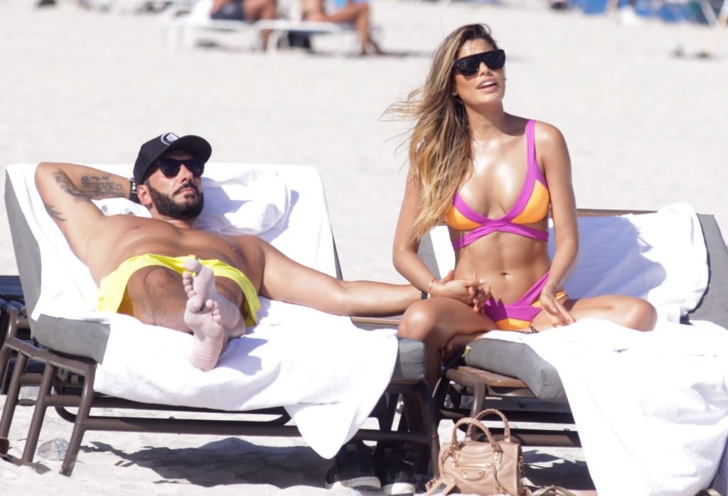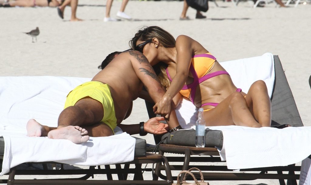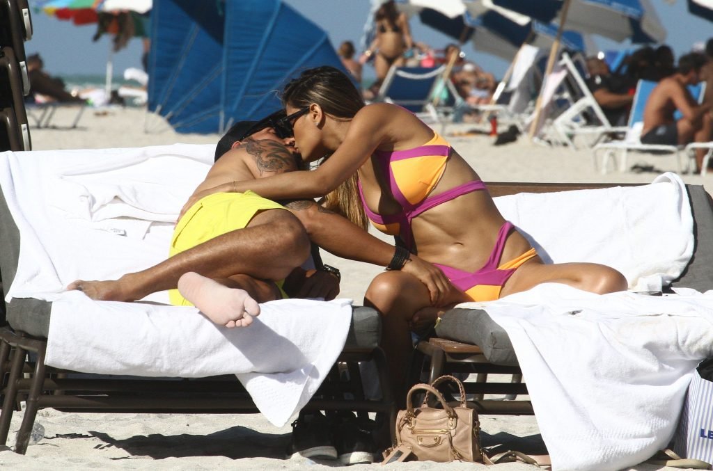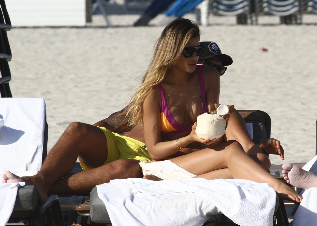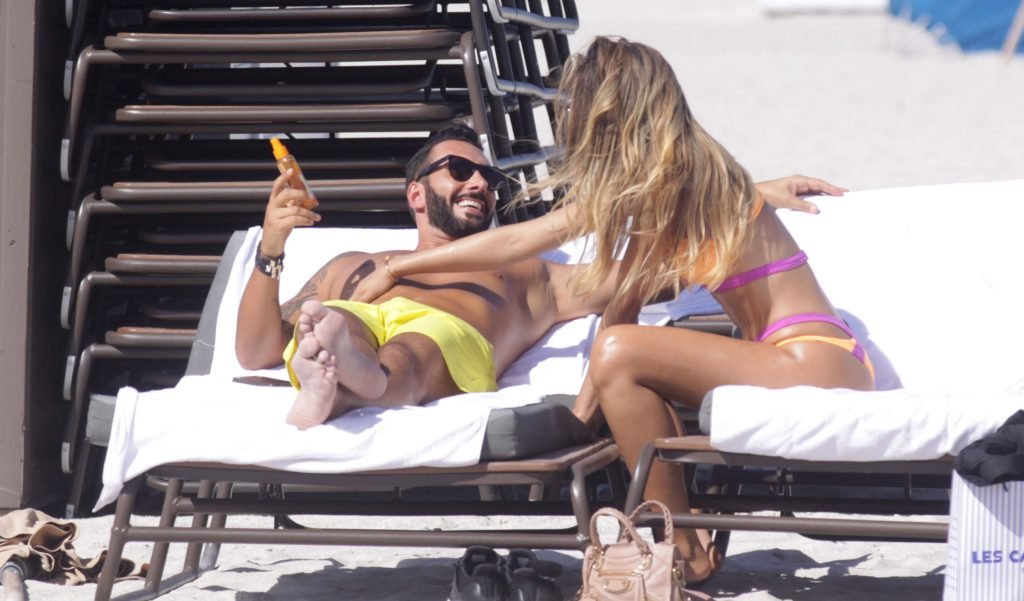 Colombiana sexy, la ex Miss Universo de 24 años, Ariadna Gutierrez, mostró su cuerpo en bikini jugando con una amiga en la playa de Miami Beach, 30/08/2018.