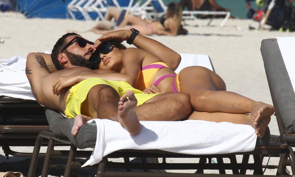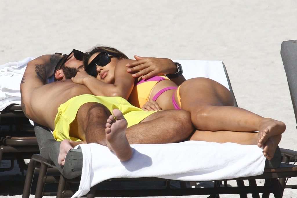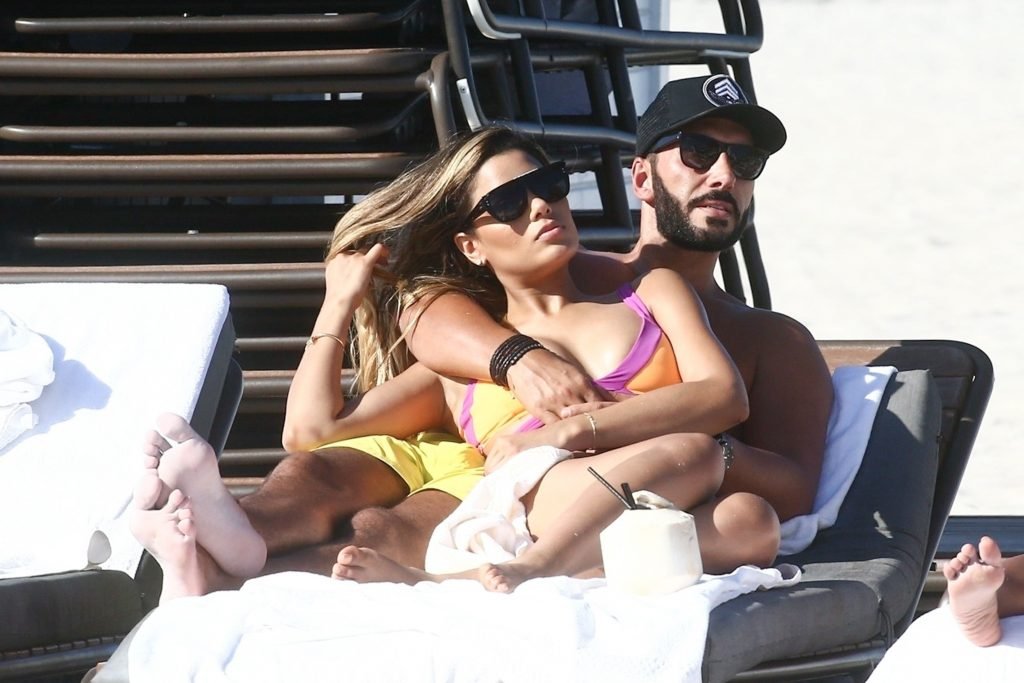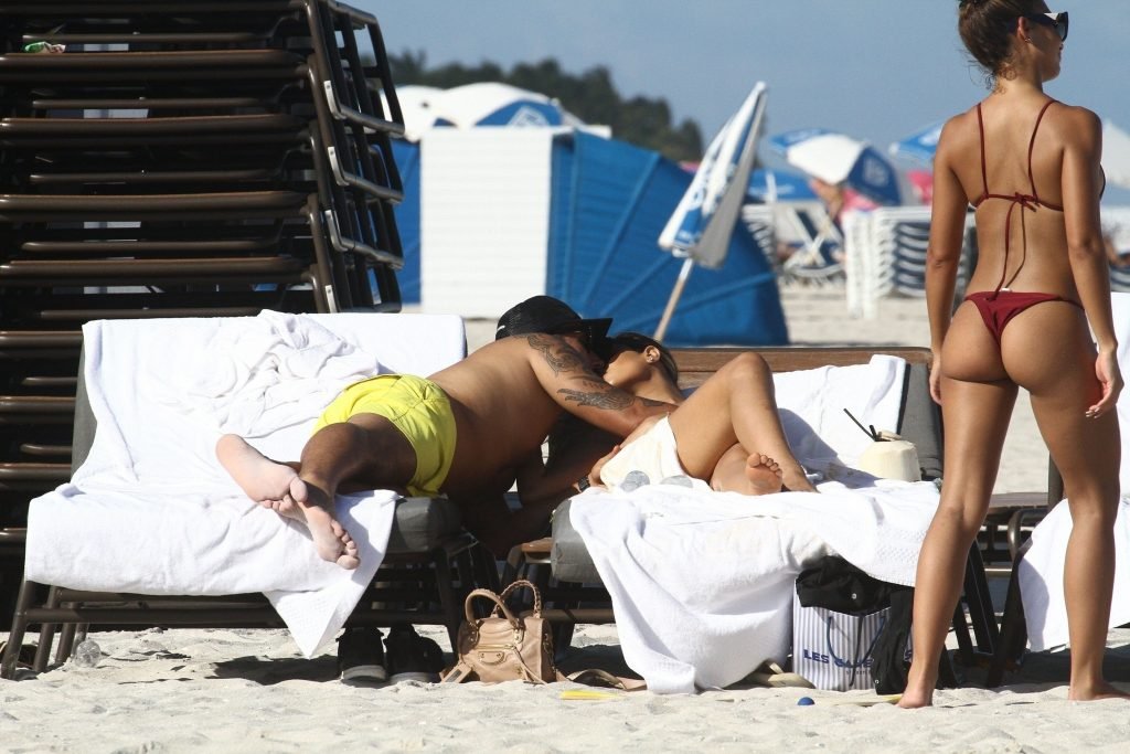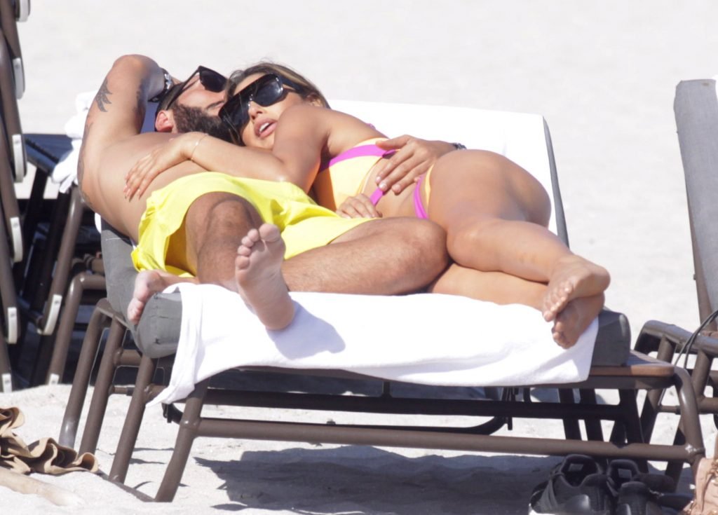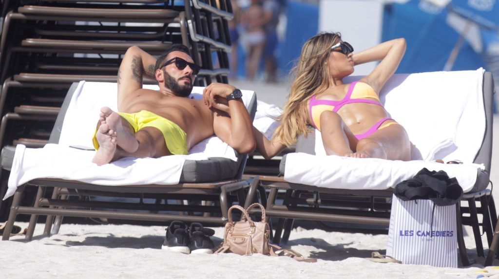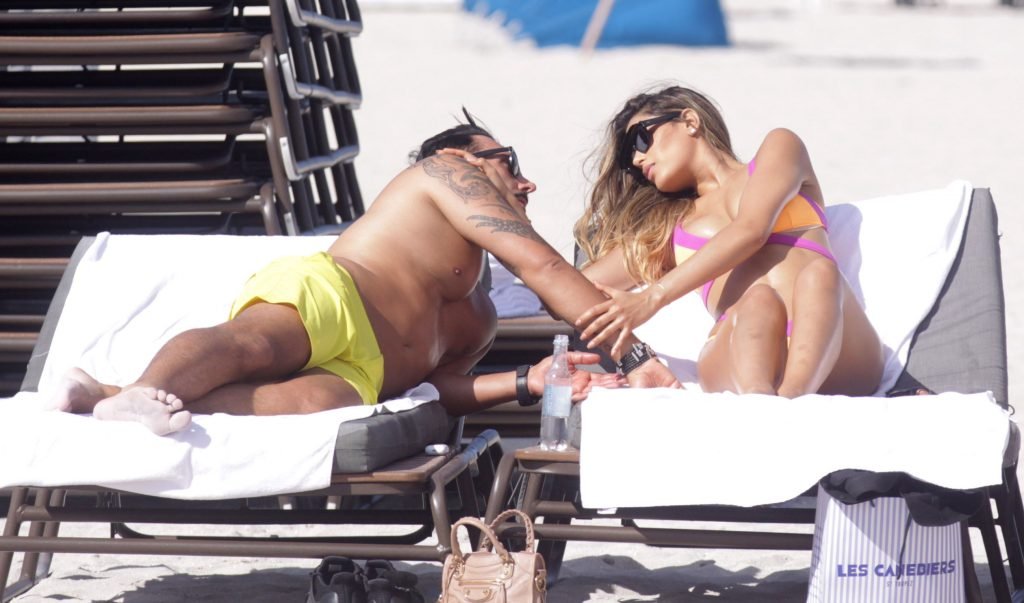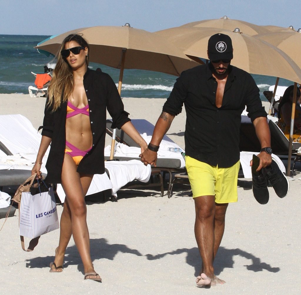 Colombiana sexy, la ex Miss Universo de 24 años, Ariadna Gutierrez, mostró su cuerpo en bikini jugando con una amiga en la playa de Miami Beach, 30/08/2018.