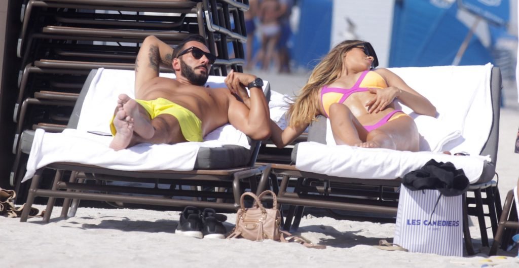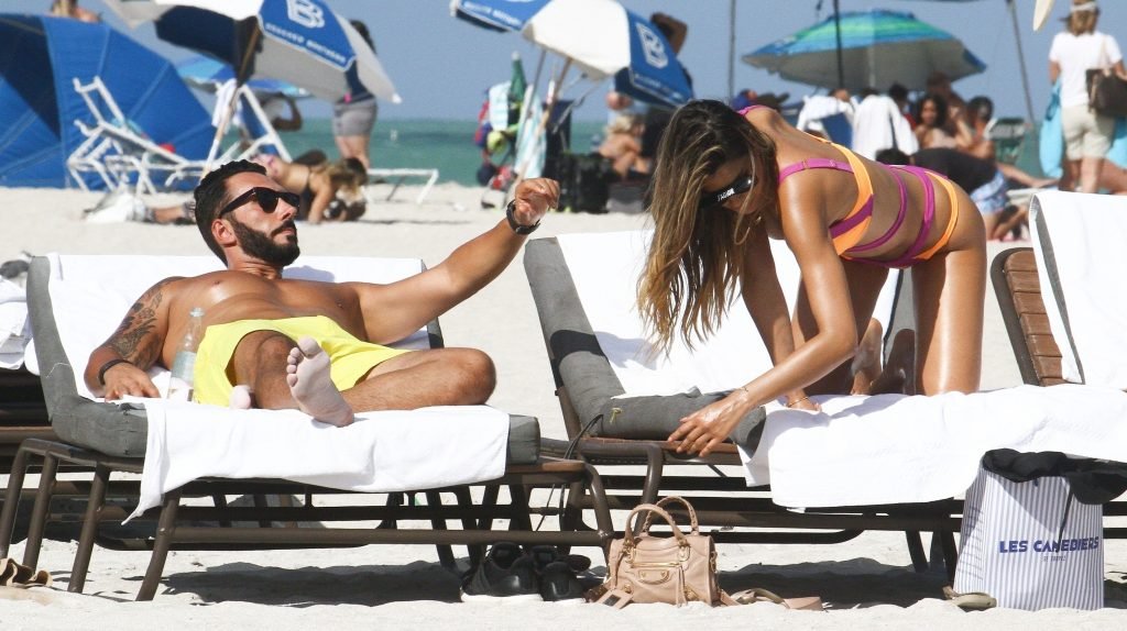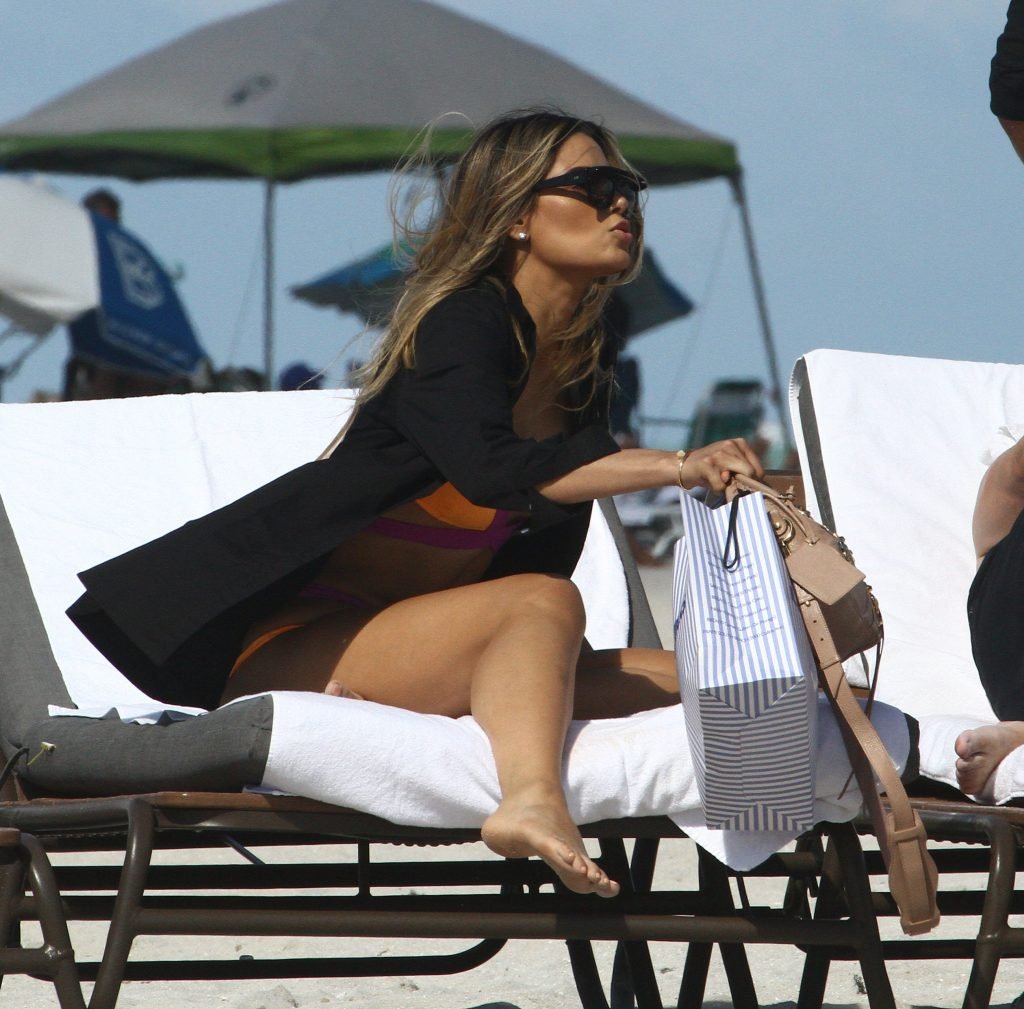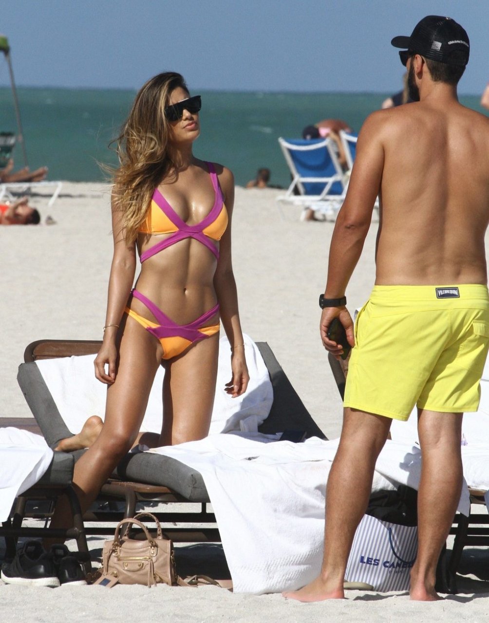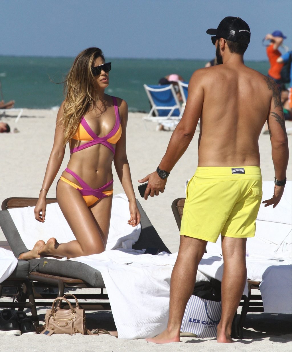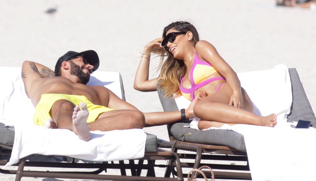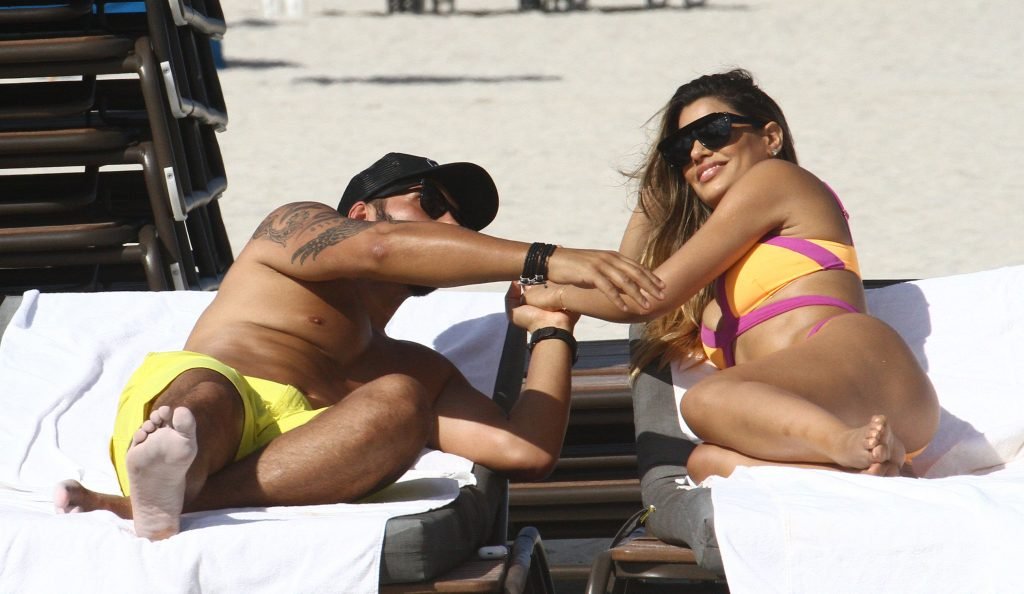Colombiana sexy, la ex Miss Universo de 24 años, Ariadna Gutierrez, mostró su cuerpo en bikini jugando con una amiga en la playa de Miami Beach, 30/08/2018.