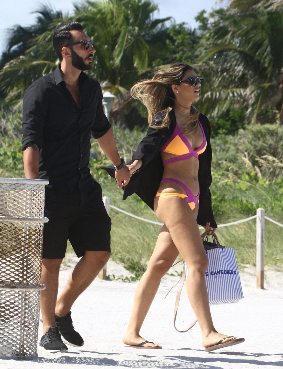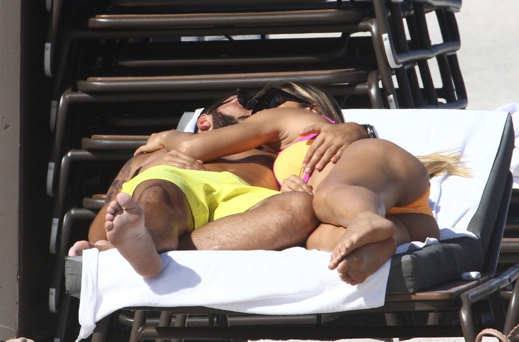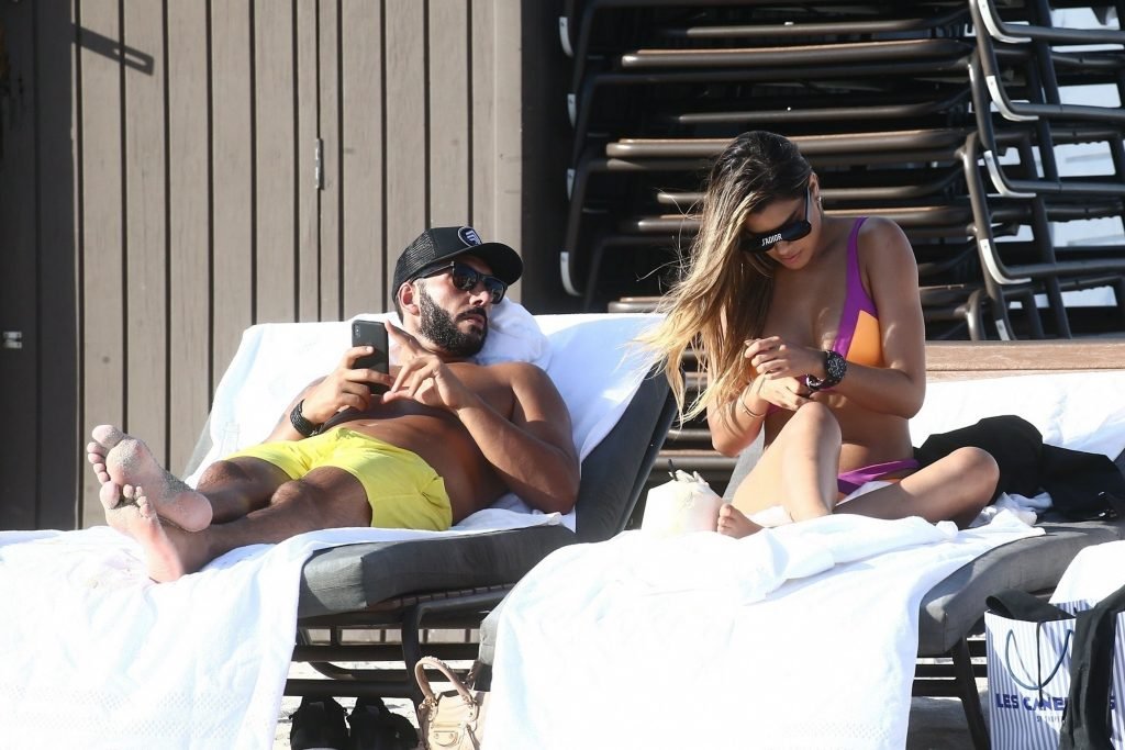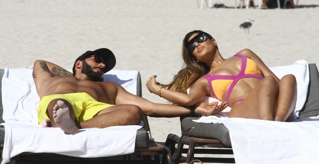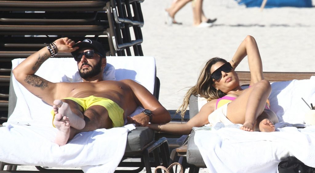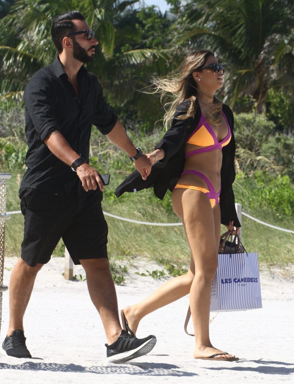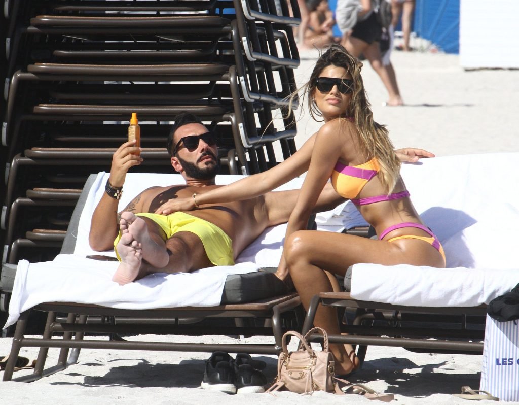 Colombiana sexy, la ex Miss Universo de 24 años, Ariadna Gutierrez, mostró su cuerpo en bikini jugando con una amiga en la playa de Miami Beach, 30/08/2018.