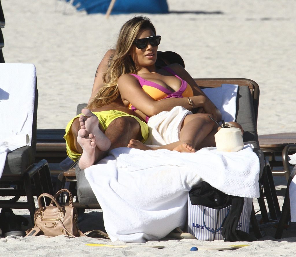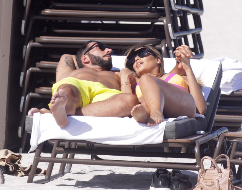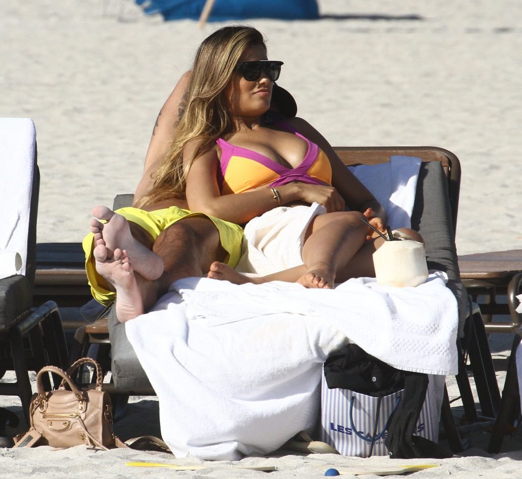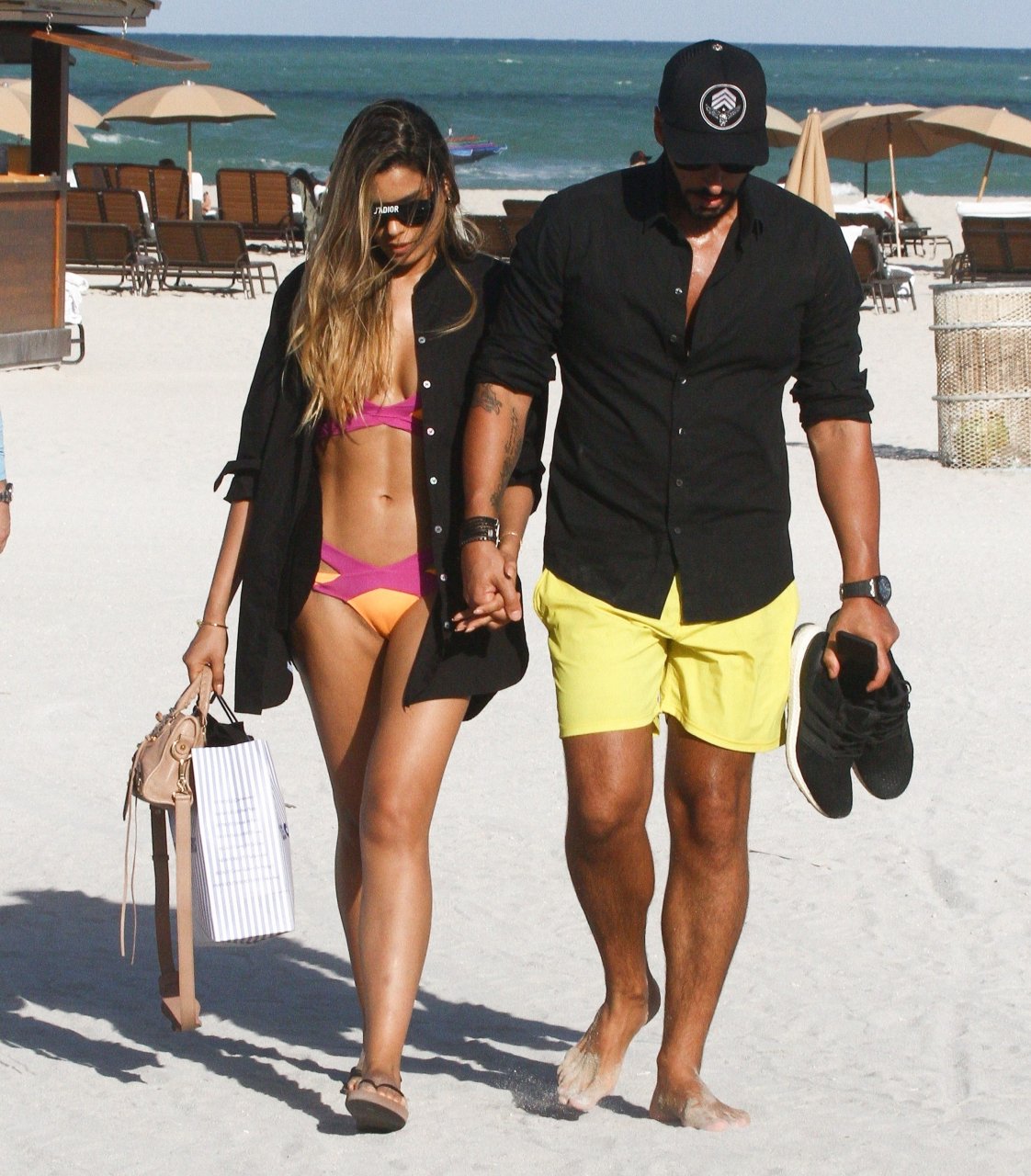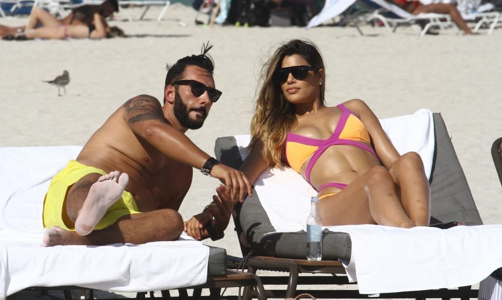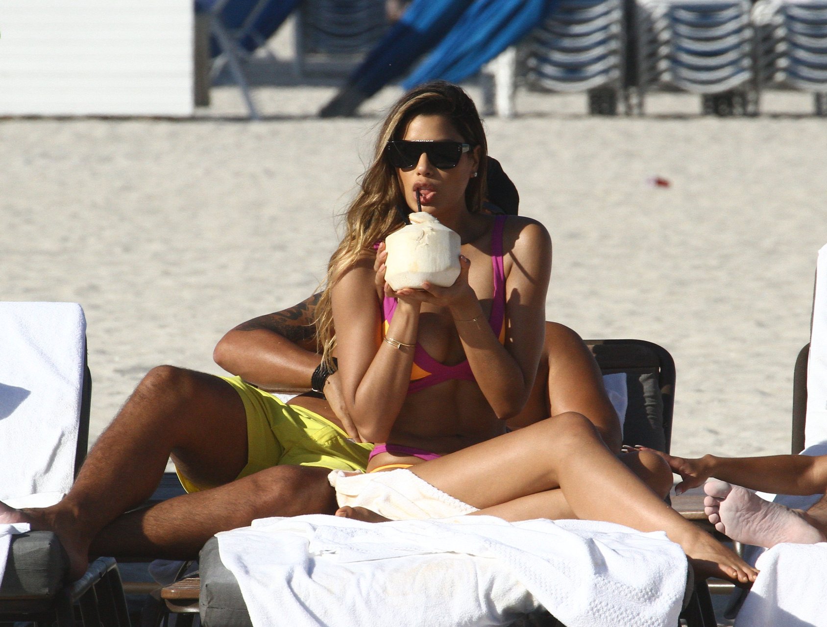 Colombiana sexy, la ex Miss Universo de 24 años, Ariadna Gutierrez, mostró su cuerpo en bikini jugando con una amiga en la playa de Miami Beach, 30/08/2018.