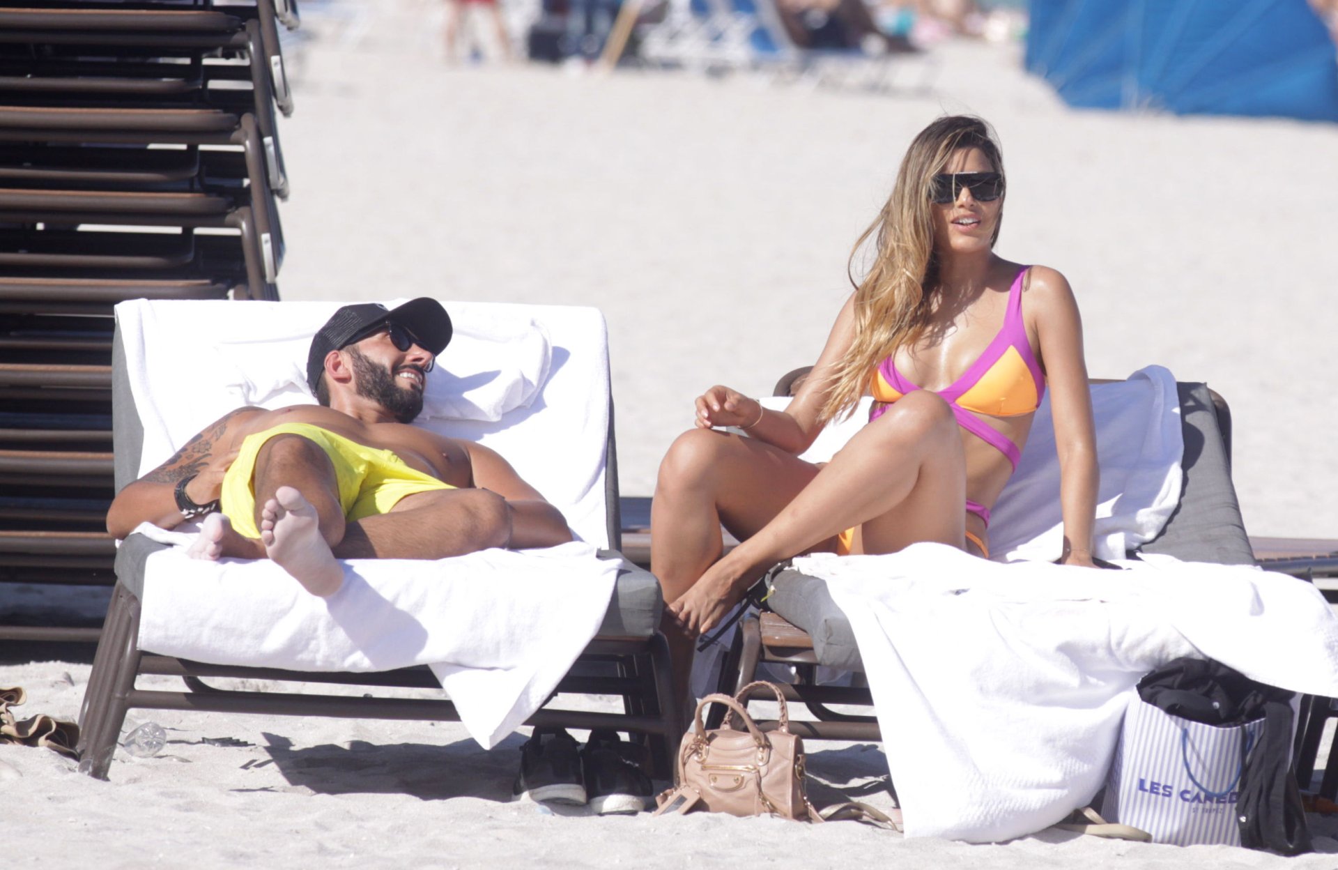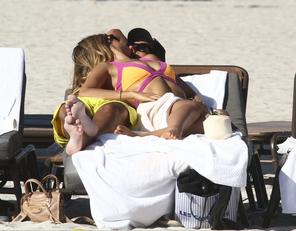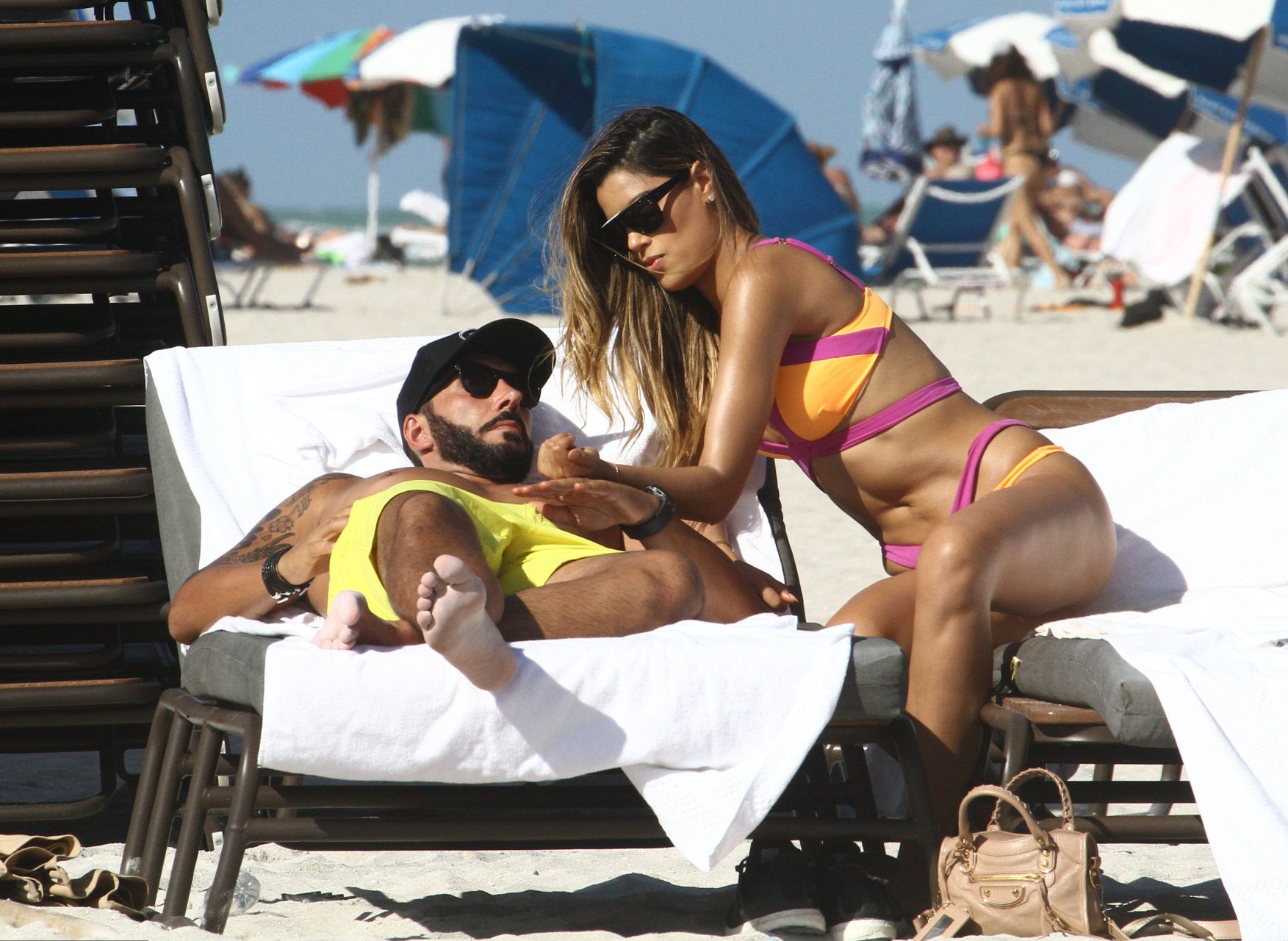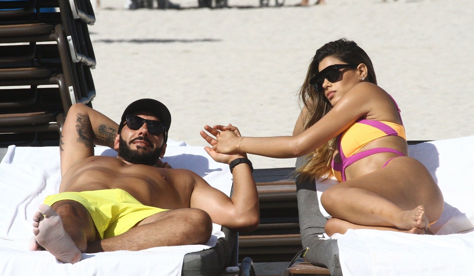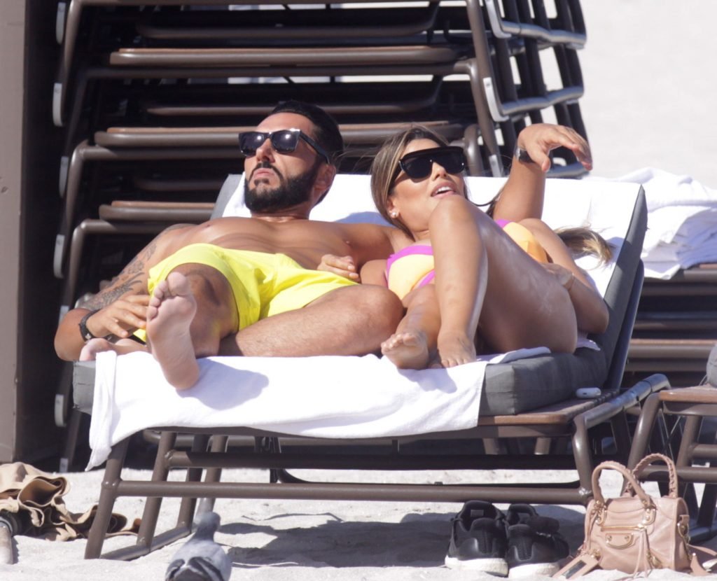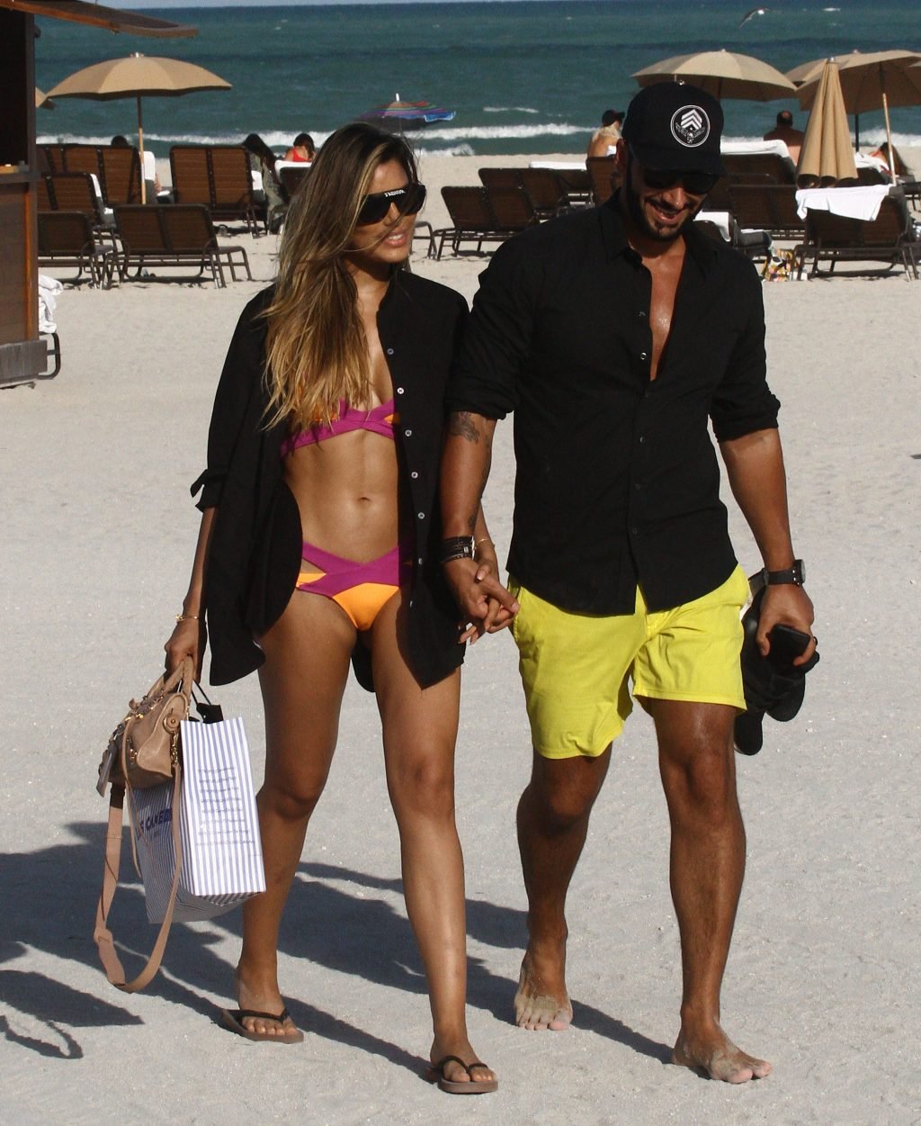 Colombiana sexy, la ex Miss Universo de 24 años, Ariadna Gutierrez, mostró su cuerpo en bikini jugando con una amiga en la playa de Miami Beach, 30/08/2018.