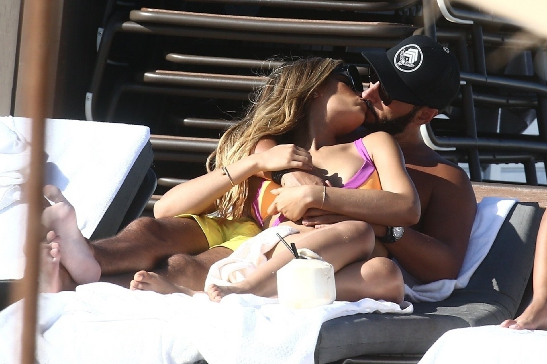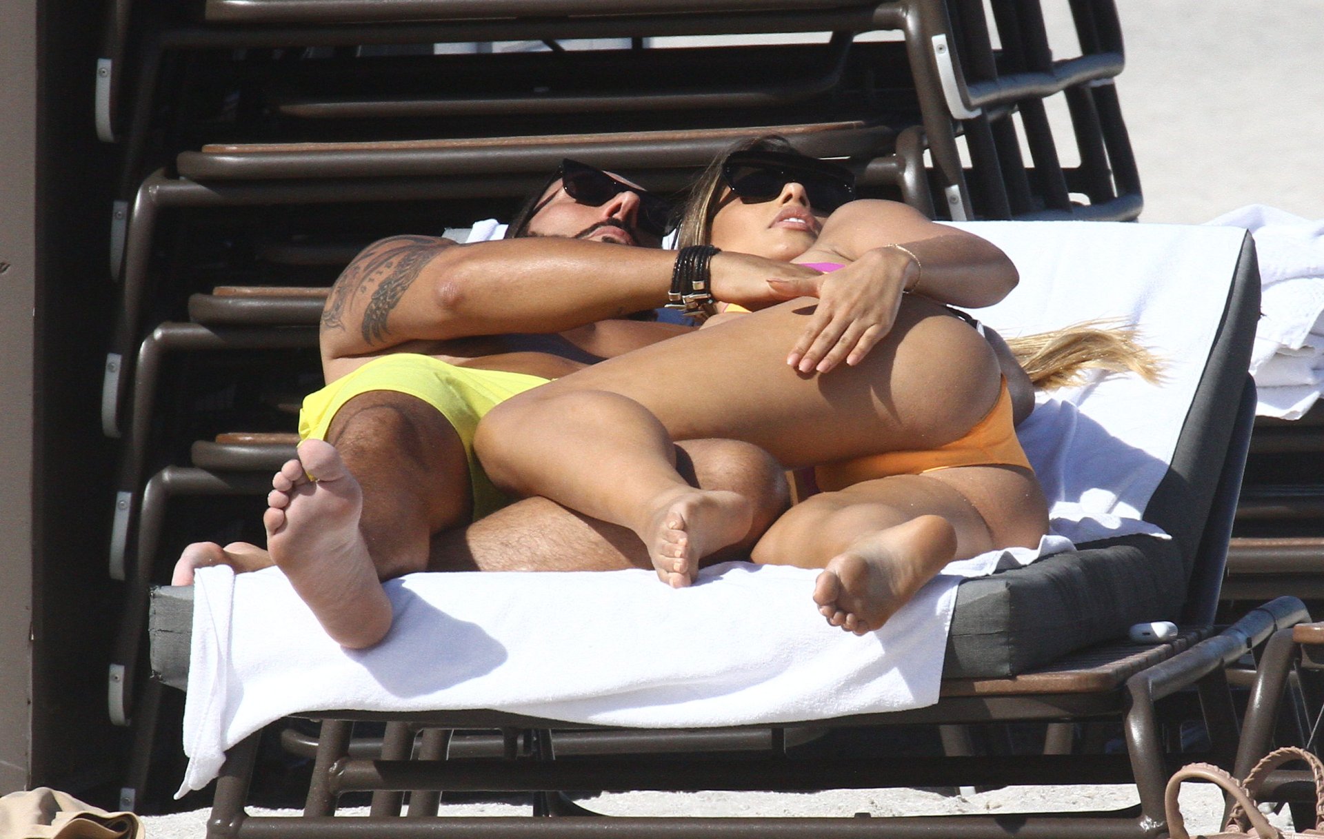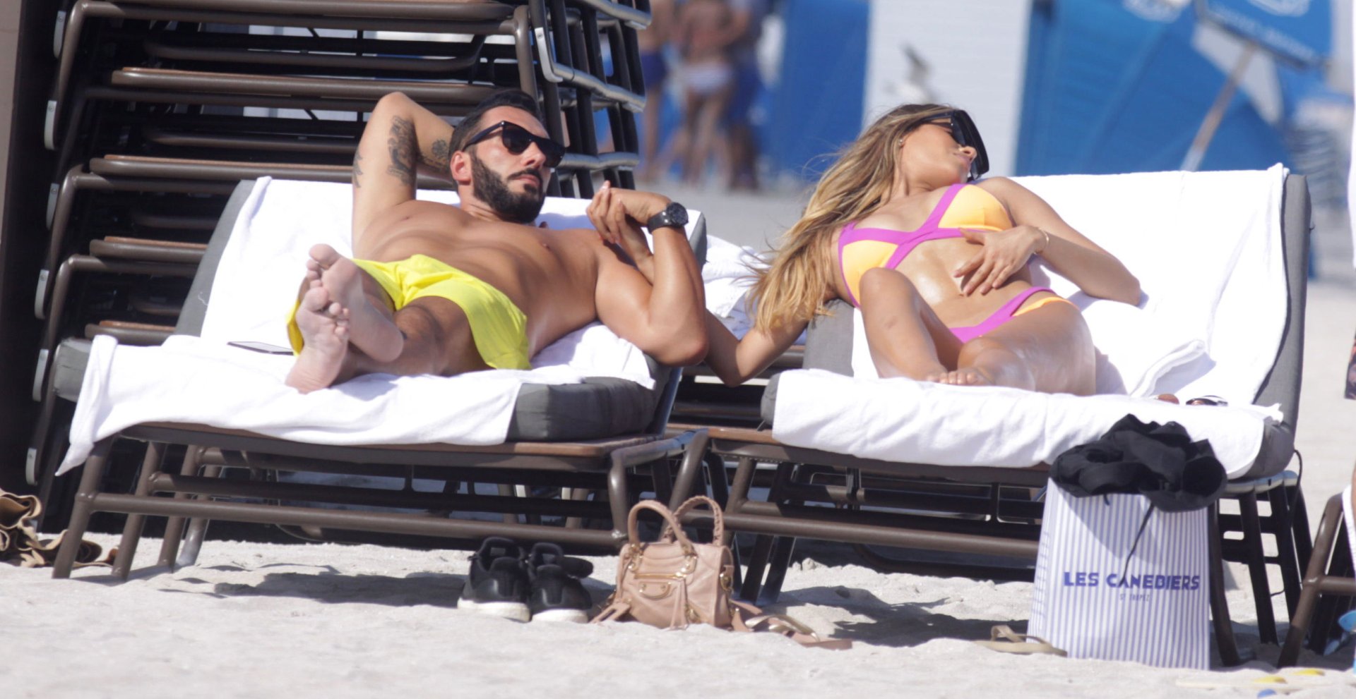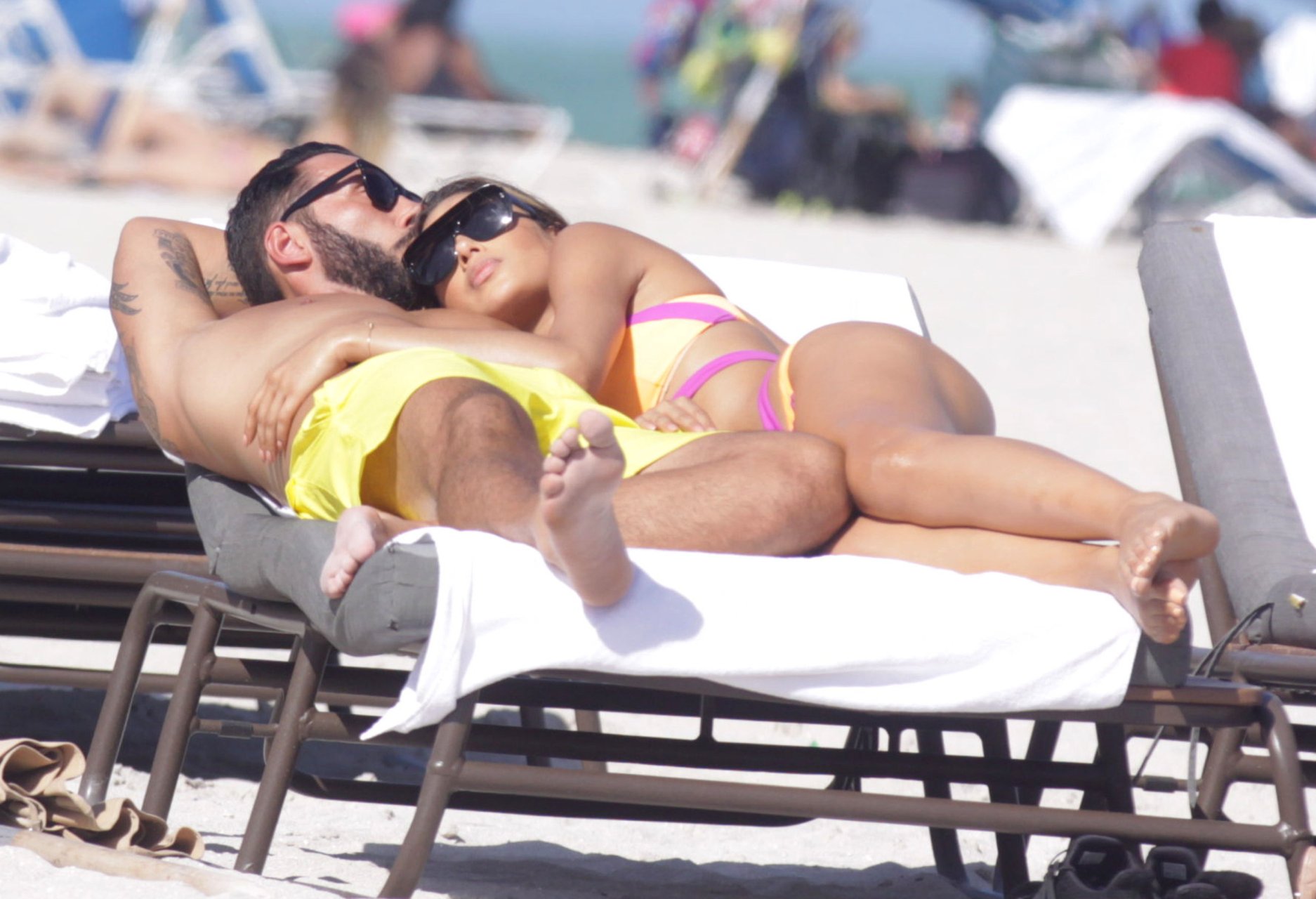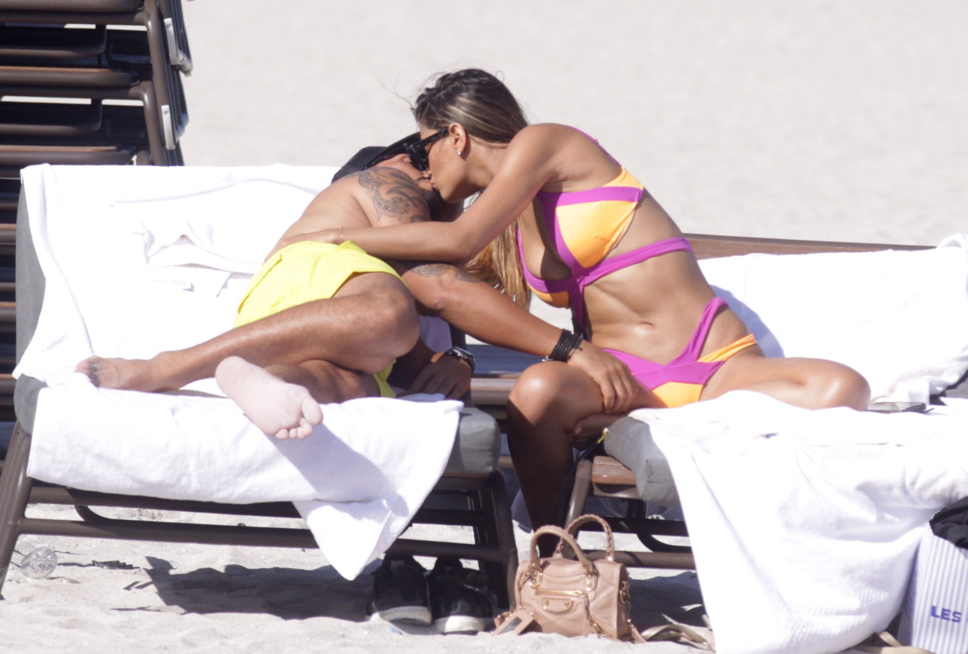 Colombiana sexy, la ex Miss Universo de 24 años, Ariadna Gutierrez, mostró su cuerpo en bikini jugando con una amiga en la playa de Miami Beach, 30/08/2018.