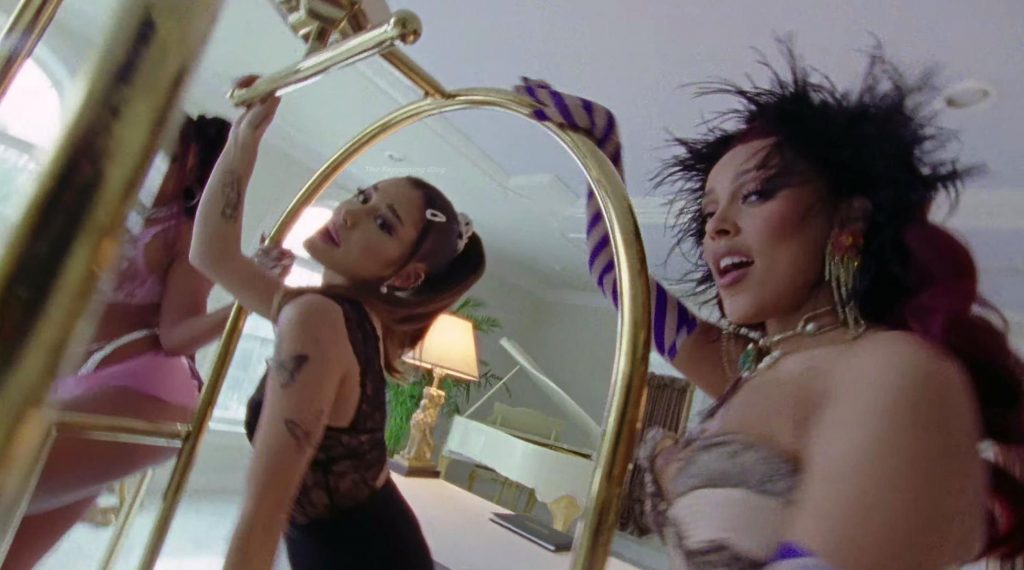 Check this out, guys! Here are a few screenshots from the new music video! Ariana Grande looked hot in her latest video with Doja Cat, and Megan Thee Stallion present their new 34+35 Remix! Ariana Grande showed her tight body in some sexy lace underwear!