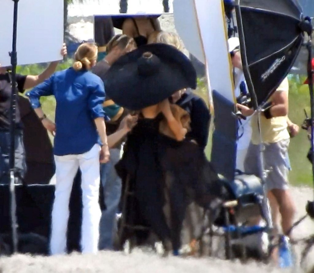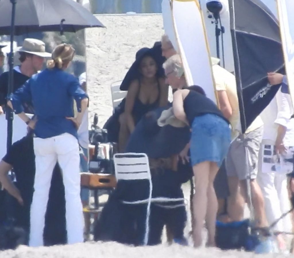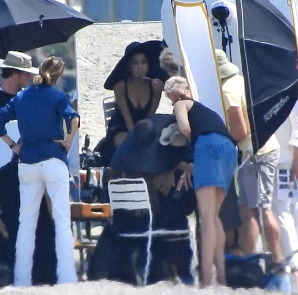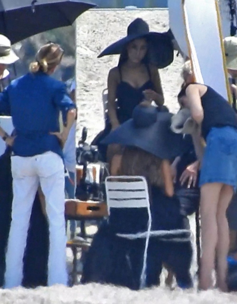 Ariana lucía adorable con un conjunto totalmente negro inspirado en una bruja, con un amplio sombrero de ala negra mientras tomaba fotos en la playa y acariciaba a su lindo perro durante un descanso. Su madre también estaba en el set, y se la ve vestida completamente de negro con gafas de sol oscuras.