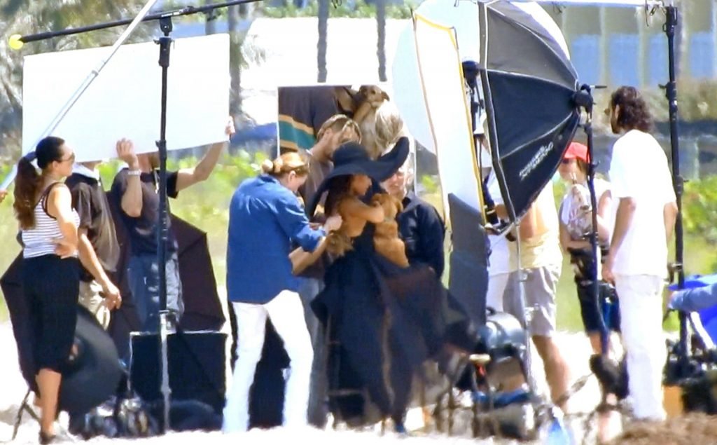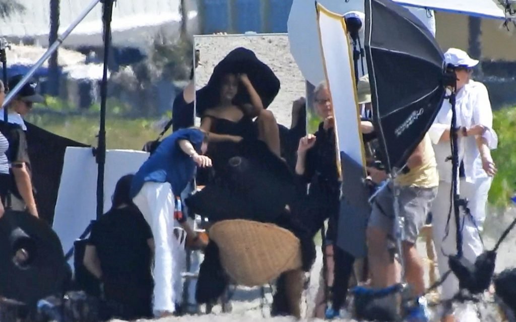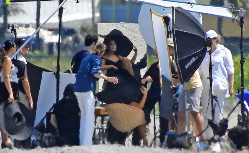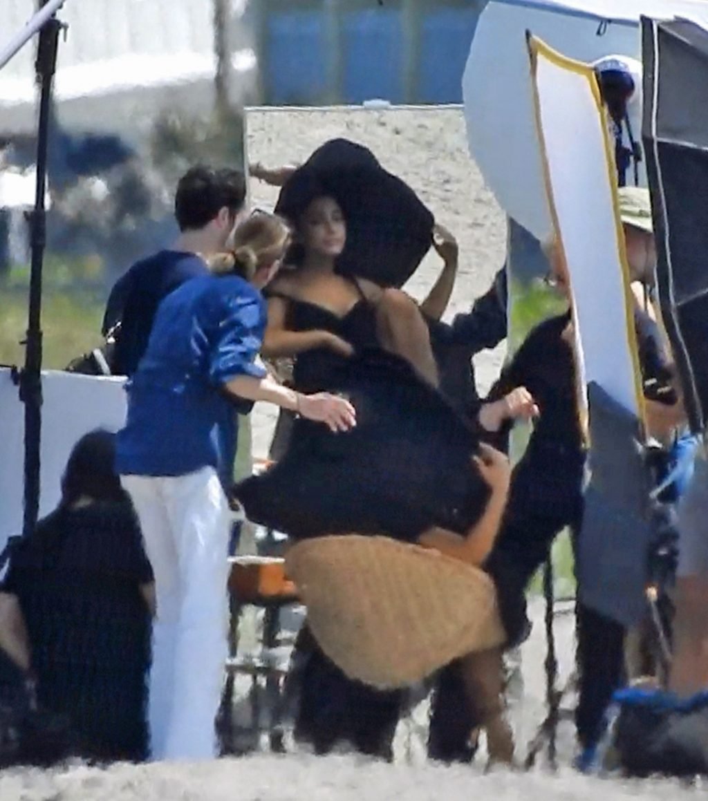 Ariana Grande fue fotografiada haciendo una sesión de fotos secreta con la famosa fotógrafa Annie Leibovitz en la playa cerca de la casa familiar donde creció en Boca Raton, 06/04/2019.