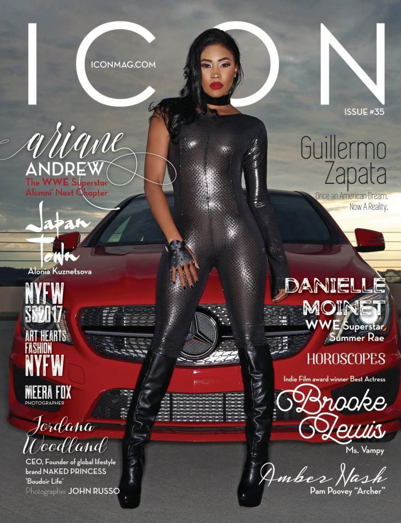 Ariane Andrew está en la revista ICON #35 (Verano 2017). Fotografiada por Arthur St. John. Ariane Nicole Andrew (también conocida como Cameron) es una luchadora, actriz, cantante, modelo y bailarina estadounidense. Edad: 29.