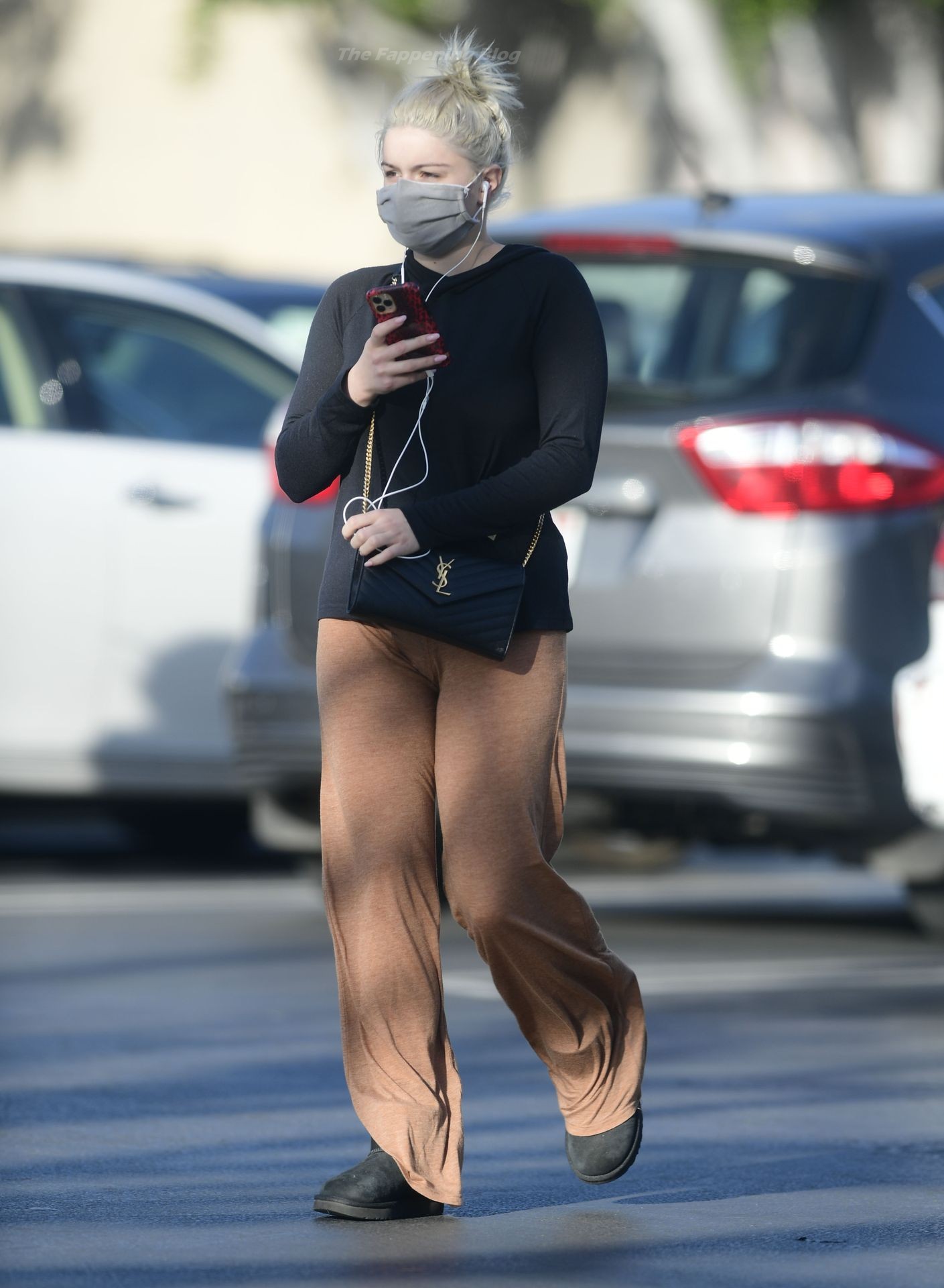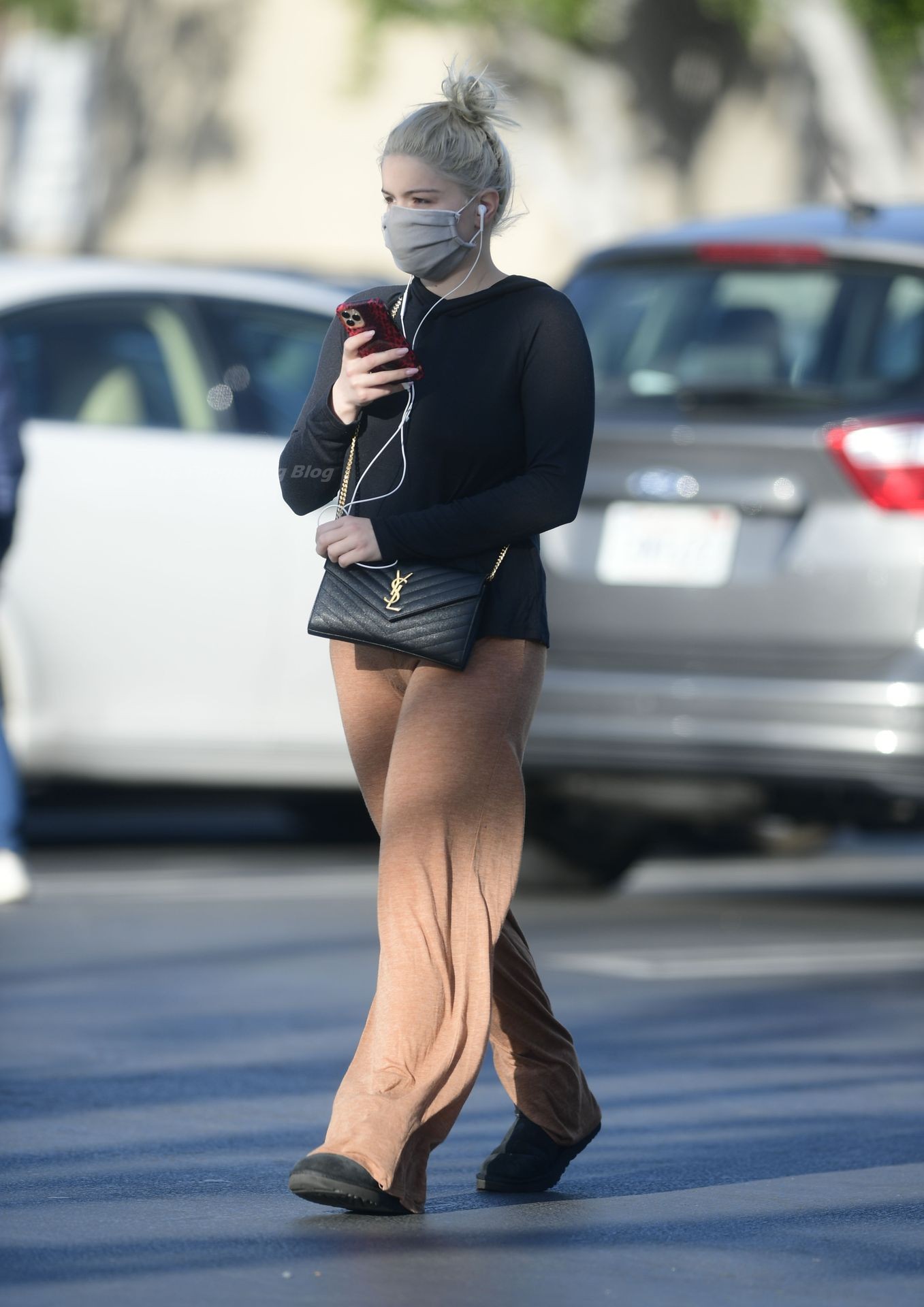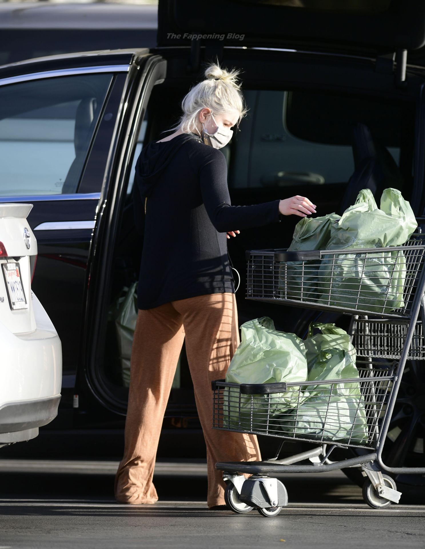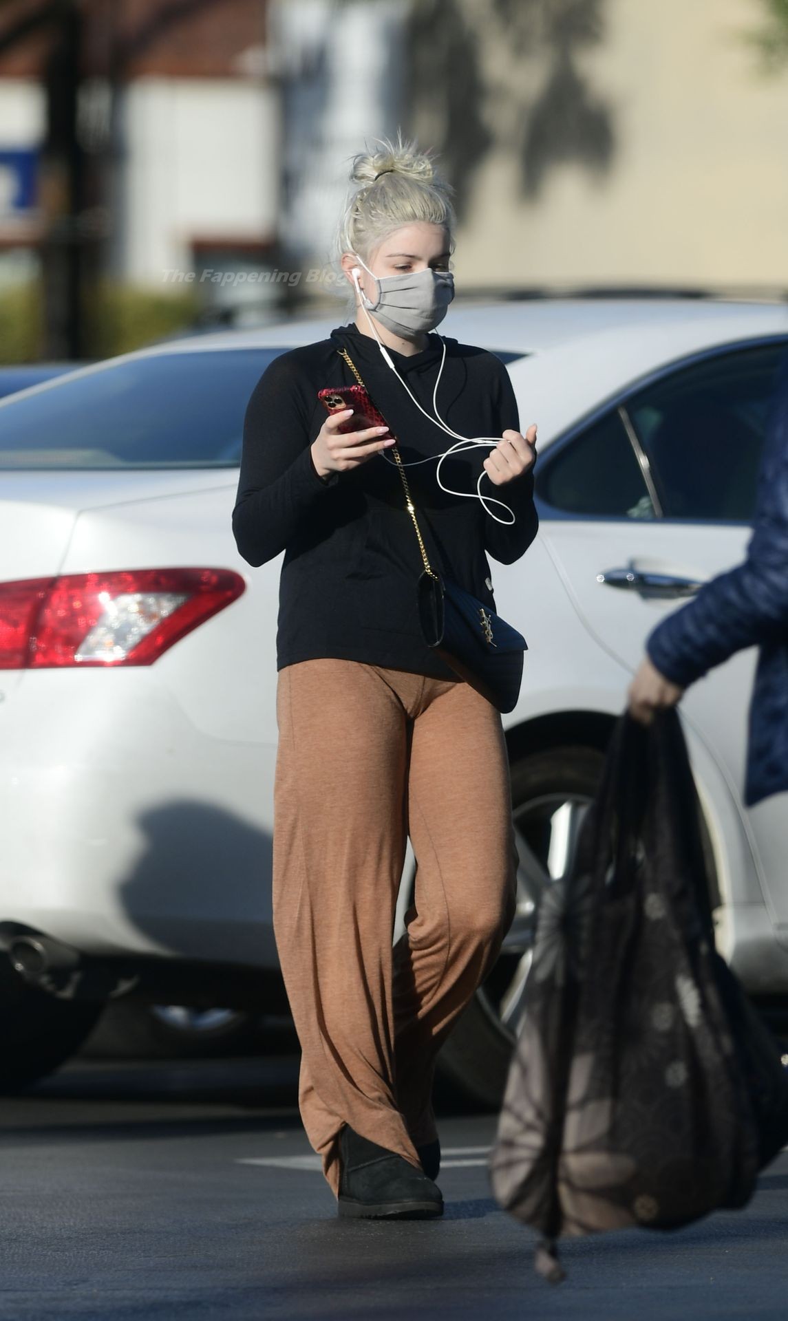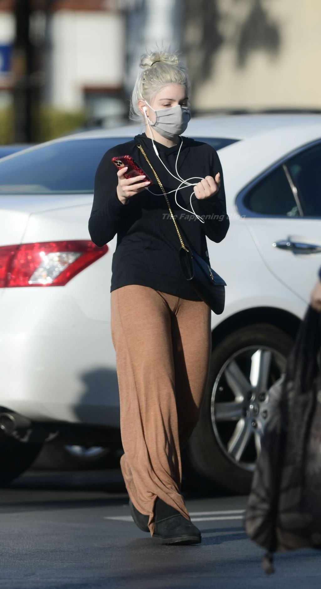 Ariel Winter va al supermercado en Los Ángeles, 22/01/2021. La actriz de 22 años llevaba una bolsa YSL y usaba una mascarilla, camisa negra, pantalones de cobre y botas negras.