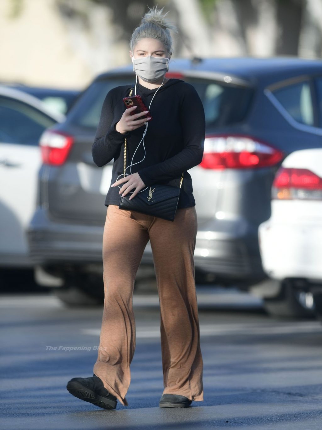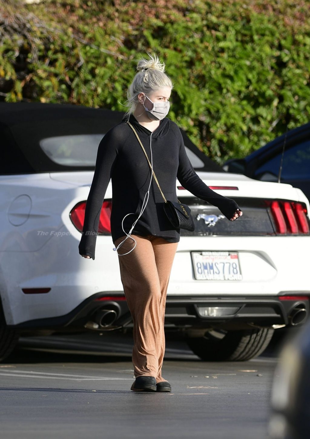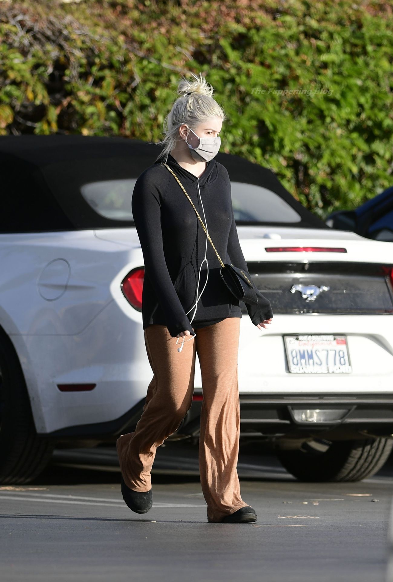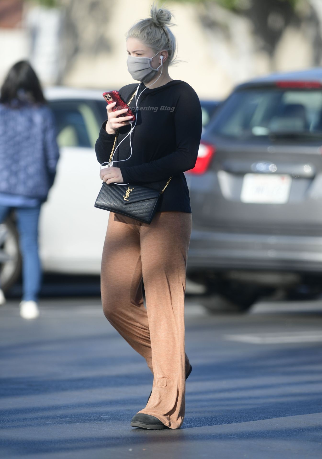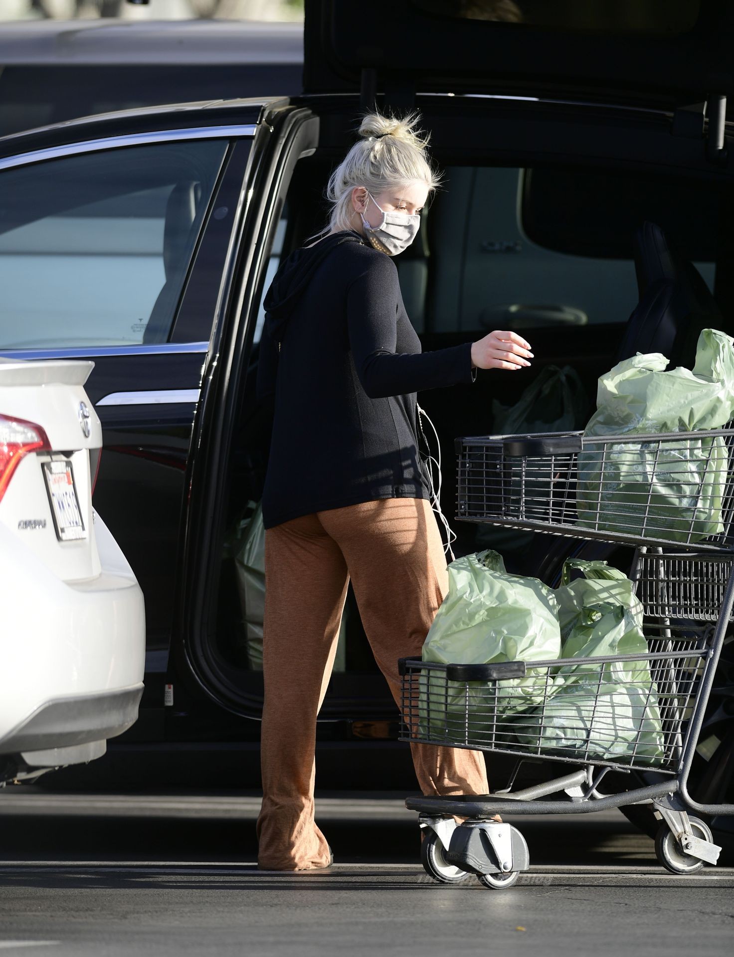Ariel Winter va al supermercado en Los Ángeles, 22/01/2021. La actriz de 22 años llevaba una bolsa YSL y usaba una mascarilla, camisa negra, pantalones de cobre y botas negras.