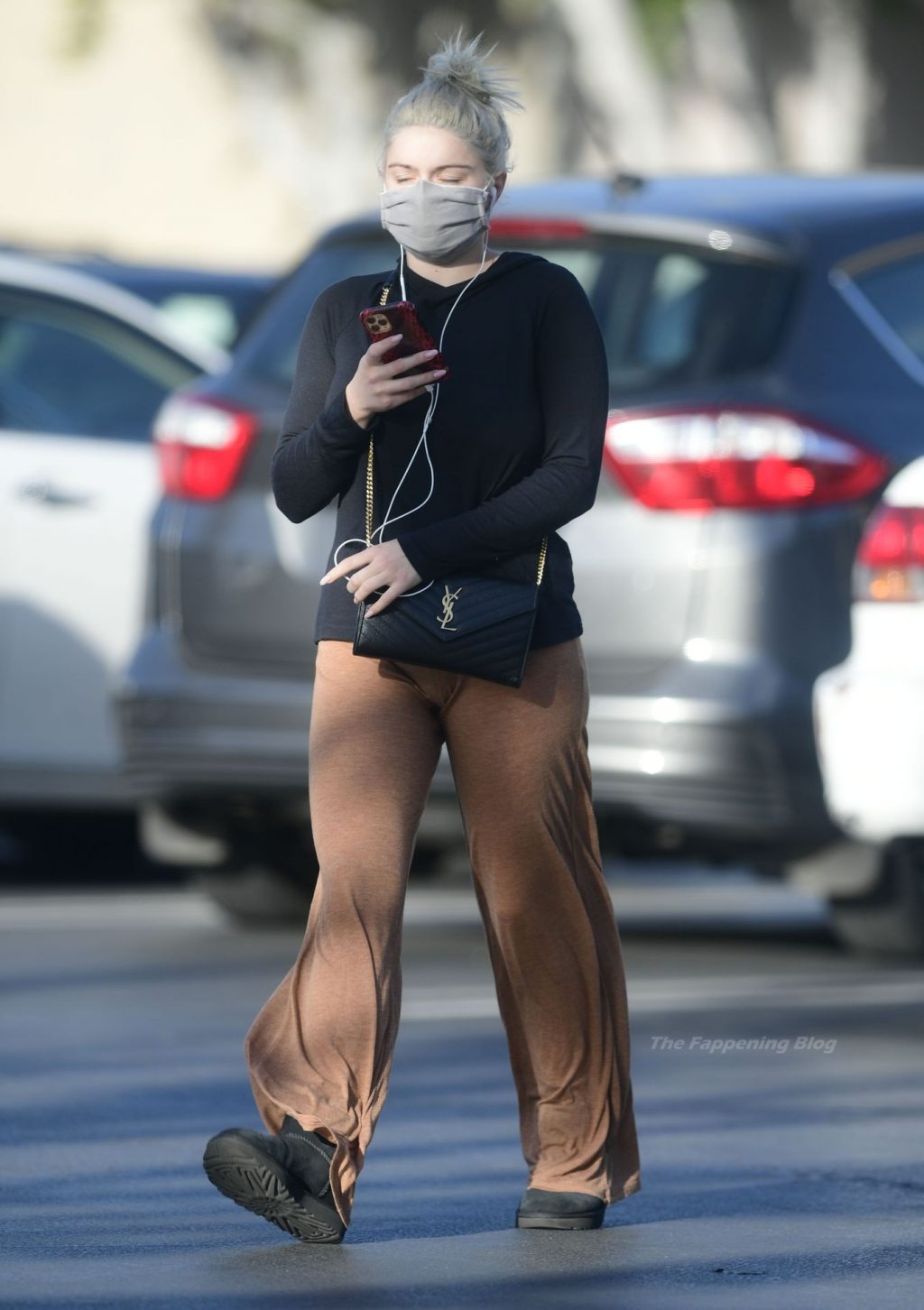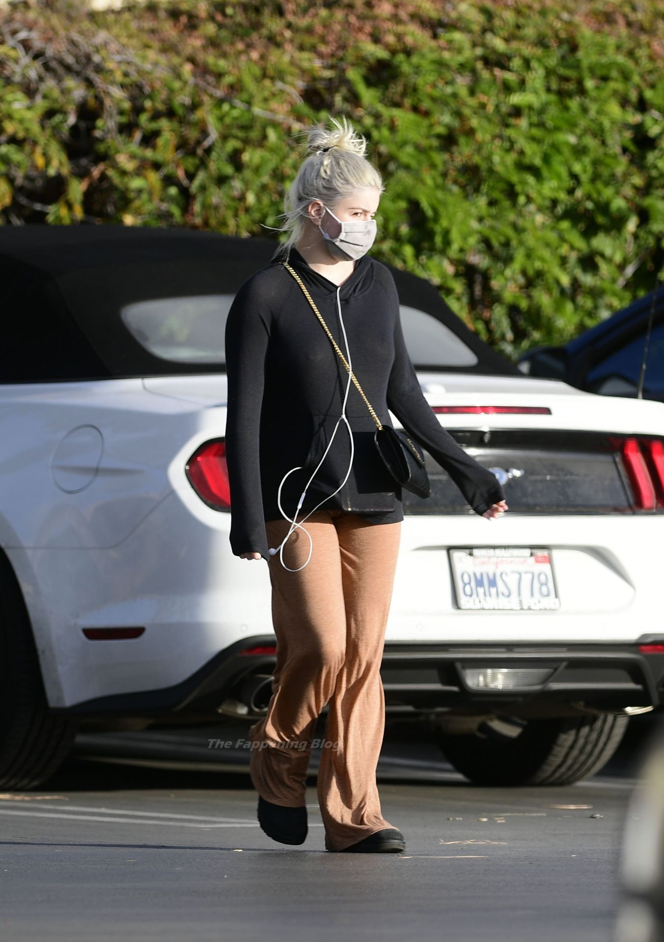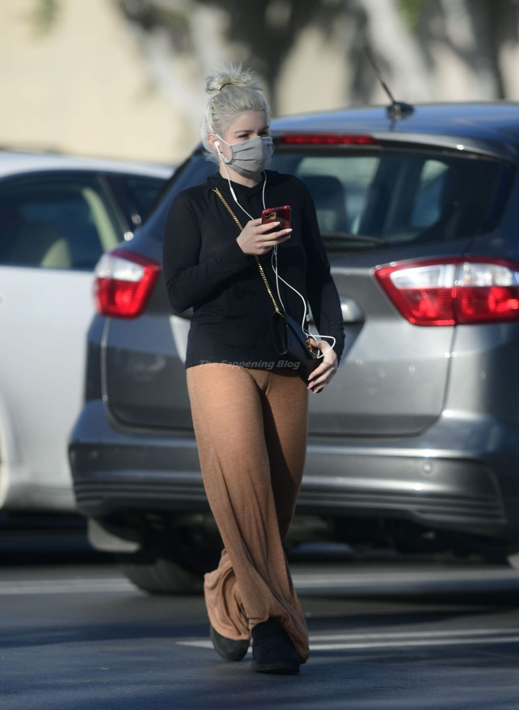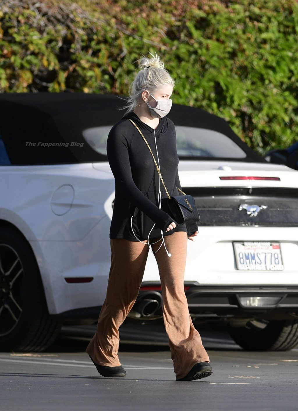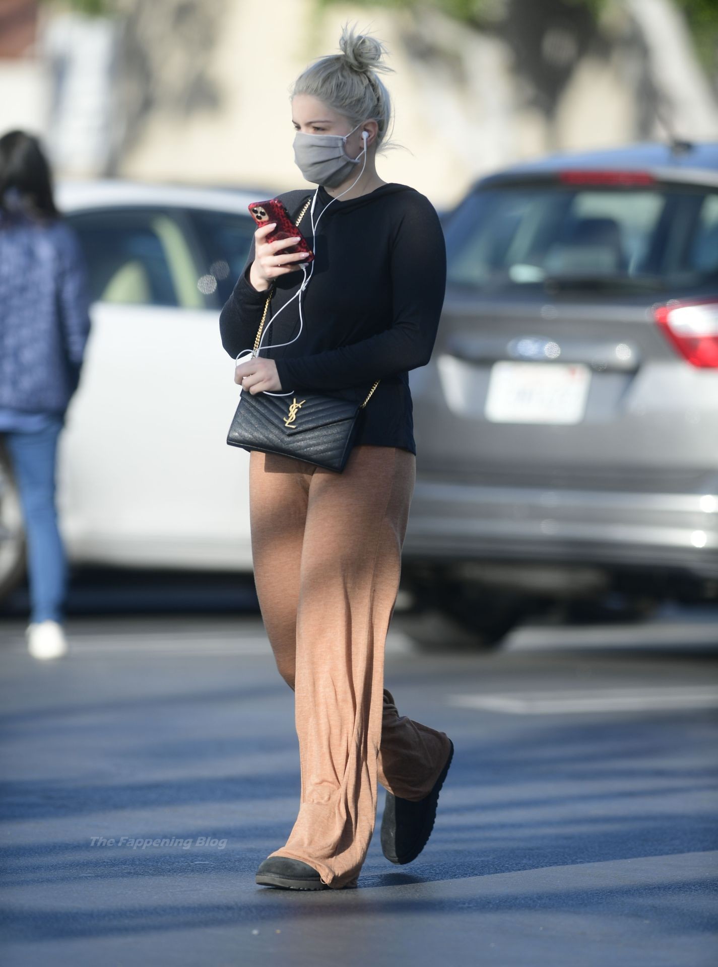 Ariel Winter va al supermercado en Los Ángeles, 22/01/2021. La actriz de 22 años llevaba una bolsa YSL y usaba una mascarilla, camisa negra, pantalones de cobre y botas negras.