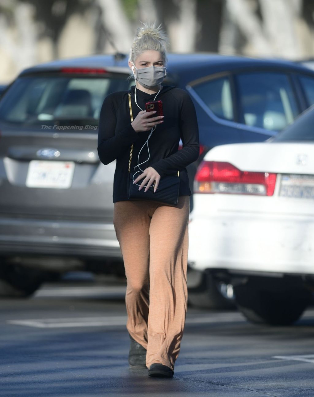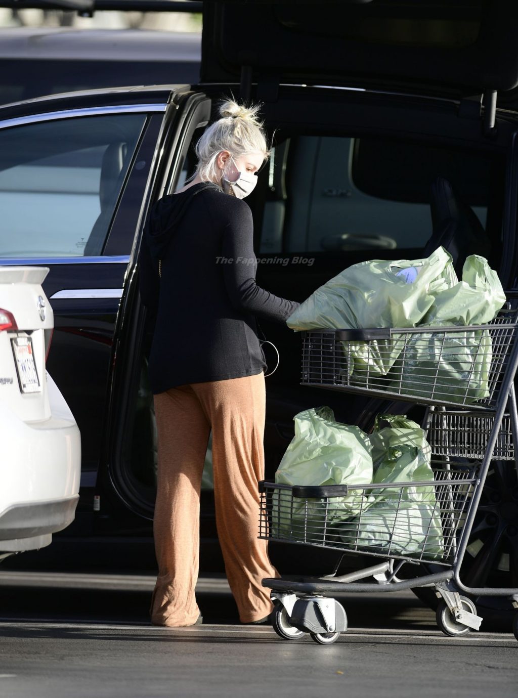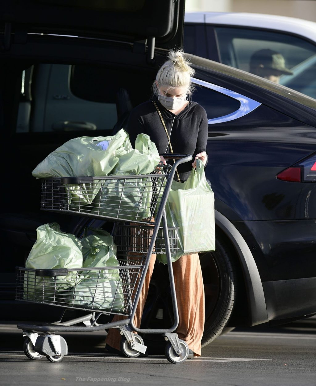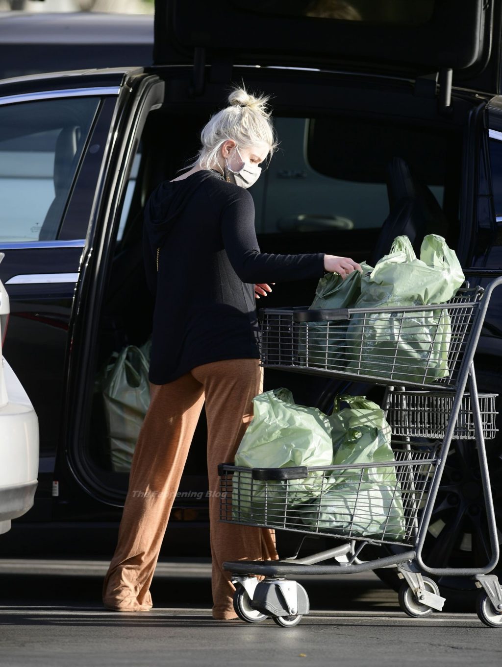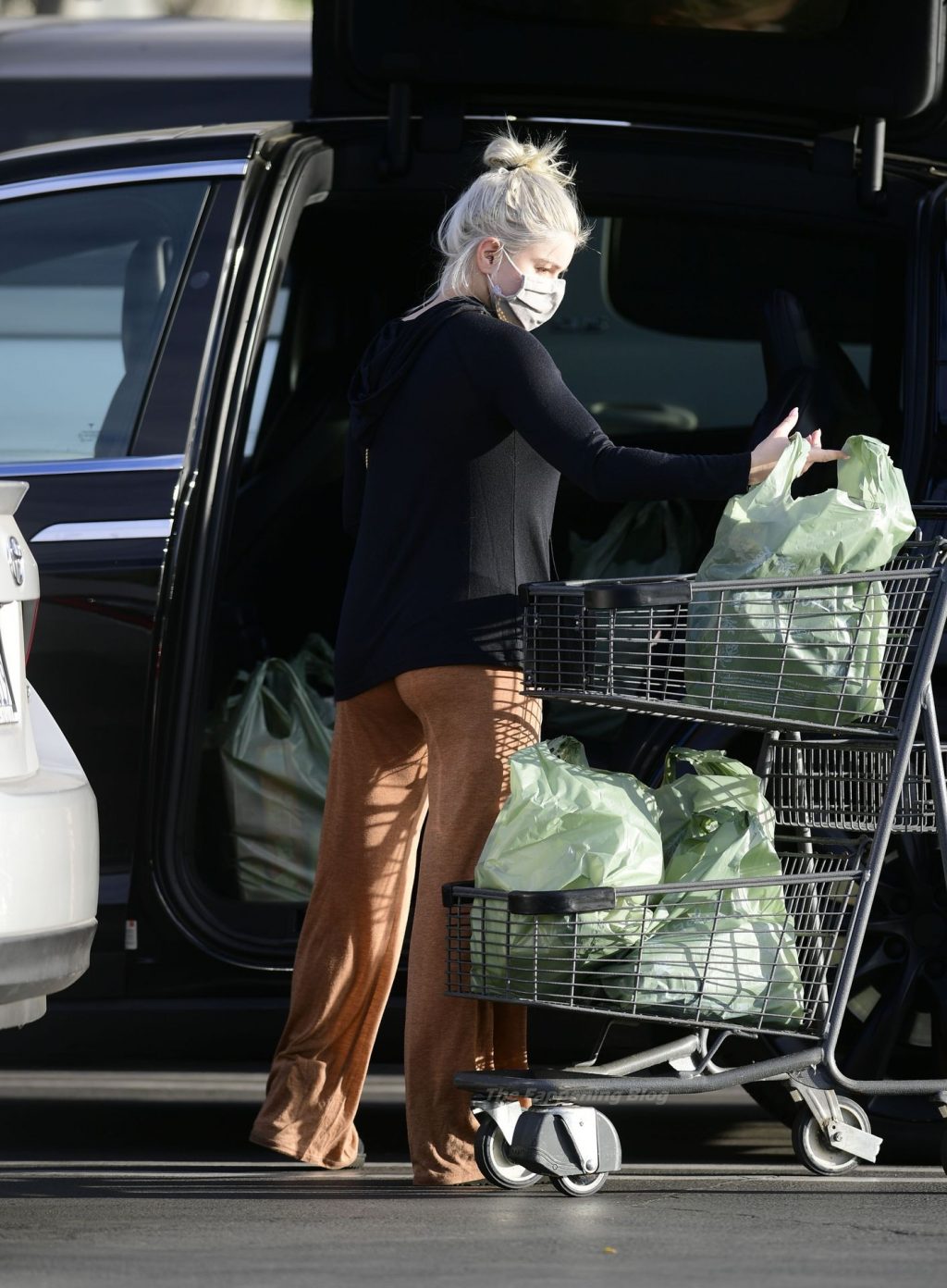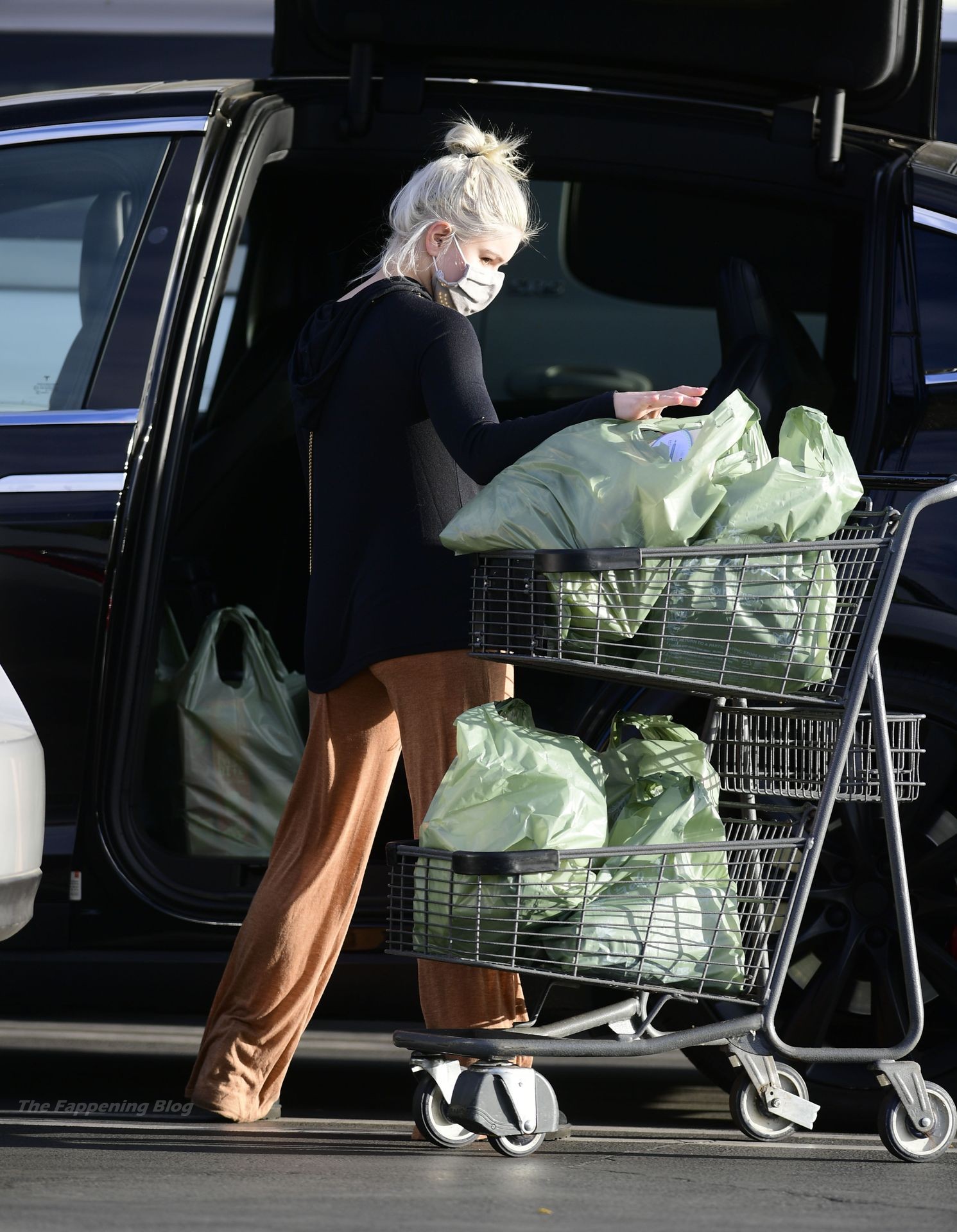 Ariel Winter va al supermercado en Los Ángeles, 22/01/2021. La actriz de 22 años llevaba una bolsa YSL y usaba una mascarilla, camisa negra, pantalones de cobre y botas negras.