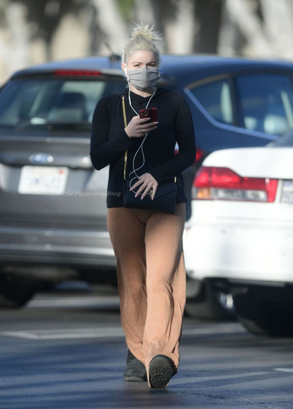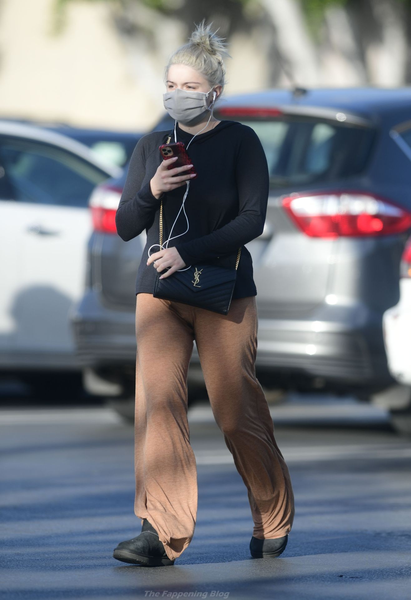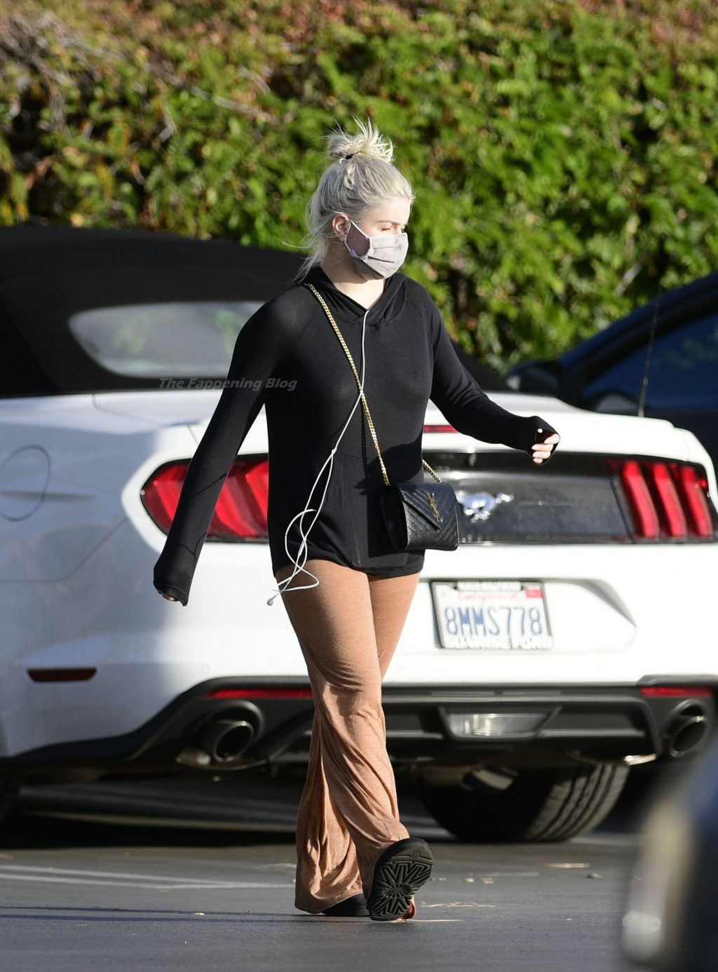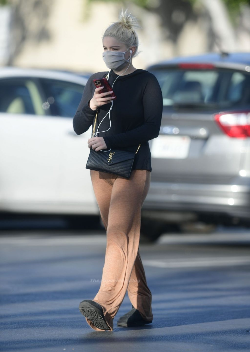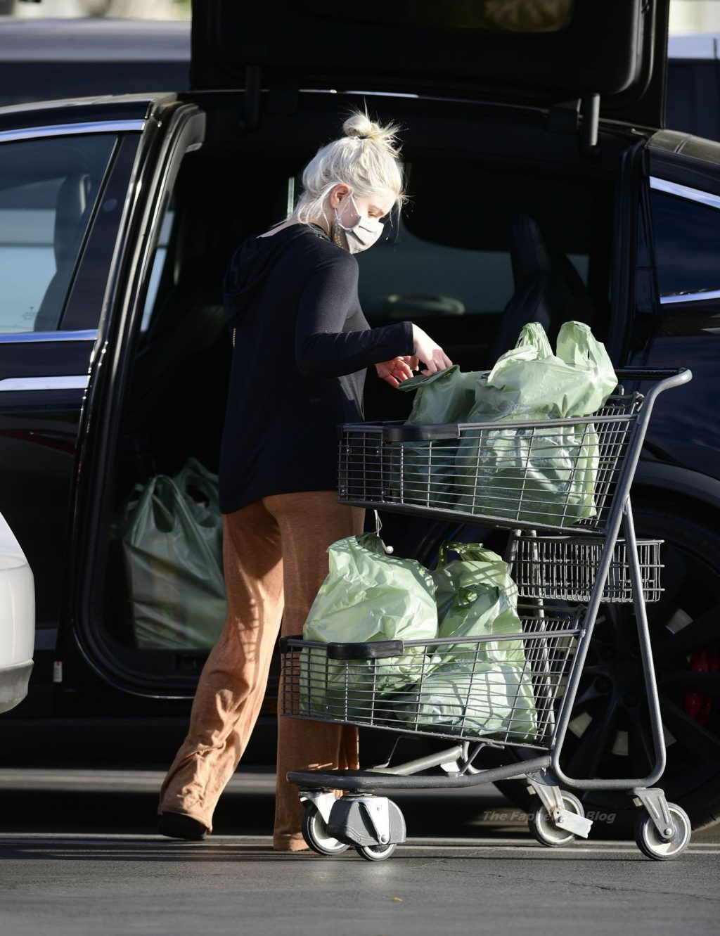 Ariel Winter va al supermercado en Los Ángeles, 22/01/2021. La actriz de 22 años llevaba una bolsa YSL y usaba una mascarilla, camisa negra, pantalones de cobre y botas negras.