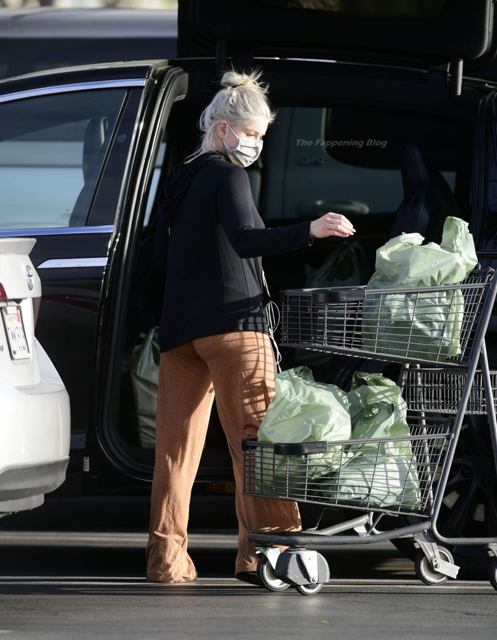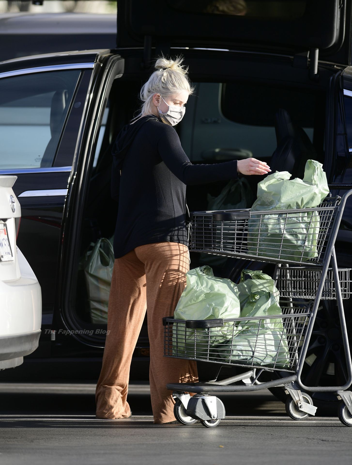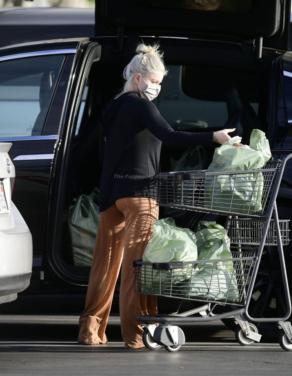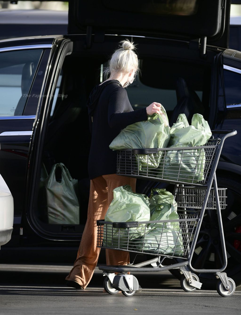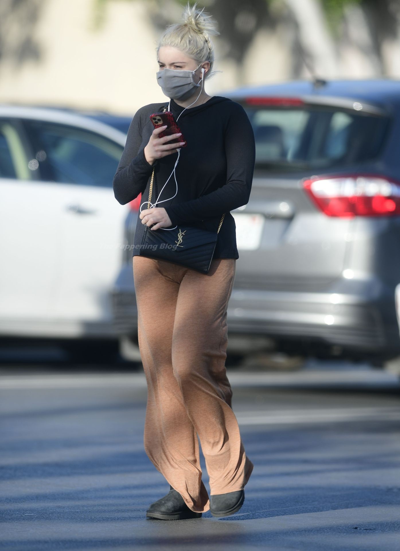 Ariel Winter va al supermercado en Los Ángeles, 22/01/2021. La actriz de 22 años llevaba una bolsa YSL y usaba una mascarilla, camisa negra, pantalones de cobre y botas negras.