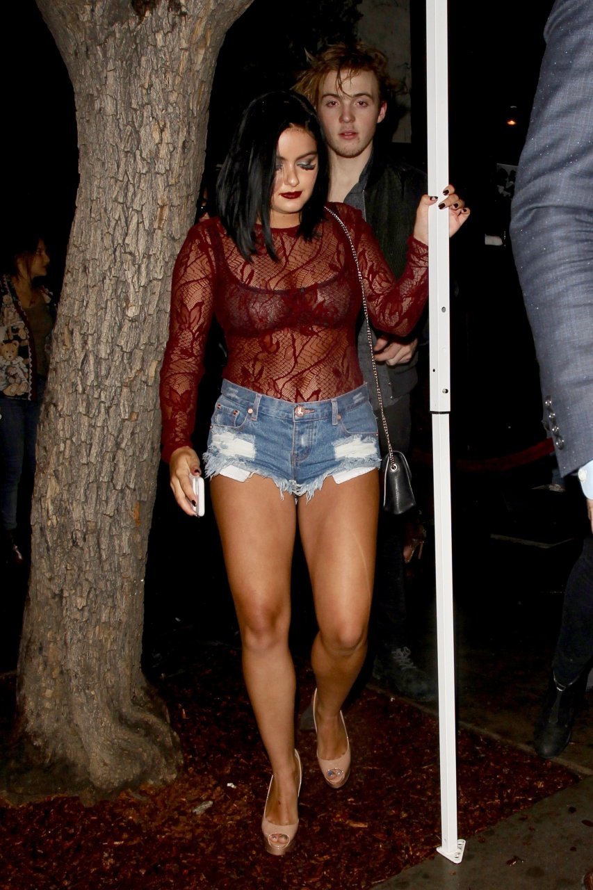 Ariel Winter luce una blusa roja transparente y unos shorts de mezclilla súper sexys fuera del club Peppermint en West Hollywood, 01/10/2017. Ariel Winter es una actriz estadounidense (Sofia the First (2016-2017 (voz)), modelo y cantante. Edad: 18 (nacida el 28 de enero de 1998).
