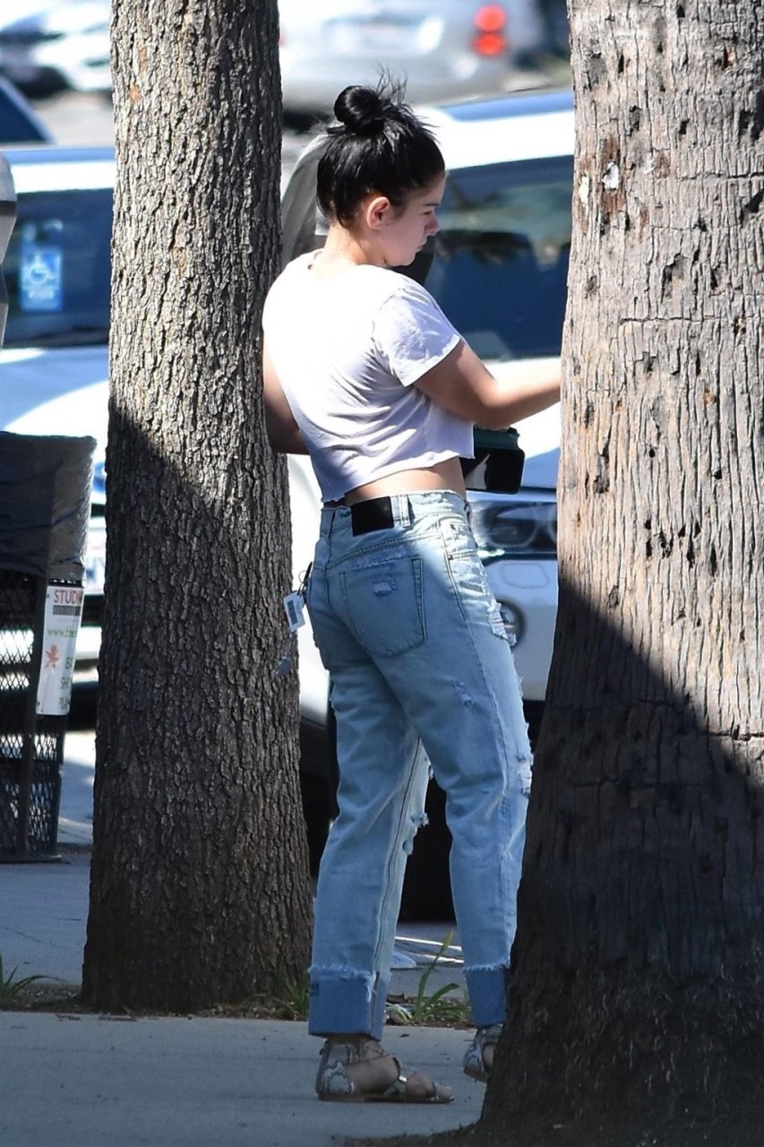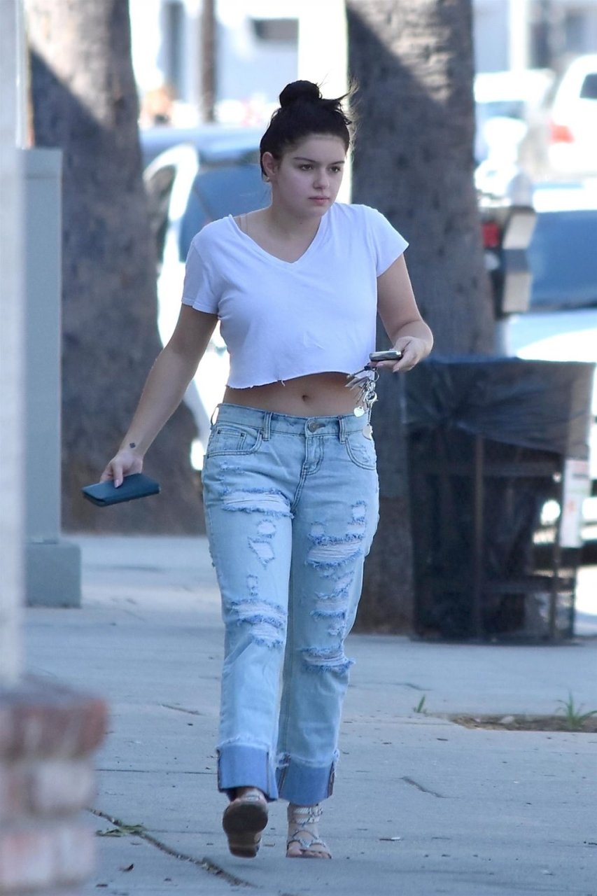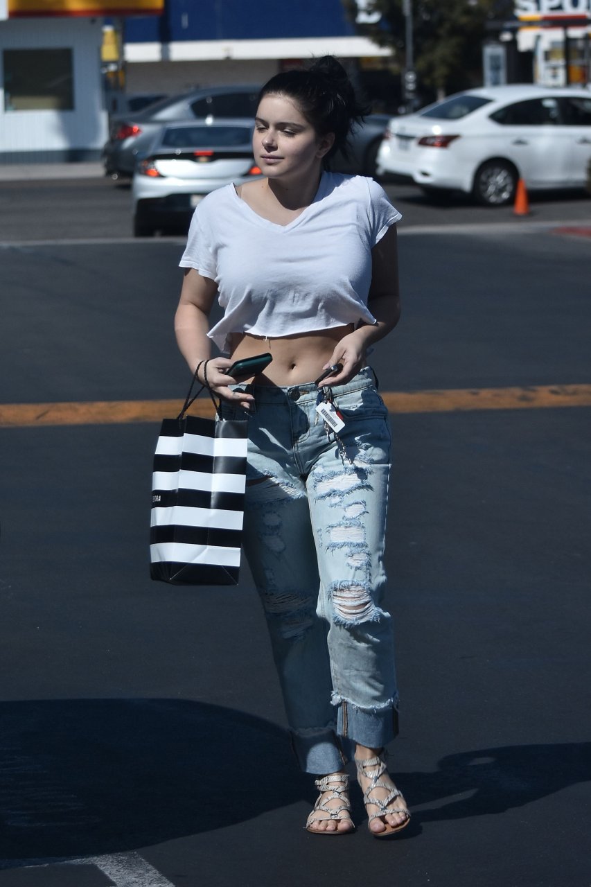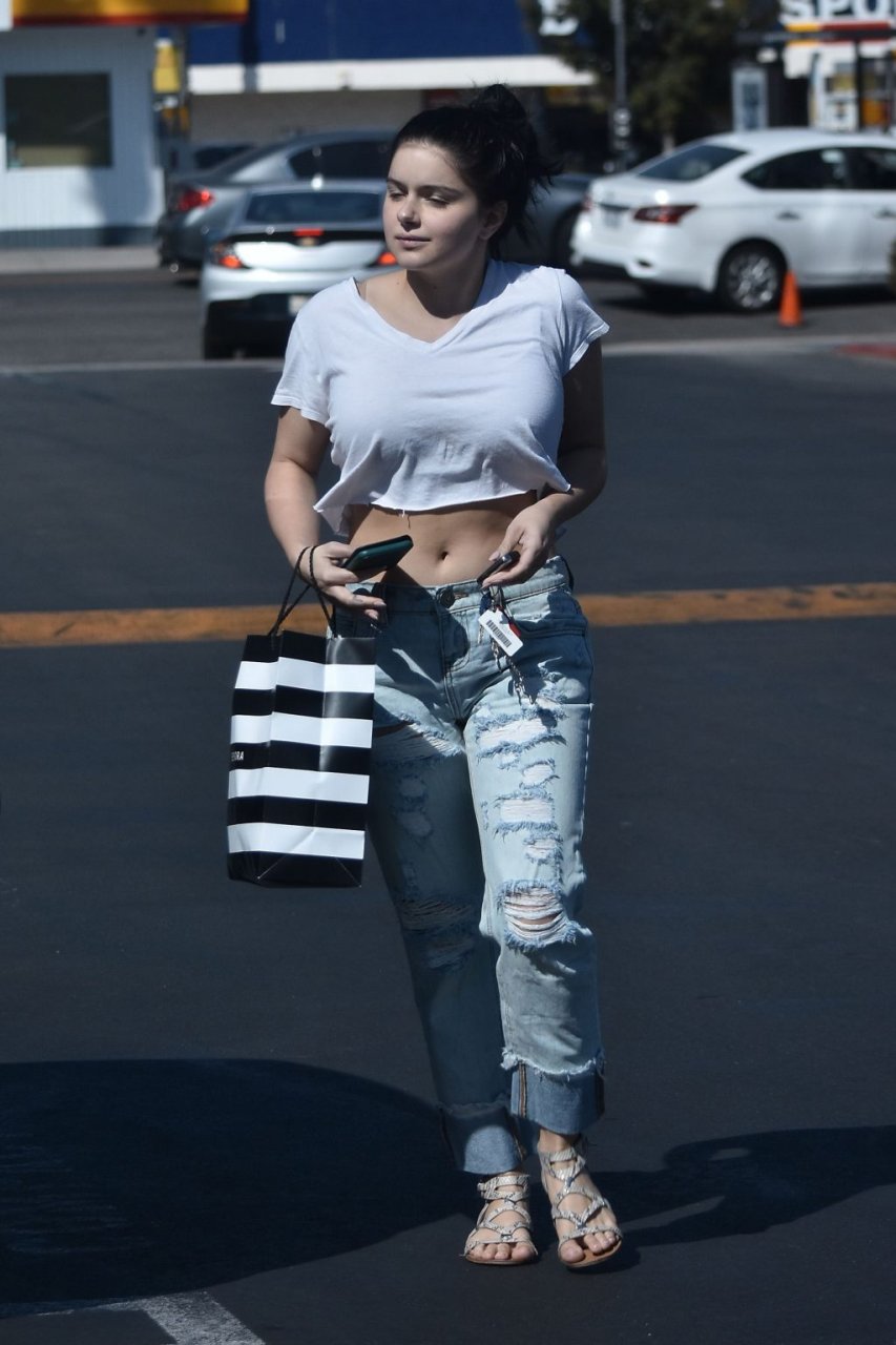 Ariel Winter muestra su abdomen en una camiseta blanca corta y jeans bajos mientras hace algunas compras en Sephora en Los Ángeles, 10/05/2018. La actriz de 20 años de “Modern Family” fue vista sin maquillaje, con el cabello recogido en un moño alto, mostrando su vientre plano mientras caminaba hacia su auto después de hacer algunas compras en Sephora.
