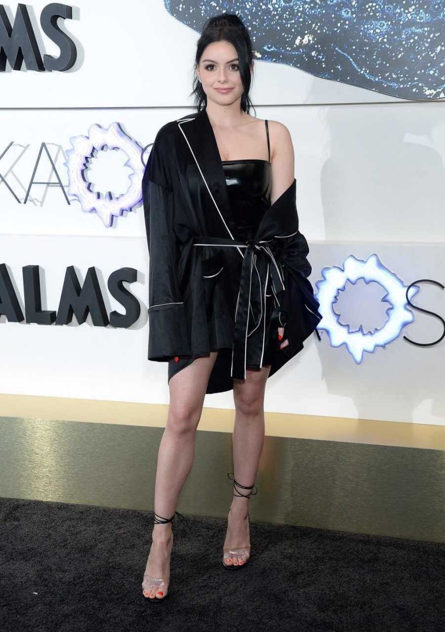 La morena Ariel Winter mostró sus sexy y súper tonificadas piernas en la inauguración de Palms/KAOS en Las Vegas, 05/04/2019. La actriz de 21 años llevaba un mini vestido negro con una bata encima.