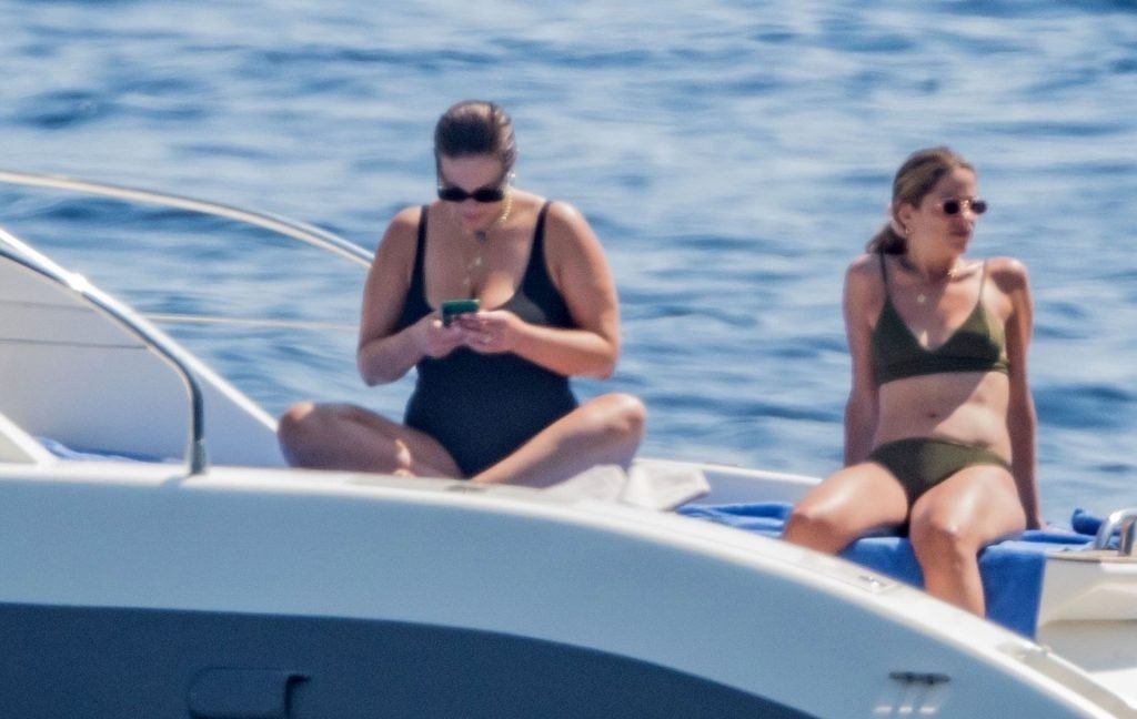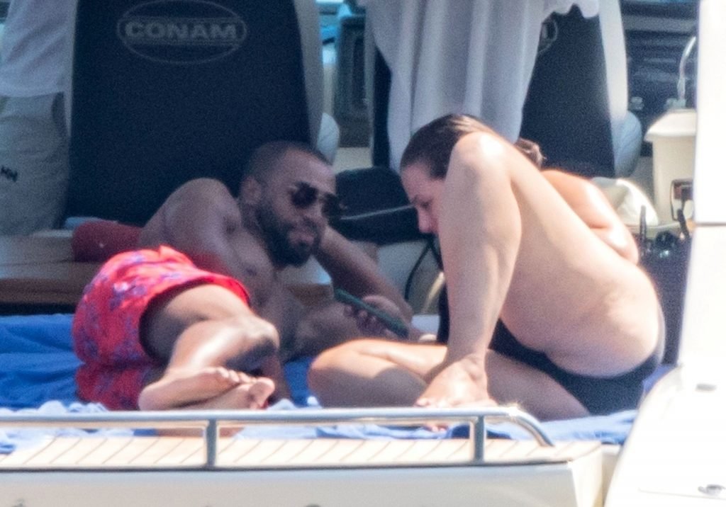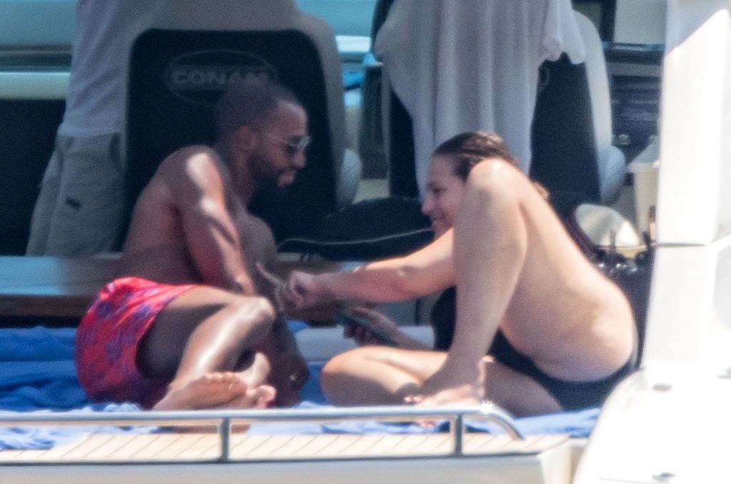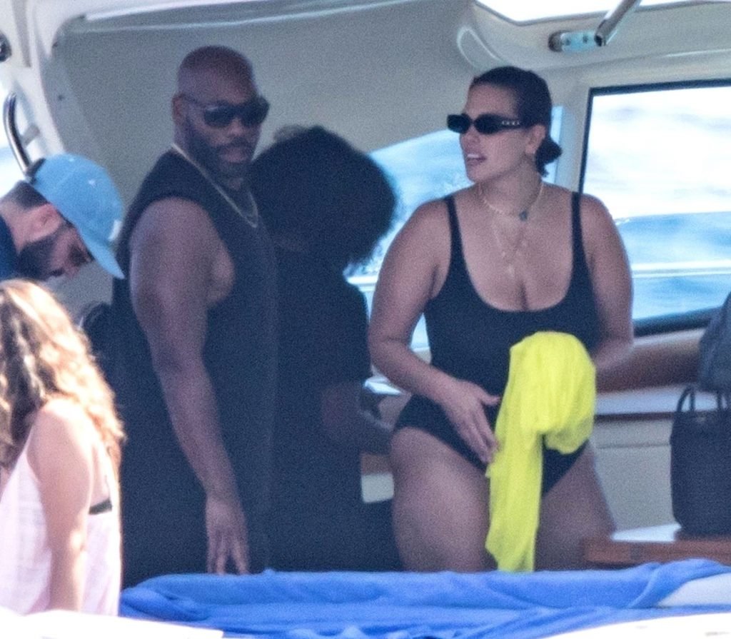 Model Ashley Graham en unas vacaciones románticas con su esposo Justin Ervin en Nerano, Italia, 23/07/2019. La pareja salió a comer disfrutando de una exquisita comida italiana y pasó el resto del día relajándose en su yate, con Ashley luciendo su sexy traje de baño negro mostrando algo de PDA con su esposo bajo el ardiente sol italiano.