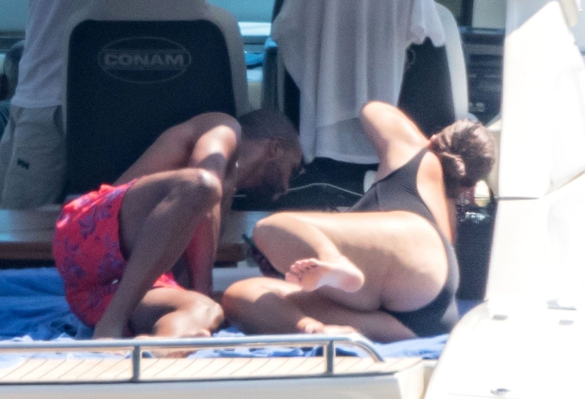 Model Ashley Graham en unas vacaciones románticas con su esposo Justin Ervin en Nerano, Italia, 23/07/2019. La pareja salió a comer disfrutando de una exquisita comida italiana y pasó el resto del día relajándose en su yate, con Ashley luciendo su sexy traje de baño negro mostrando algo de PDA con su esposo bajo el ardiente sol italiano.
