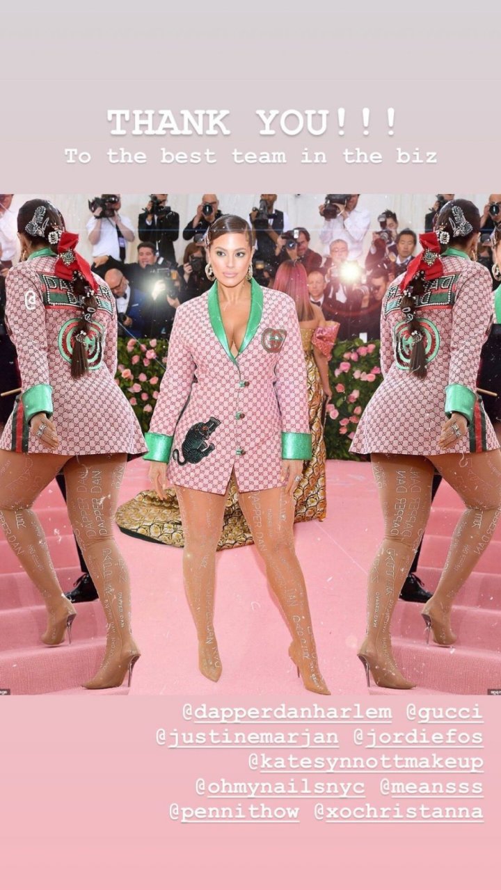 La modelo curvilínea Ashley Graham fue vista asistiendo a la Met Gala 2019 en la ciudad de Nueva York, 06/05/2019. Ashley apareció en el evento anual con un llamativo look total de Gucci.