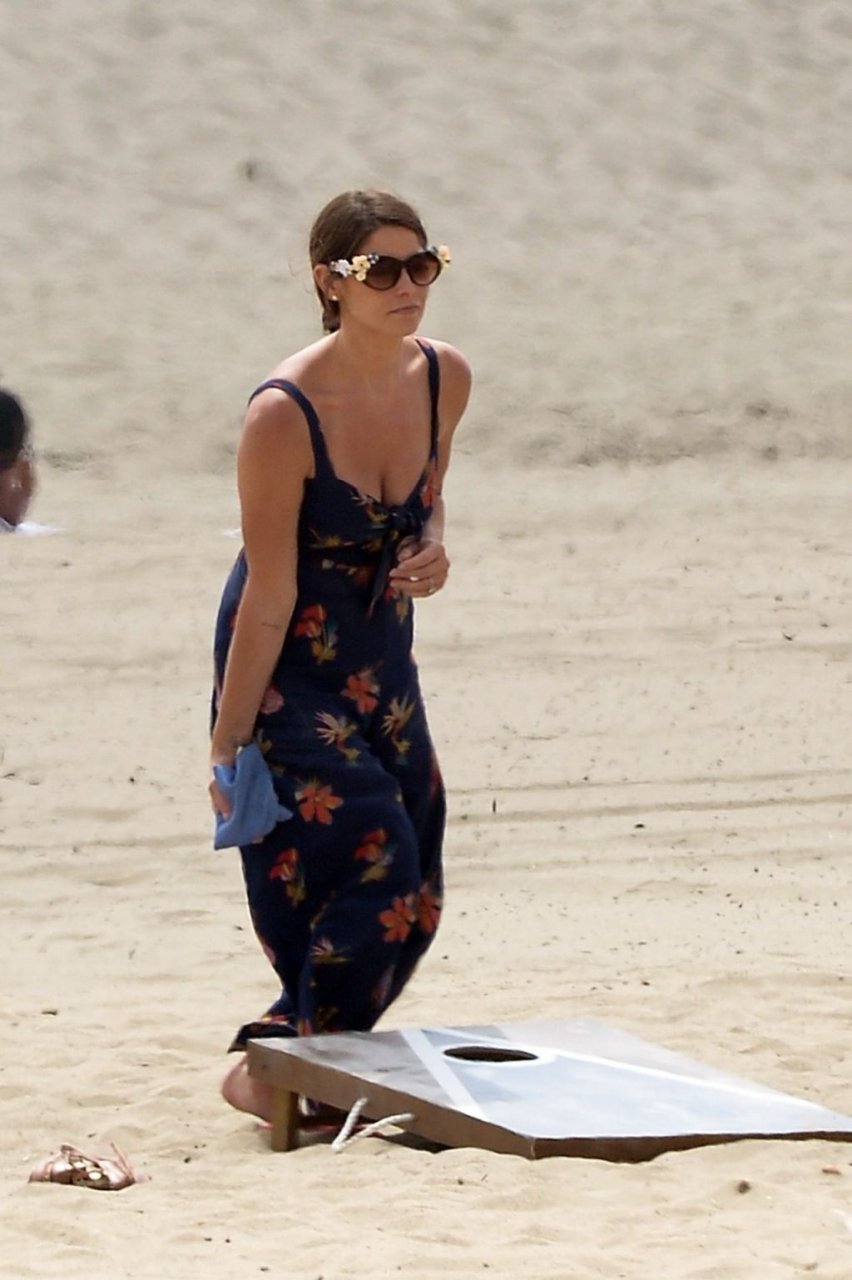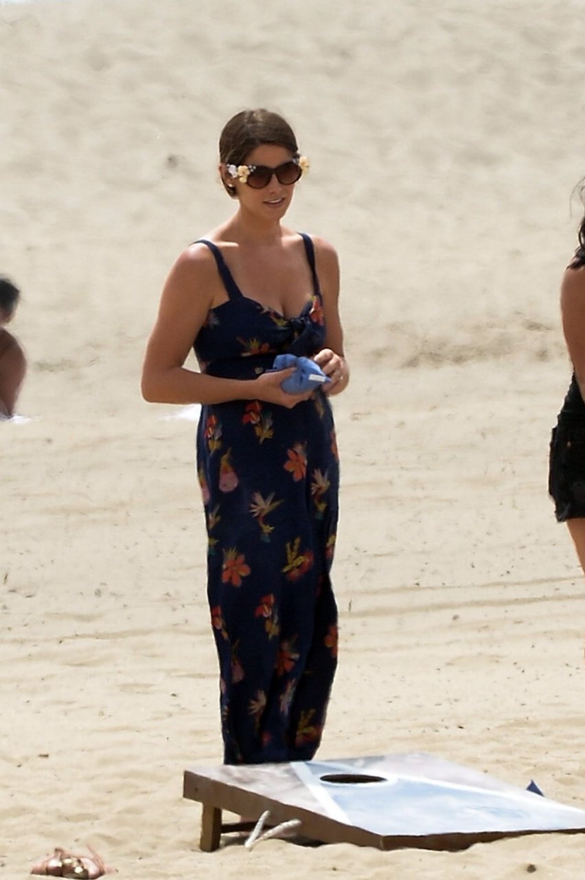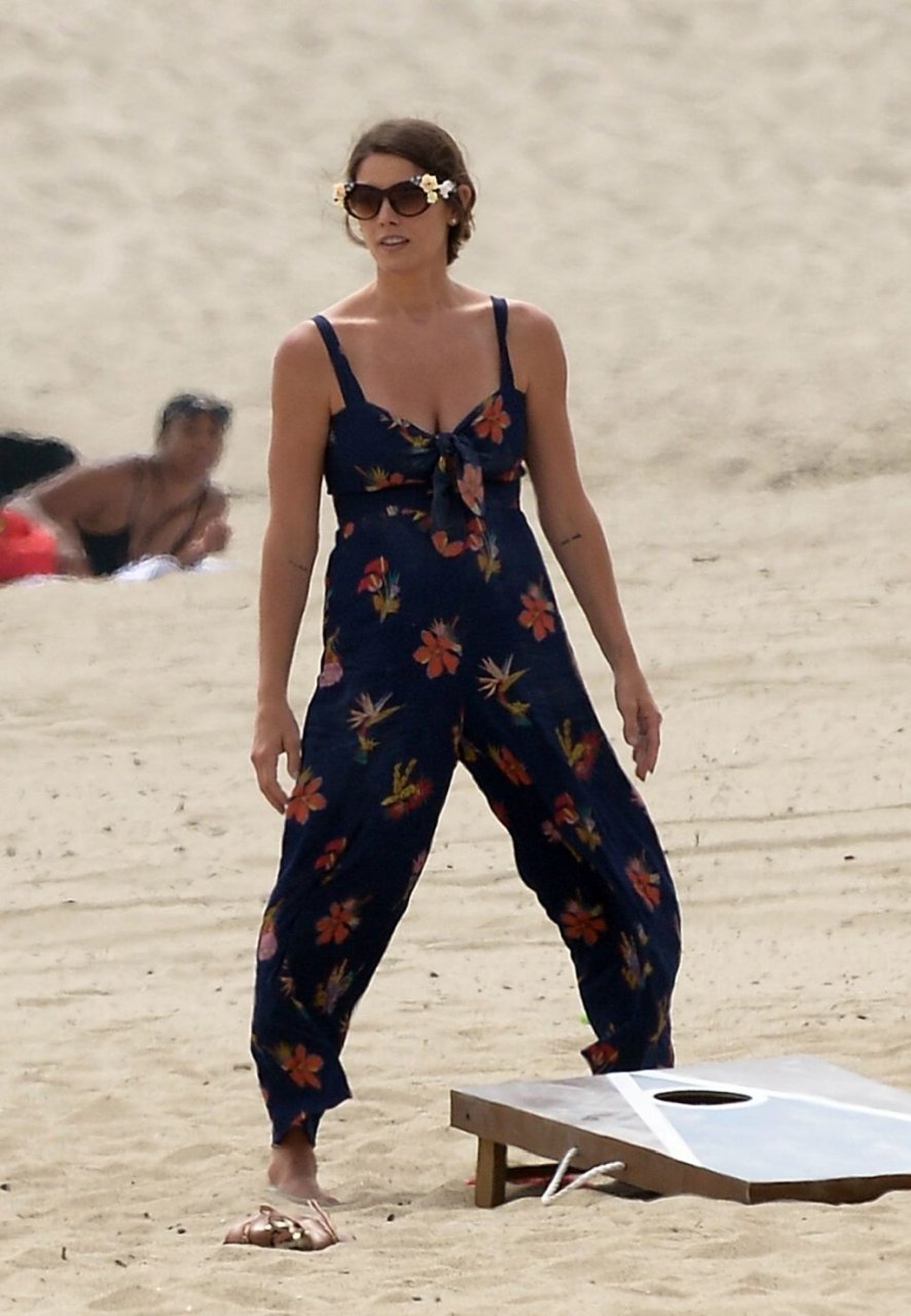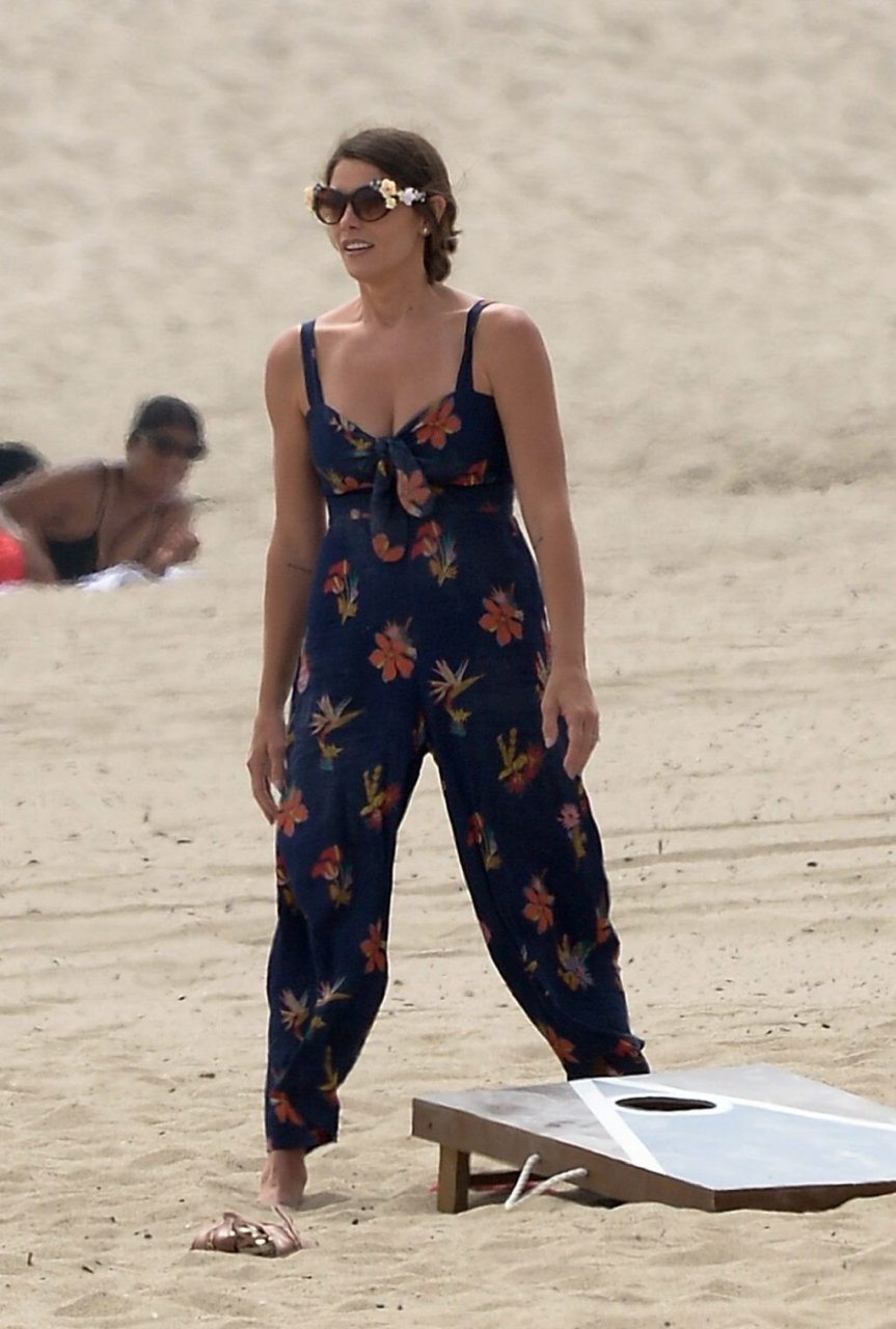 Ashley Greene fue vista en una fiesta en la playa con amigos en Los Ángeles, 14/07/2019. La actriz de 32 años caminó descalza sobre la arena mientras llevaba un mono floral y gafas de sol envueltas en flores.