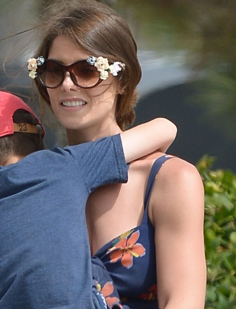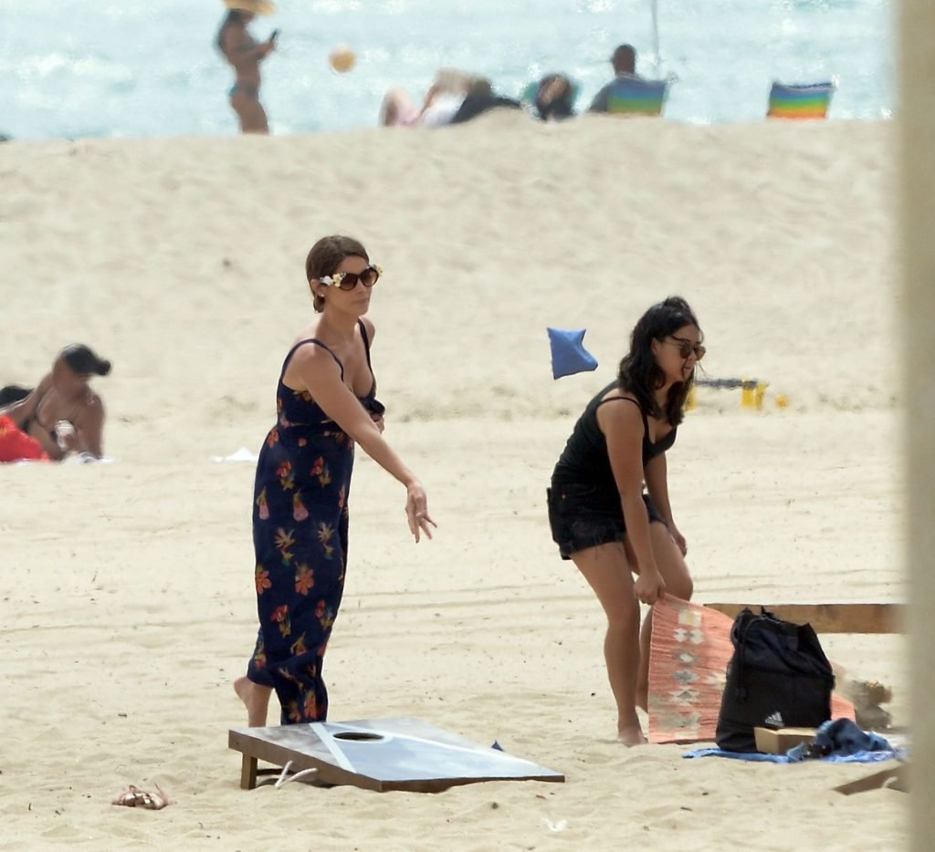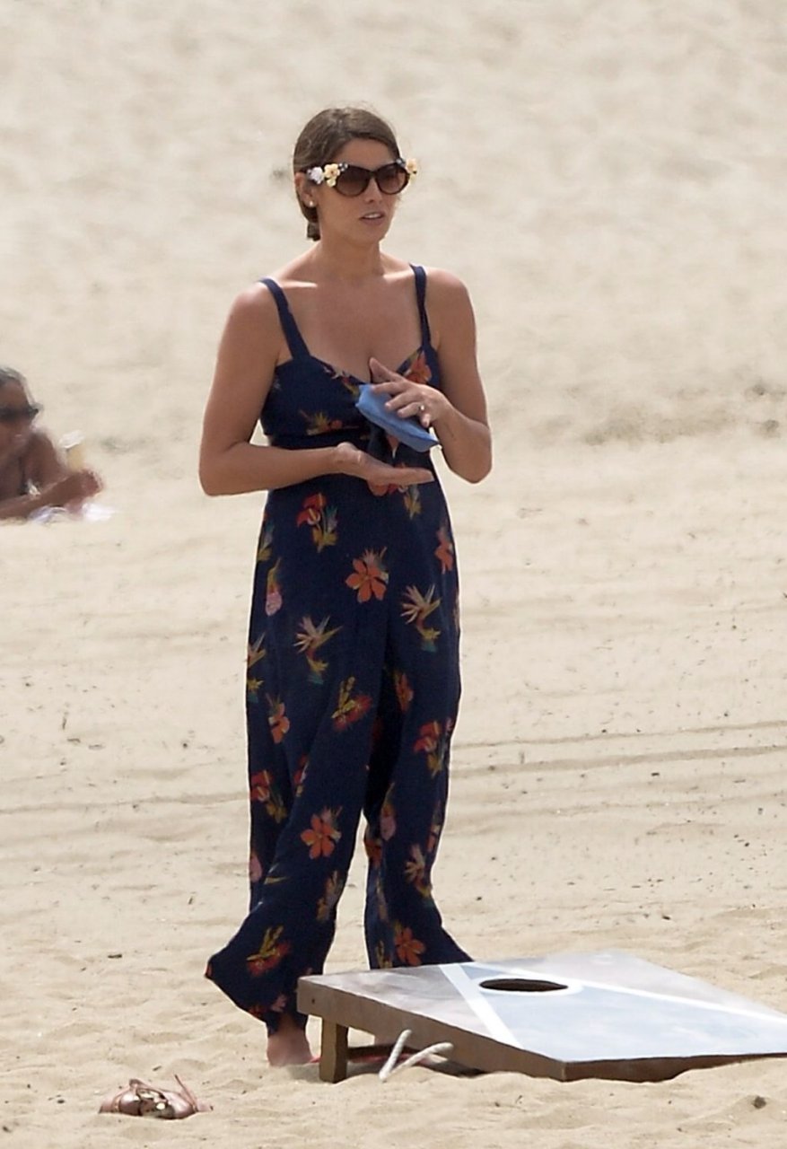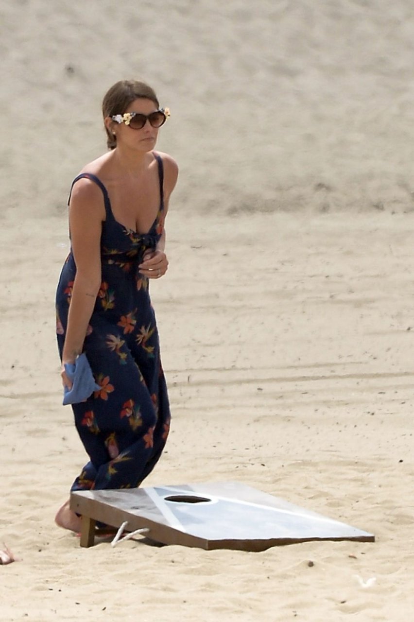 Ashley Greene fue vista en una fiesta en la playa con amigos en Los Ángeles, 14/07/2019. La actriz de 32 años caminó descalza sobre la arena mientras llevaba un mono floral y gafas de sol envueltas en flores.