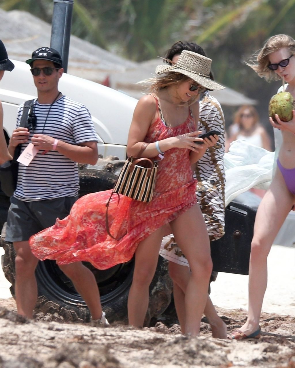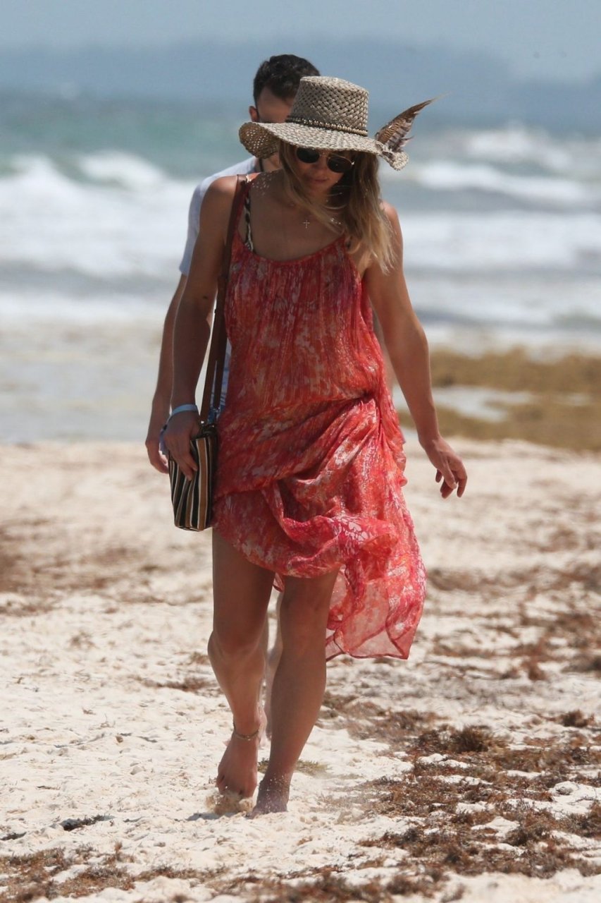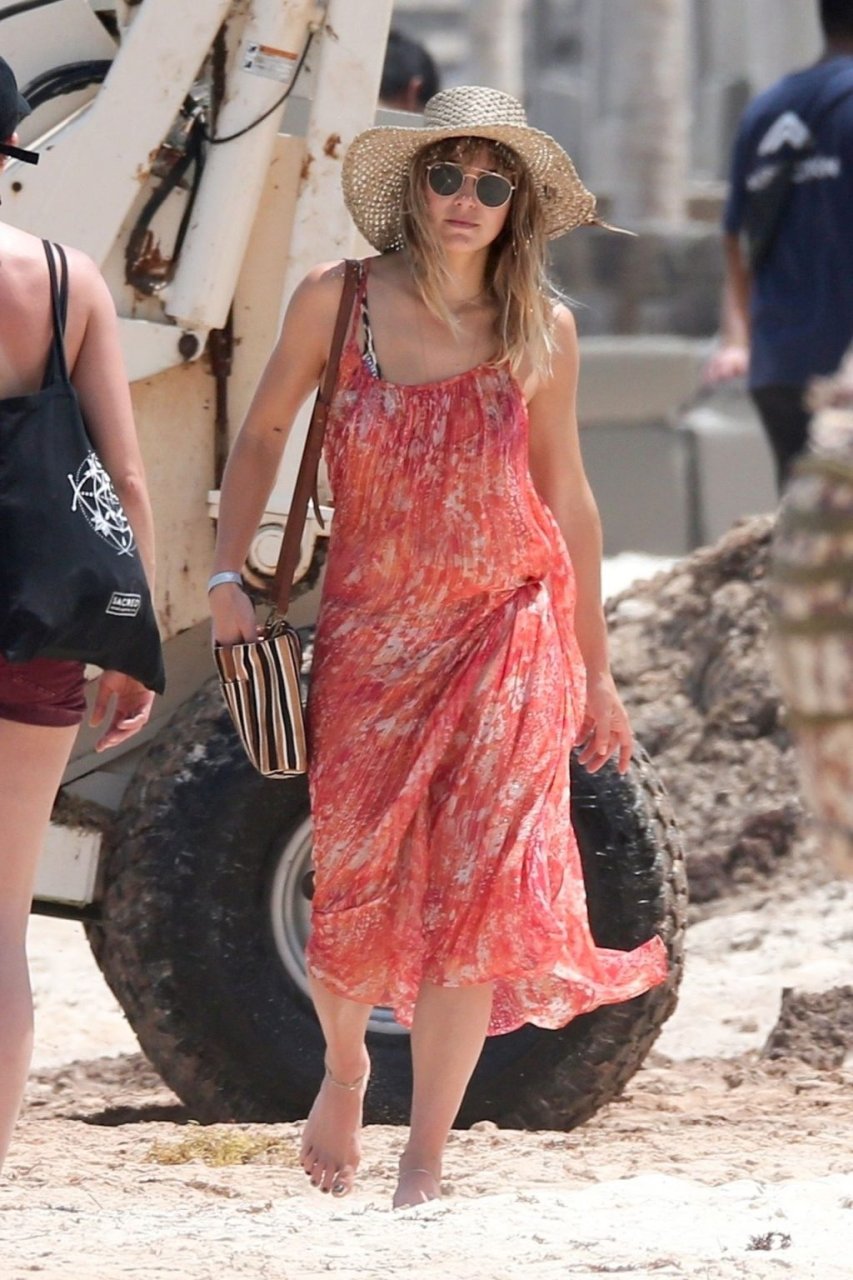 Ashley Hart fue vista saliendo de la Conferencia Summit en la Playa de Tulum, México, 18/05/2019. La modelo de Instagram disfrutó del sol con un bikini de estampado brillante mientras caminaba descalza por la playa.