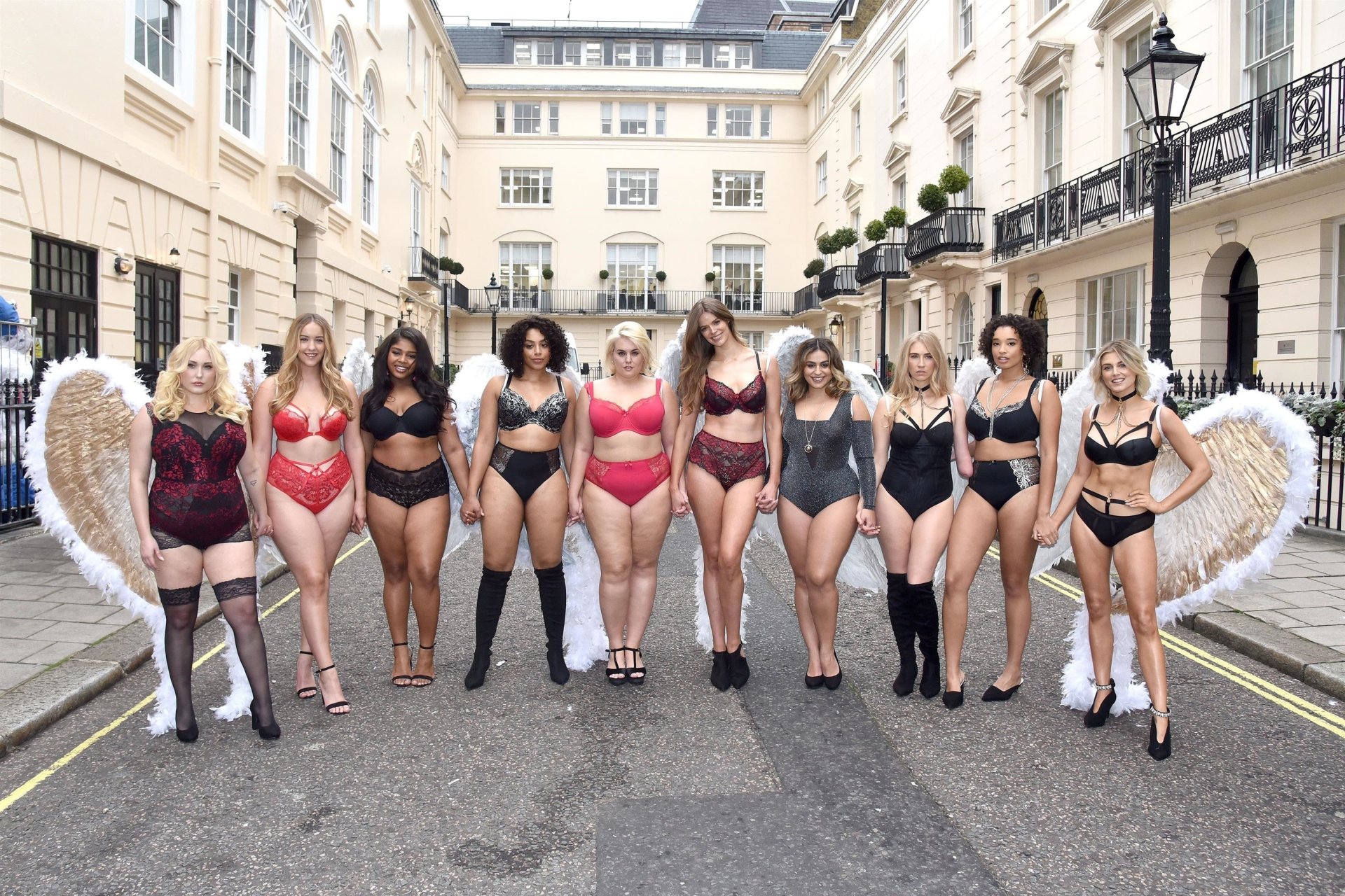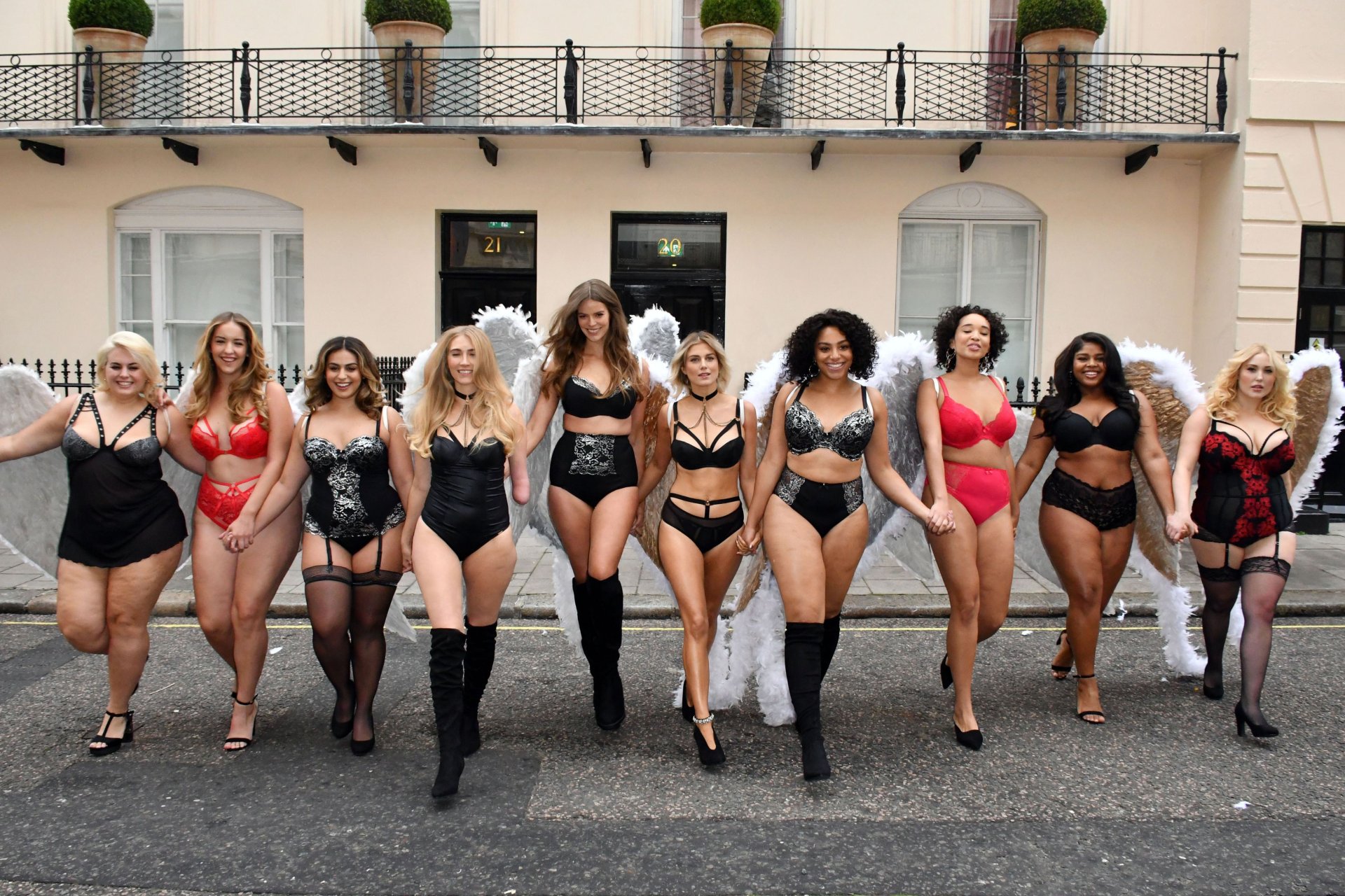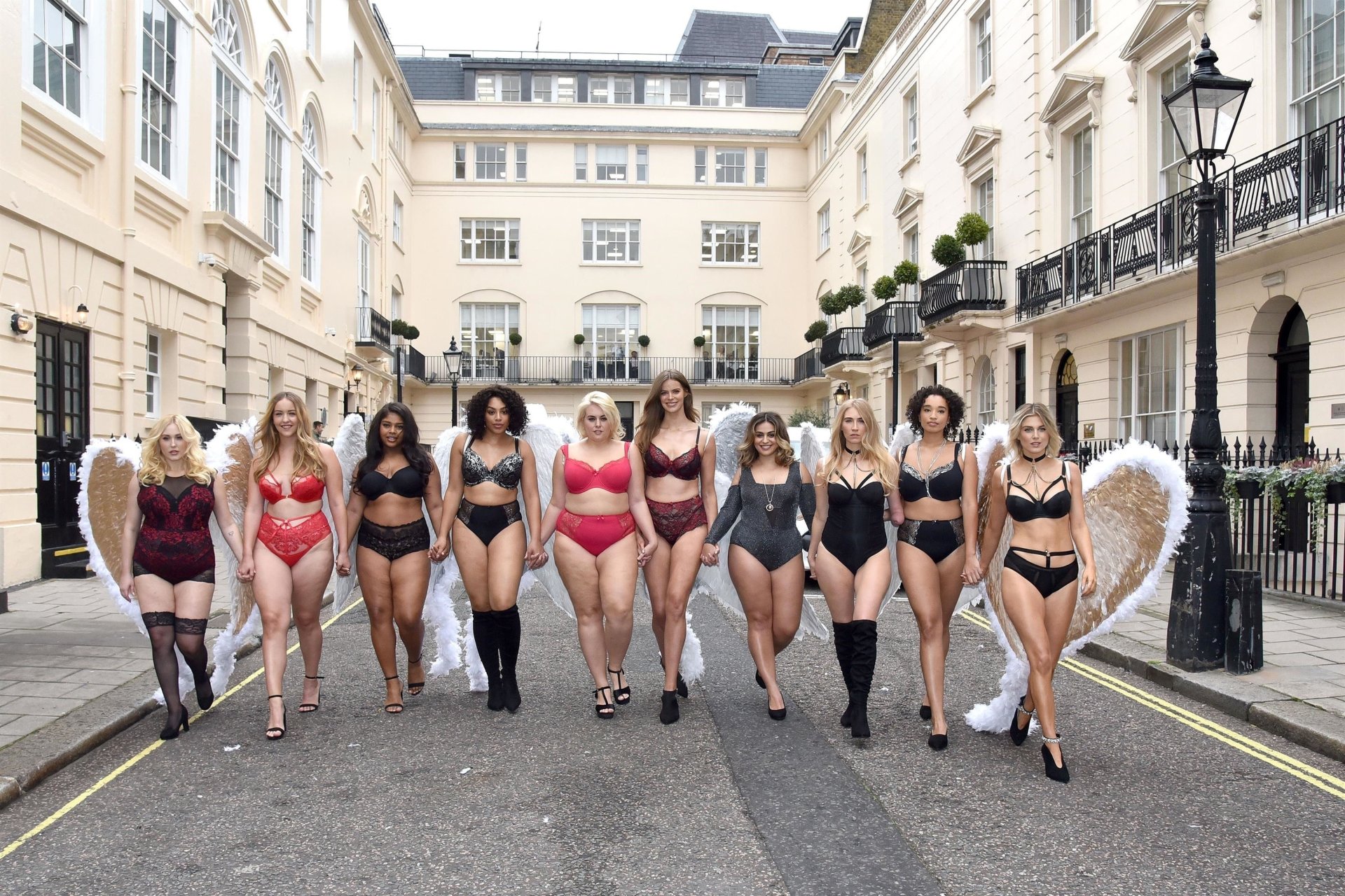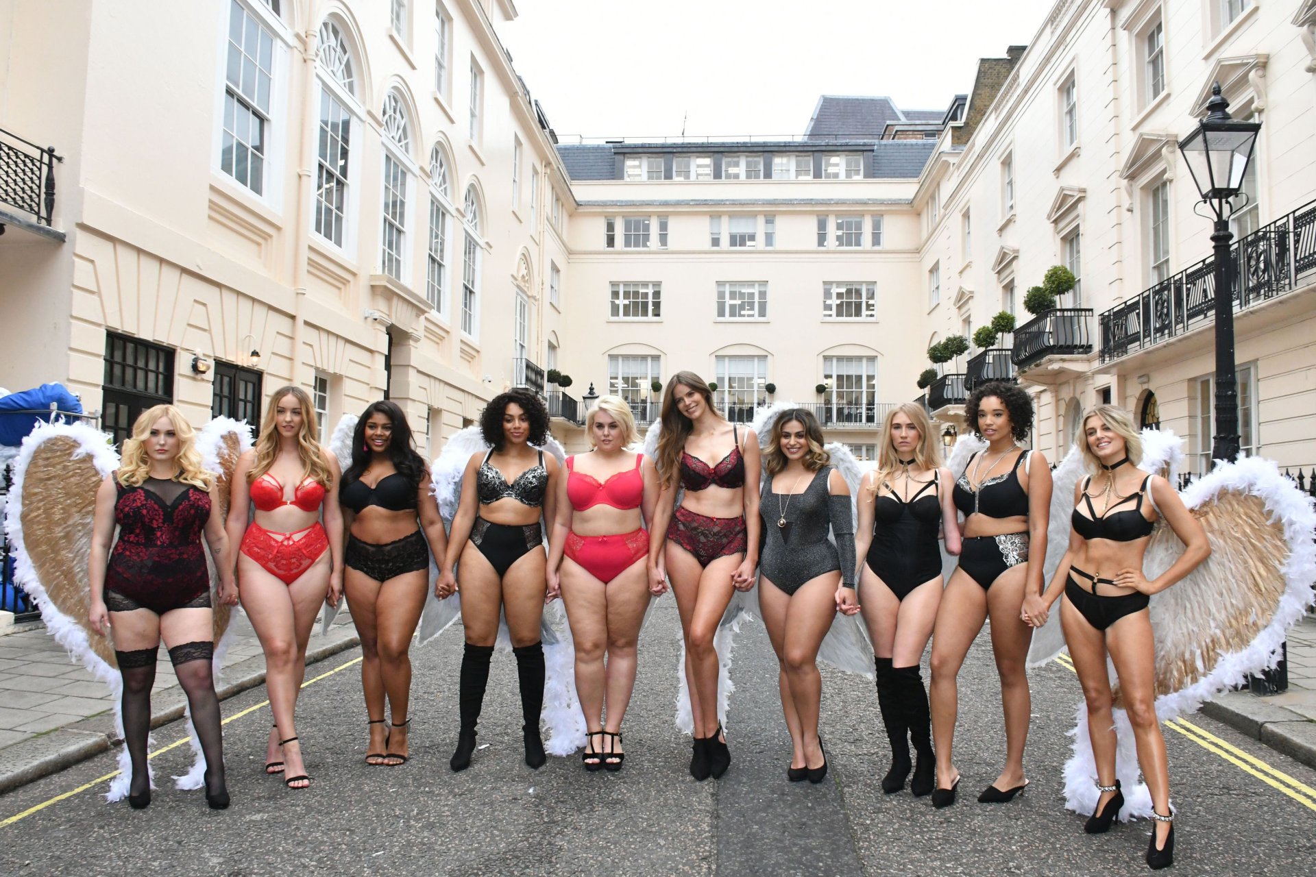 Ashley James, Robyn Lawley, Hayley Hasselhoff, Kelly Knox, Felicity Hayward, Joann van den Herik, y otras modelos fueron vistas en un desfile de lencería con la colección navideña de Simply Be, 06/11/2018. Diez modelos caminaron en el desfile, mostrando dos looks en Londres.