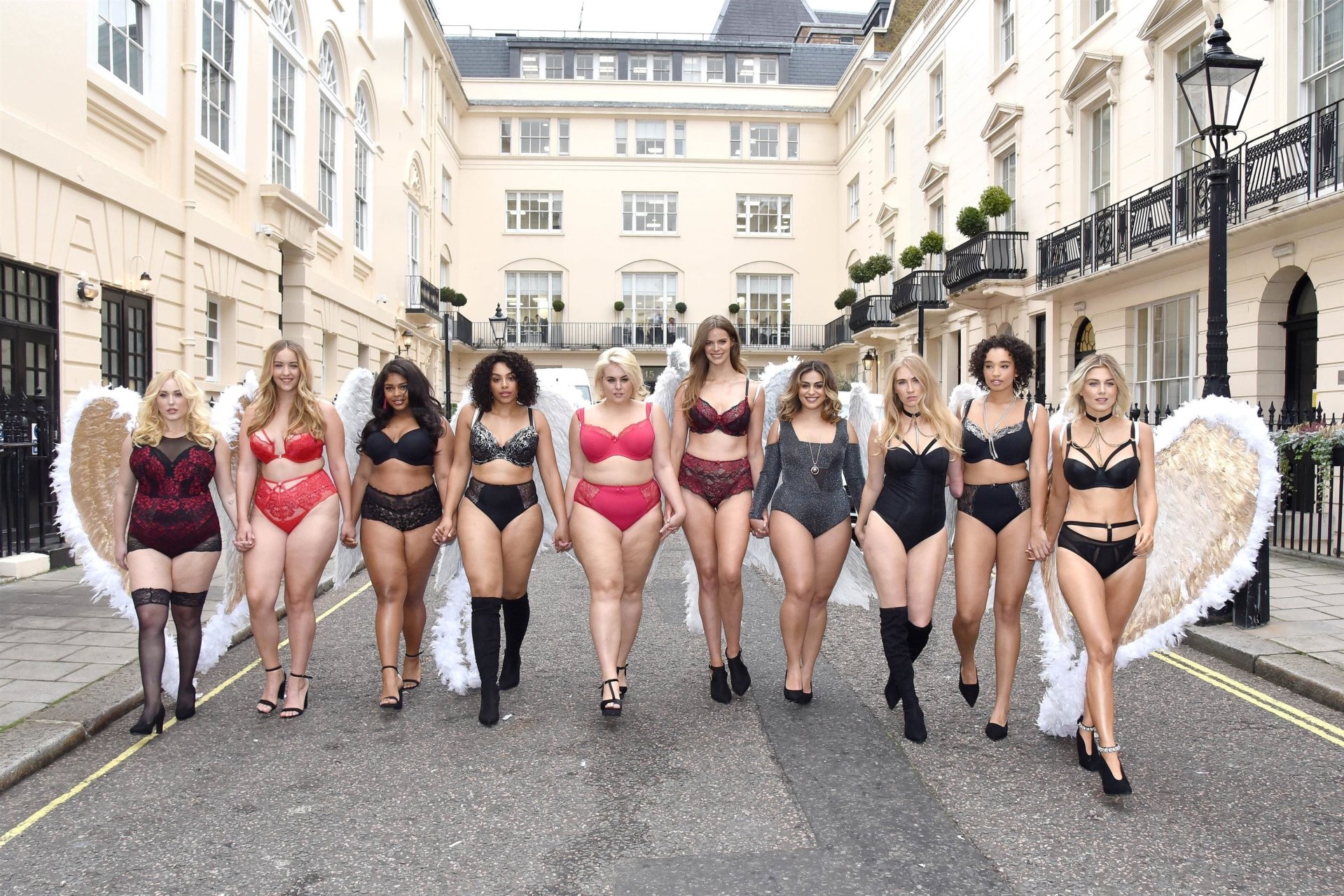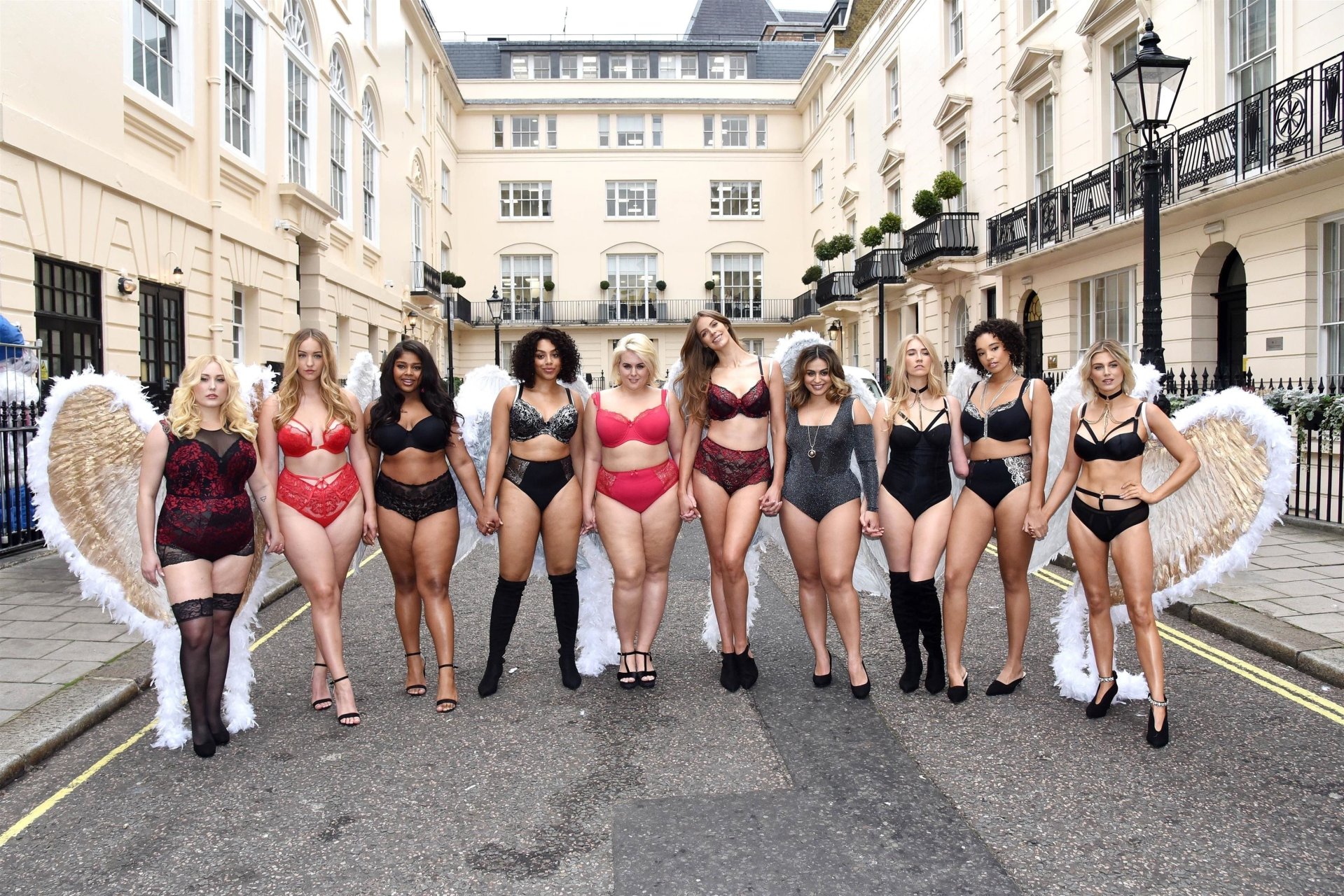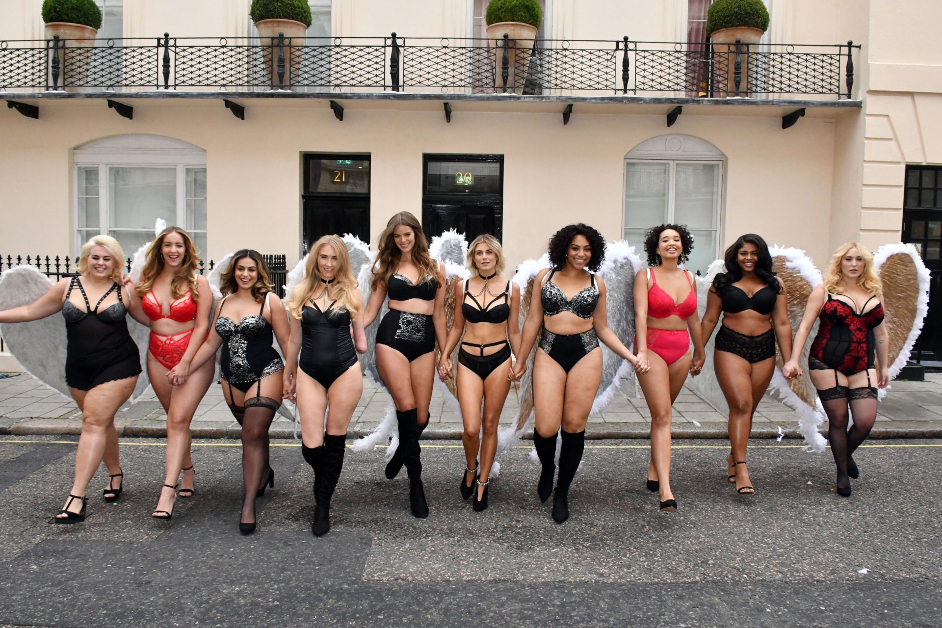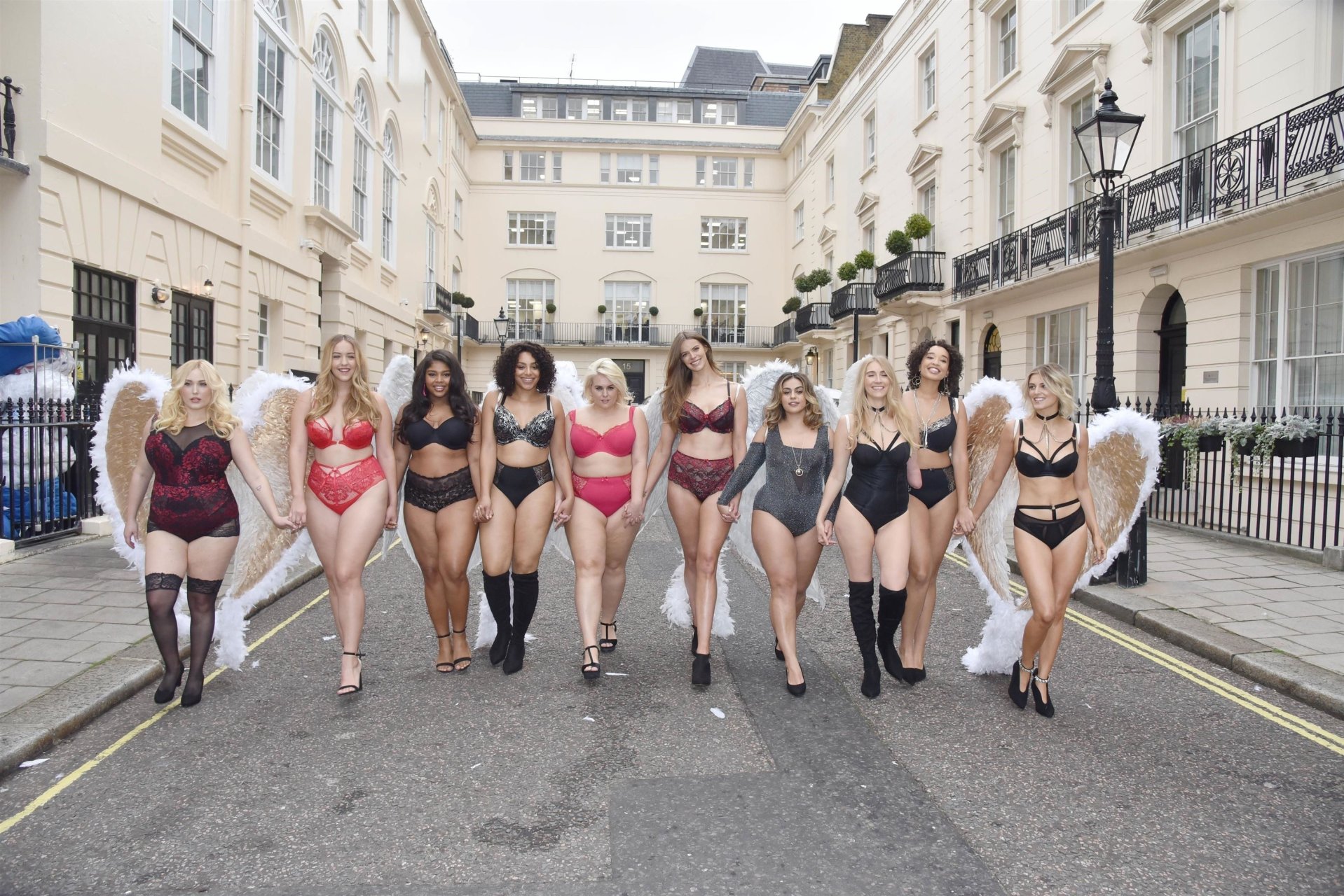 Ashley James, Robyn Lawley, Hayley Hasselhoff, Kelly Knox, Felicity Hayward, Joann van den Herik, y otras modelos fueron vistas en un desfile de lencería con la colección navideña de Simply Be, 06/11/2018. Diez modelos caminaron en el desfile, mostrando dos looks en Londres.