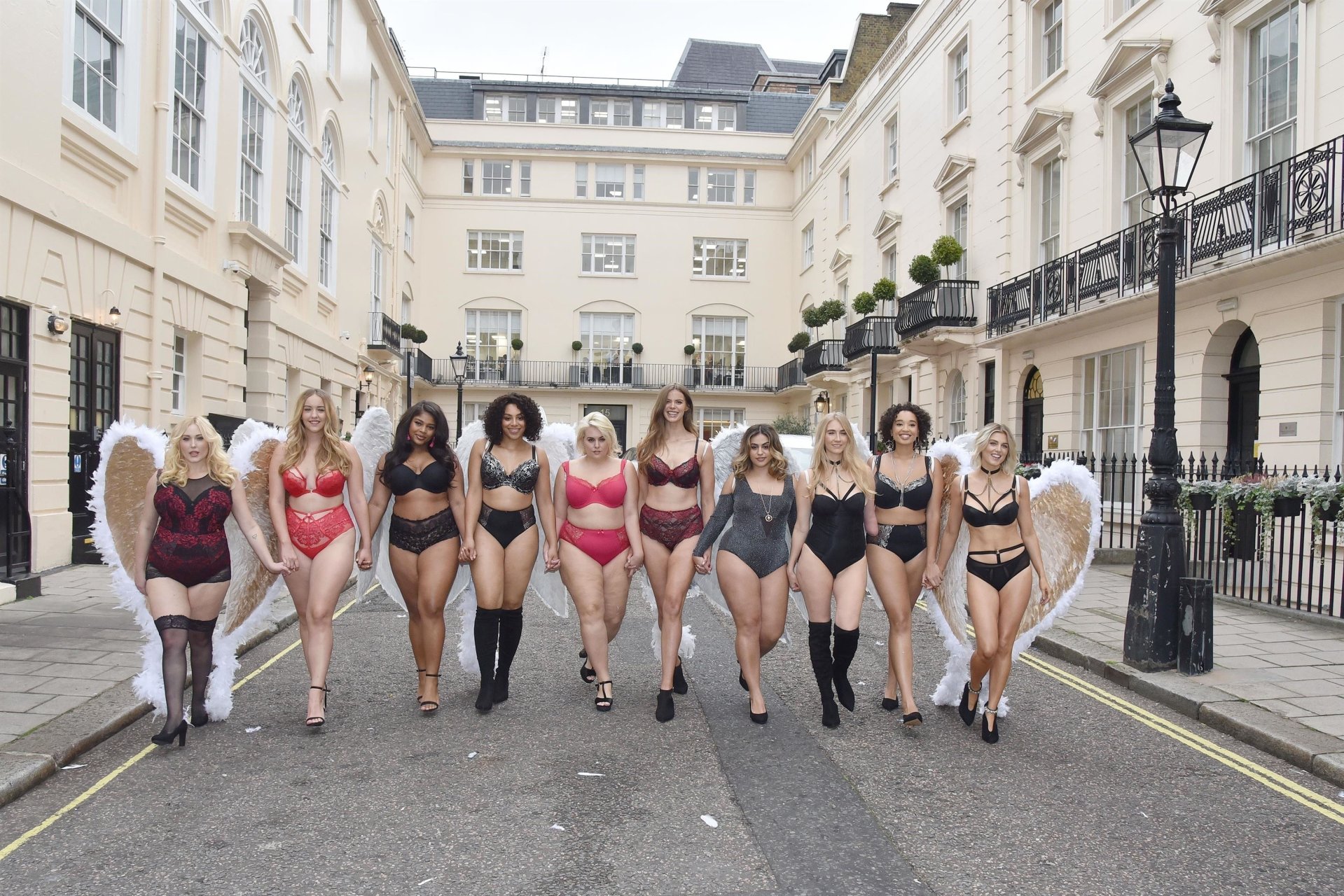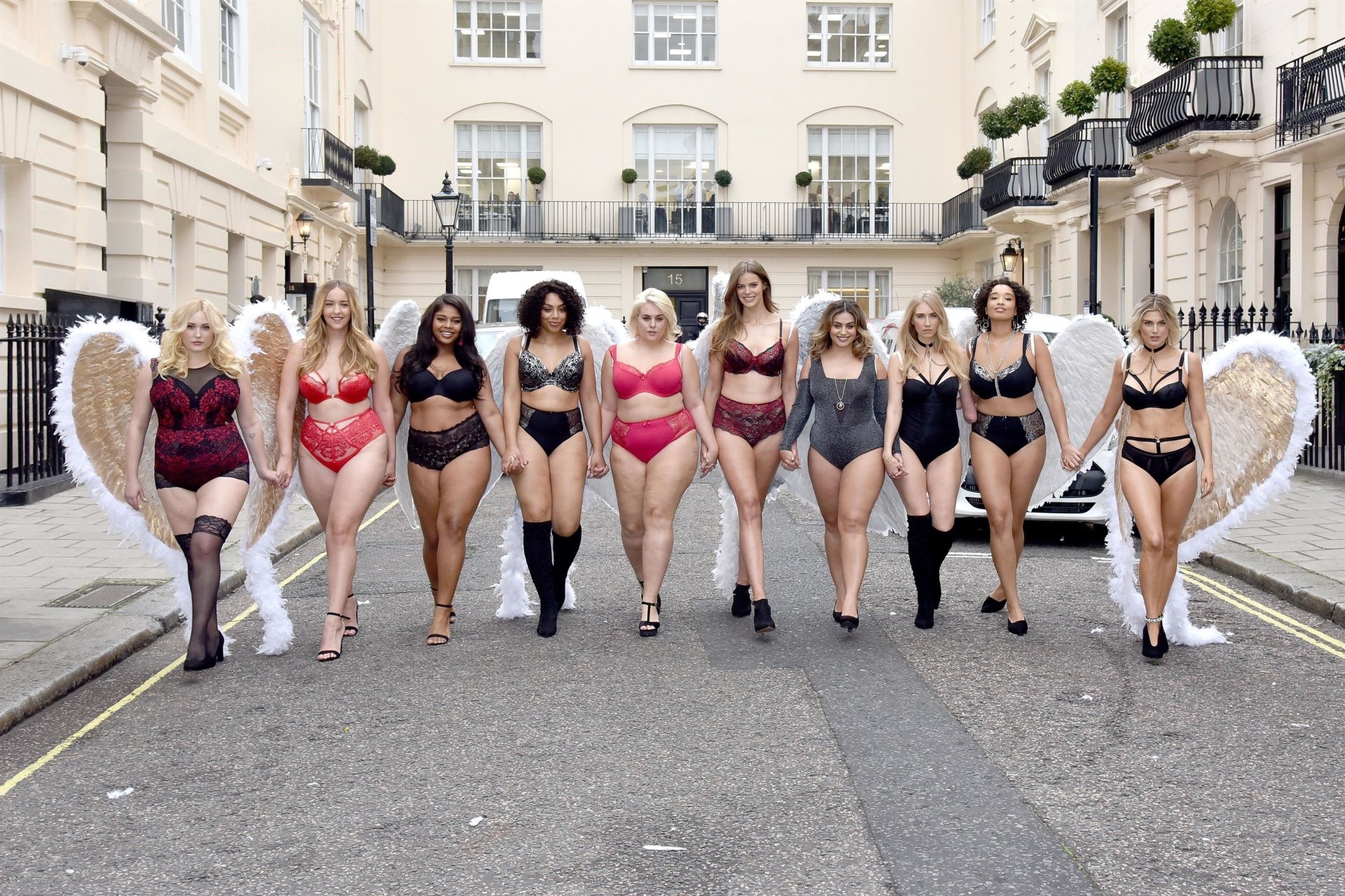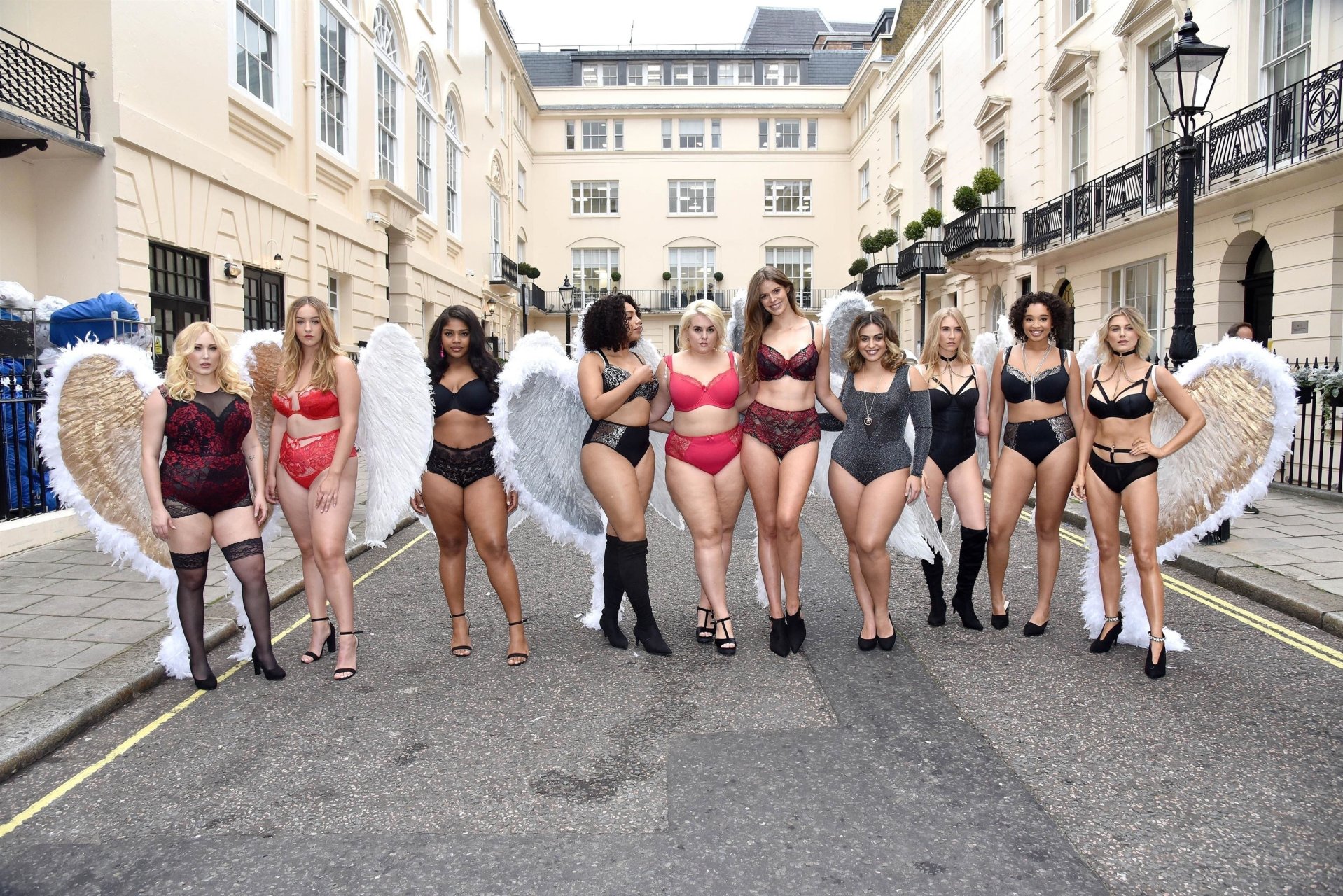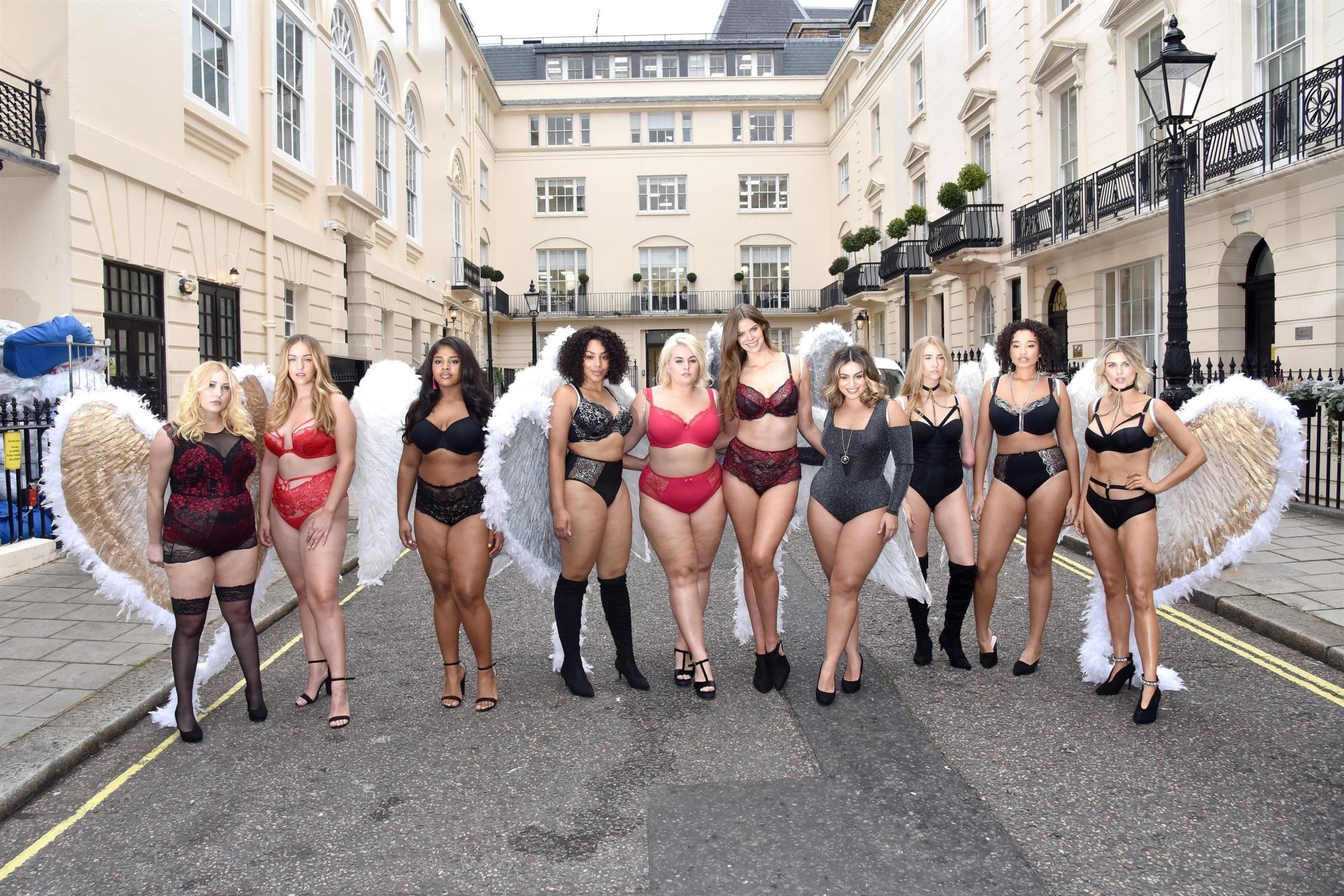 Ashley James, Robyn Lawley, Hayley Hasselhoff, Kelly Knox, Felicity Hayward, Joann van den Herik, y otras modelos fueron vistas en un desfile de lencería con la colección navideña de Simply Be, 06/11/2018. Diez modelos caminaron en el desfile, mostrando dos looks en Londres.