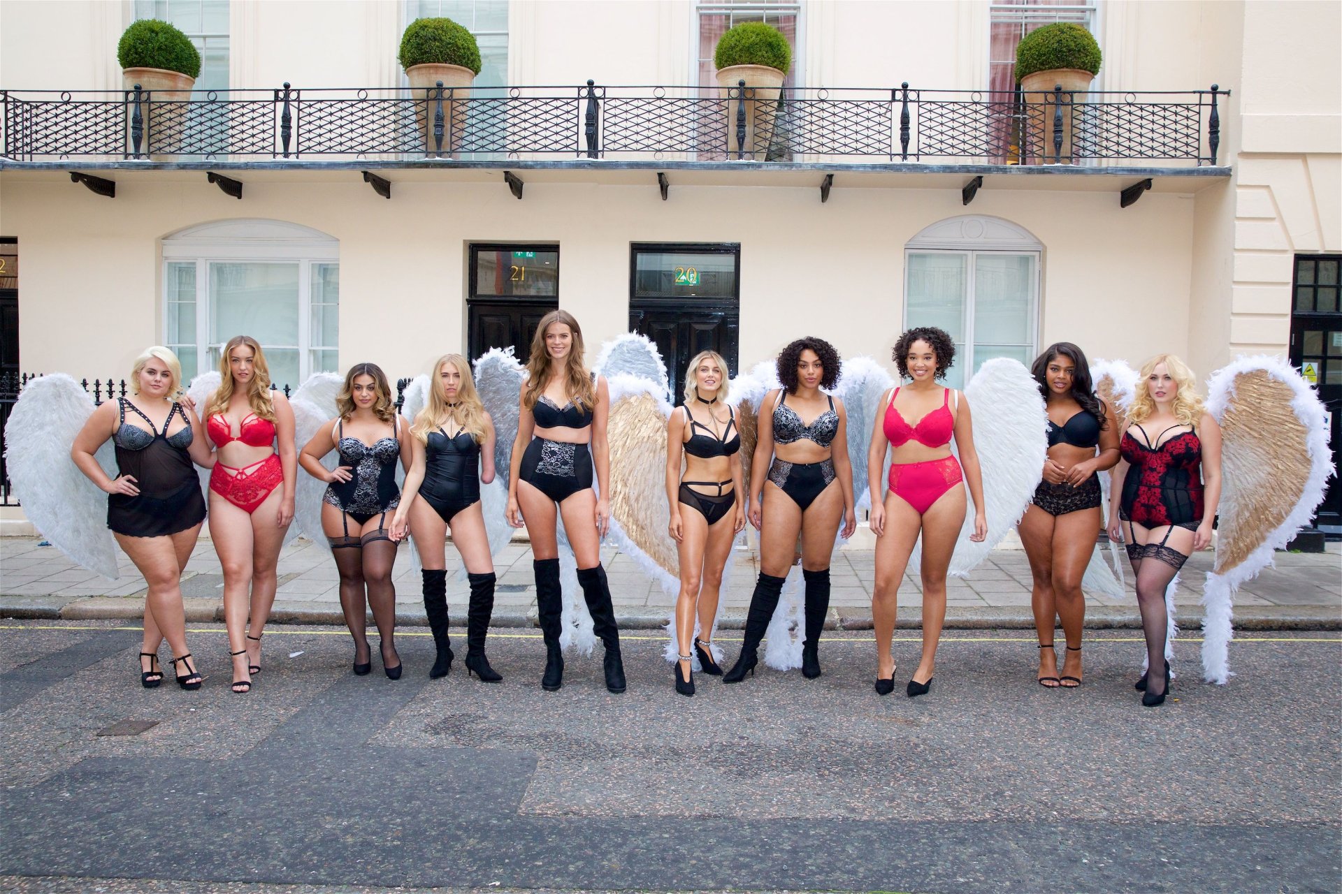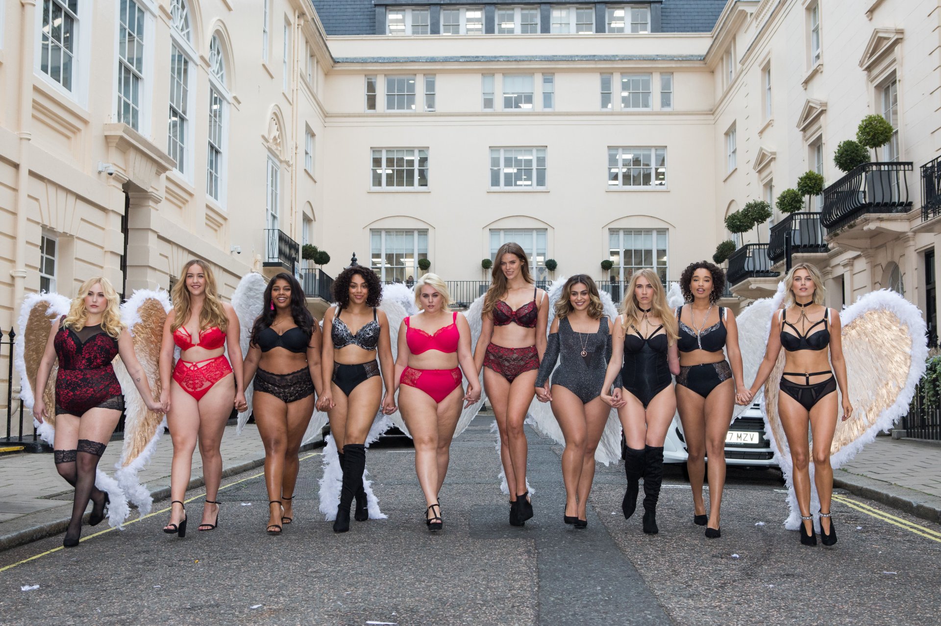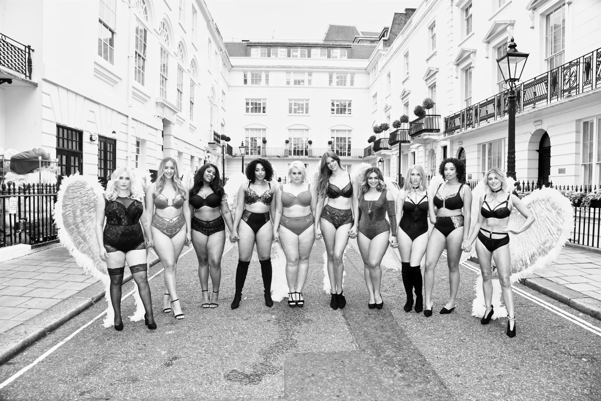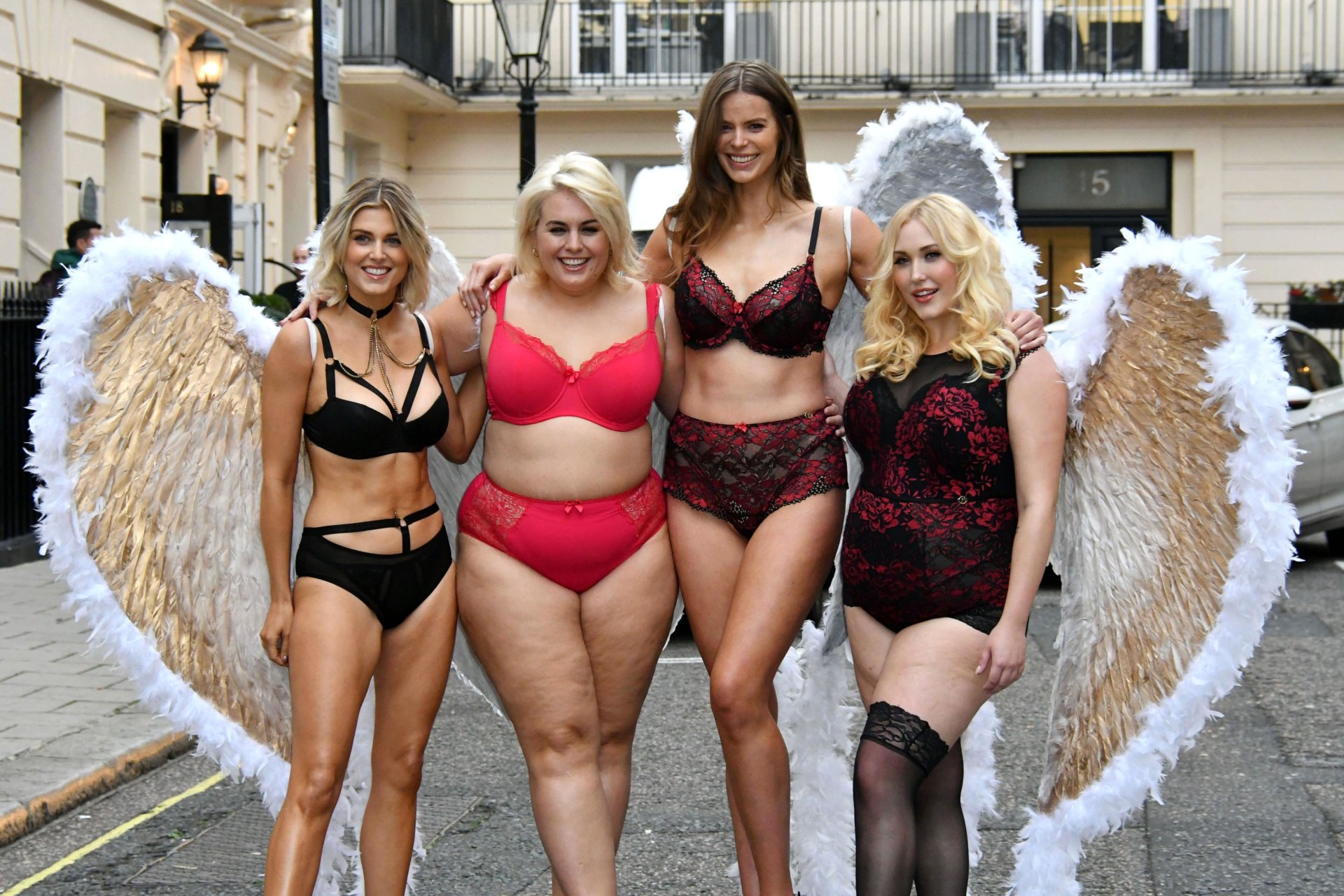 Ashley James, Robyn Lawley, Hayley Hasselhoff, Kelly Knox, Felicity Hayward, Joann van den Herik, y otras modelos fueron vistas en un desfile de lencería con la colección navideña de Simply Be, 06/11/2018. Diez modelos caminaron en el desfile, mostrando dos looks en Londres.