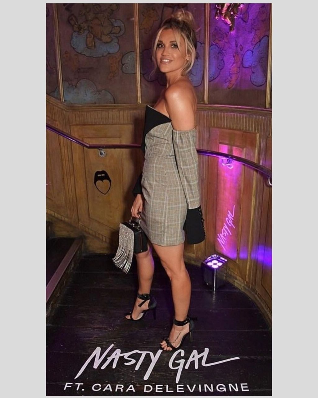 Ashley Roberts, con un busto prominente y piernas largas, fue vista saliendo de la fiesta de lanzamiento de Cara Delevingne x Nasty Gal en el club The Box en Soho, Londres, 22/10/2019.