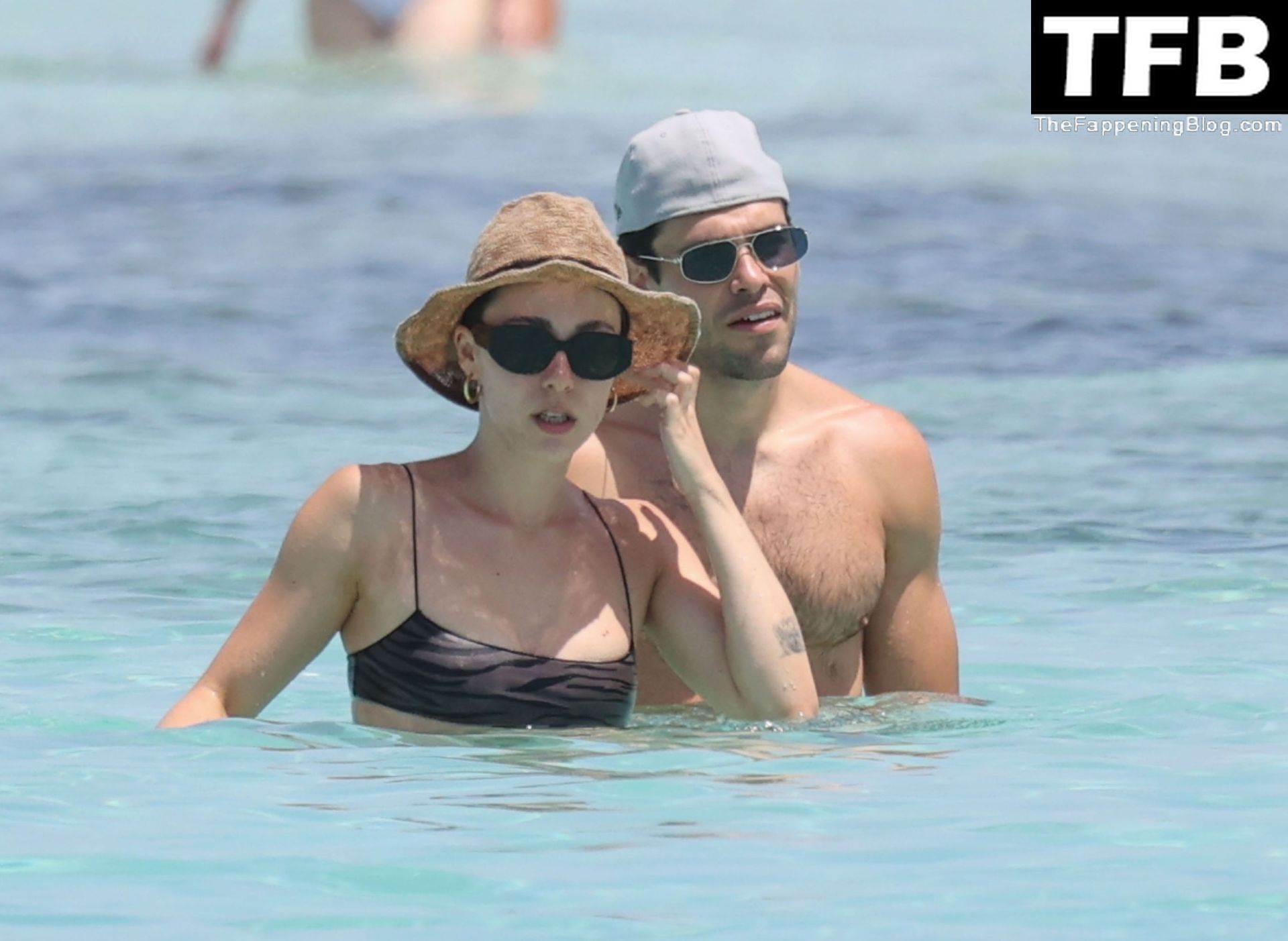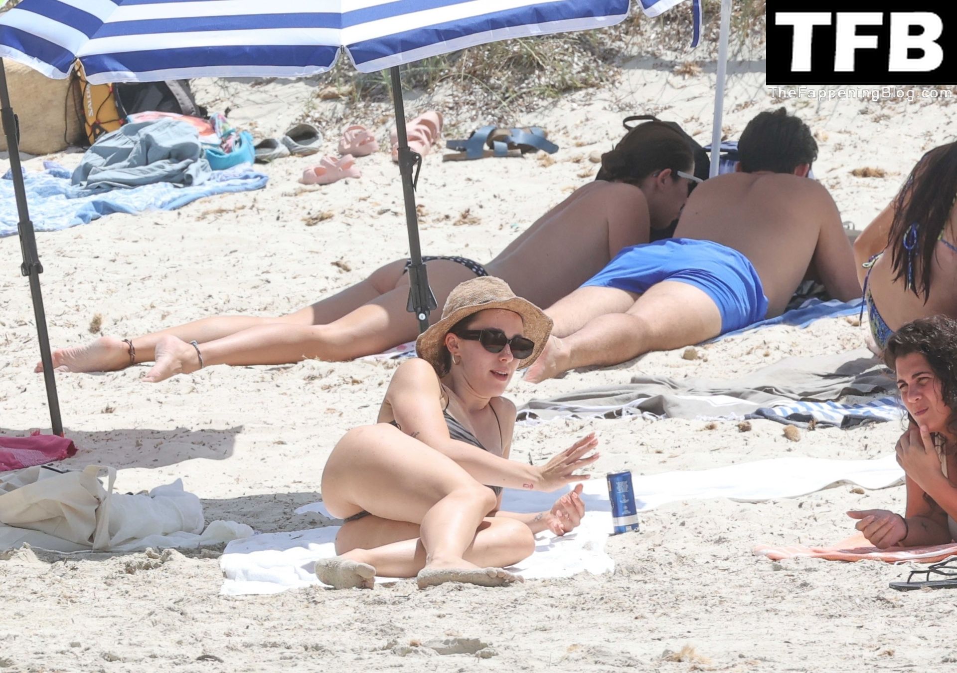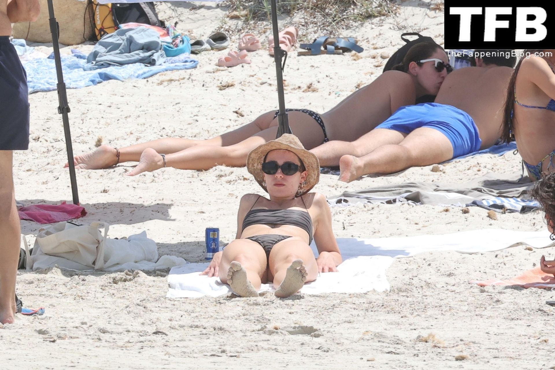 Presentadora de televisión italiana y Michelle Hunziker hija Aurora Ramazzotti exhibe su esbelta figura con su pequeño bikini negro durante sus vacaciones con su novio Goffredo Cerza mostrando muestras públicas de afecto en la playa de Formentera, España, 17/06/2022.