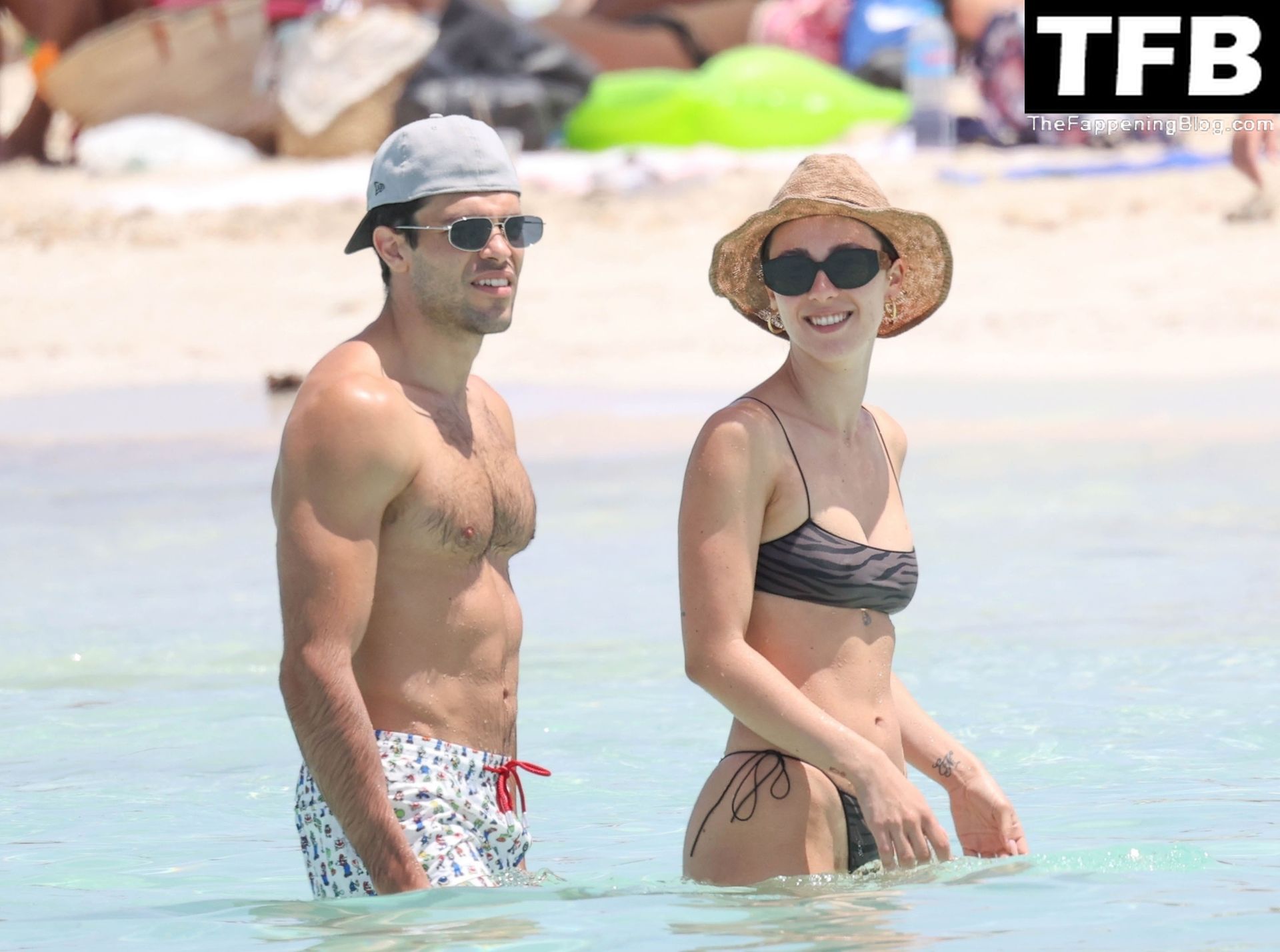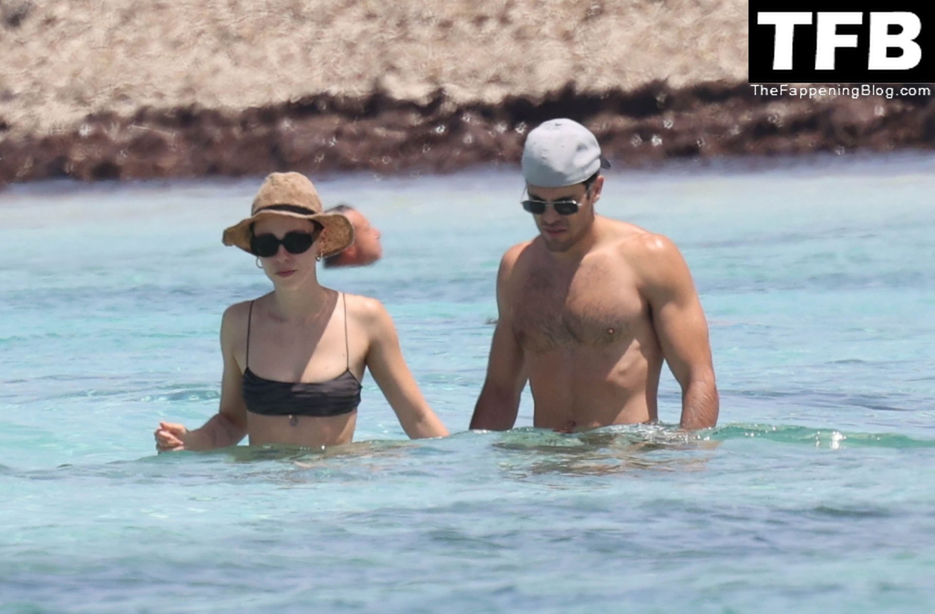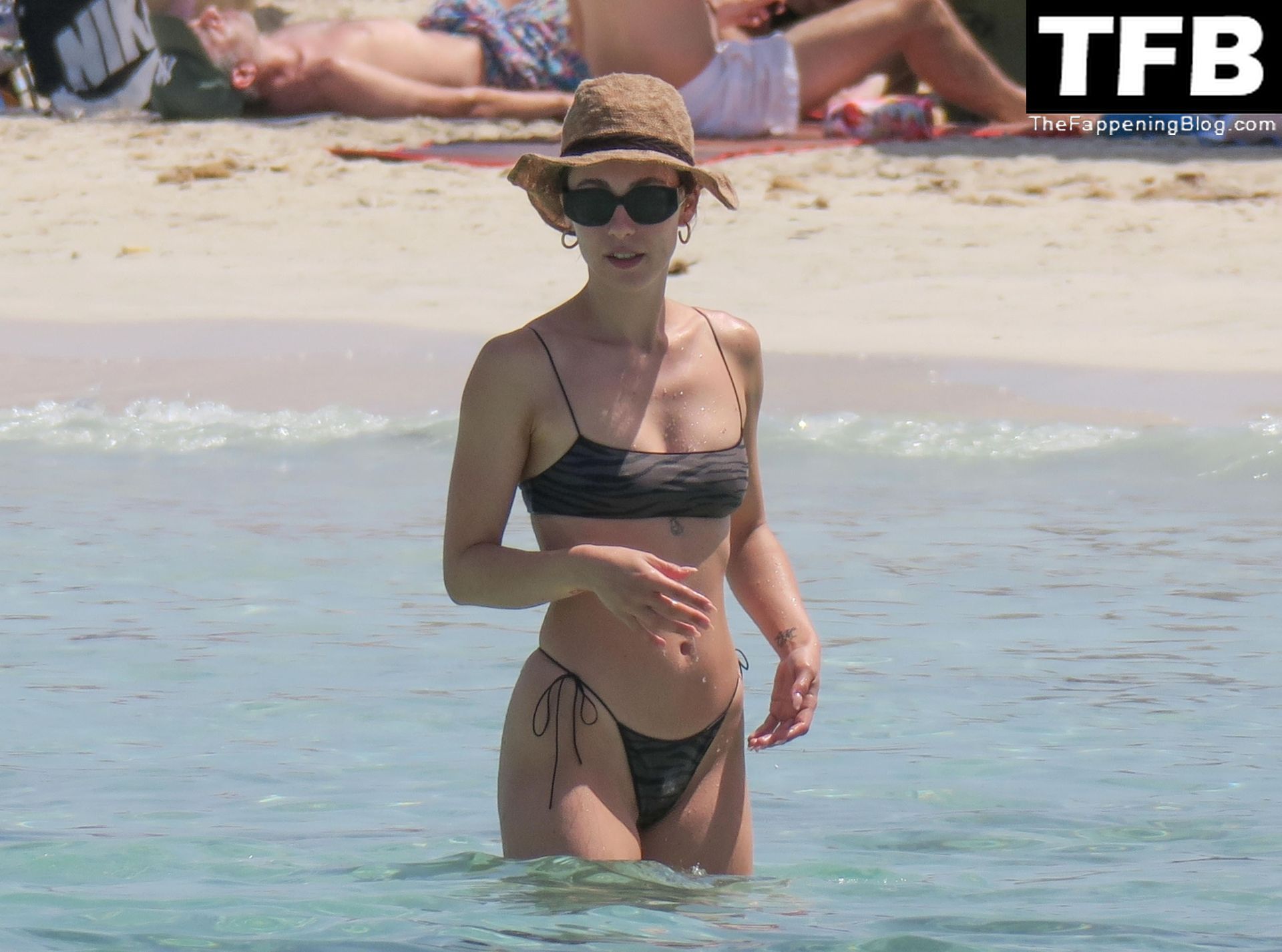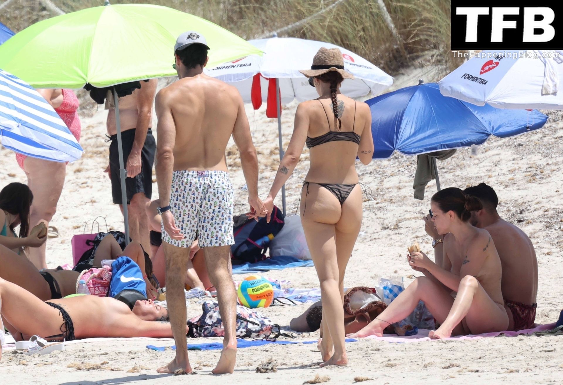 Presentadora de televisión italiana y Michelle Hunziker hija Aurora Ramazzotti exhibe su esbelta figura con su pequeño bikini negro durante sus vacaciones con su novio Goffredo Cerza mostrando muestras públicas de afecto en la playa de Formentera, España, 17/06/2022.