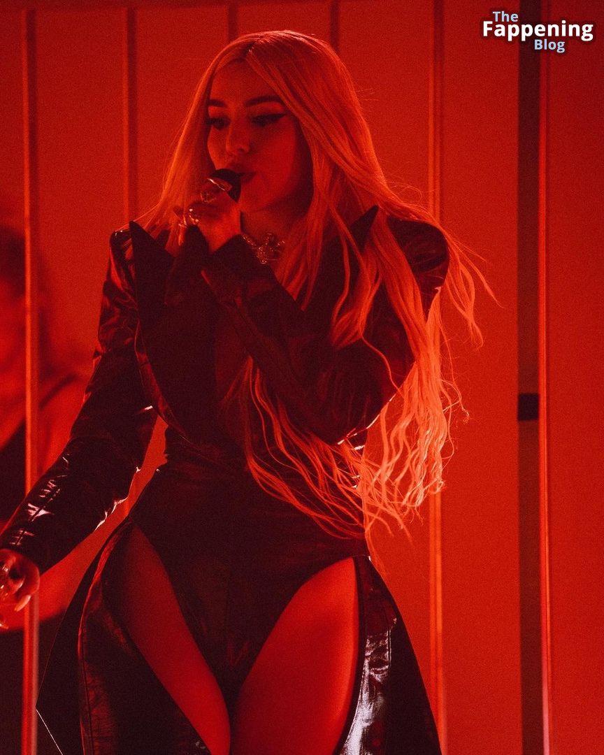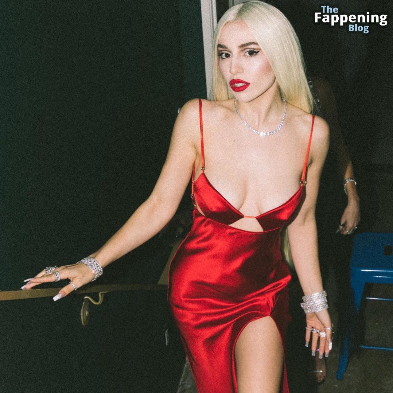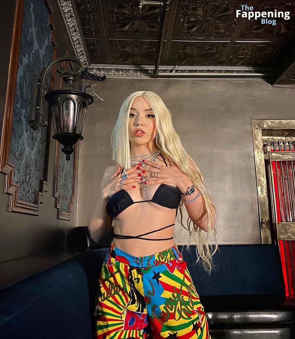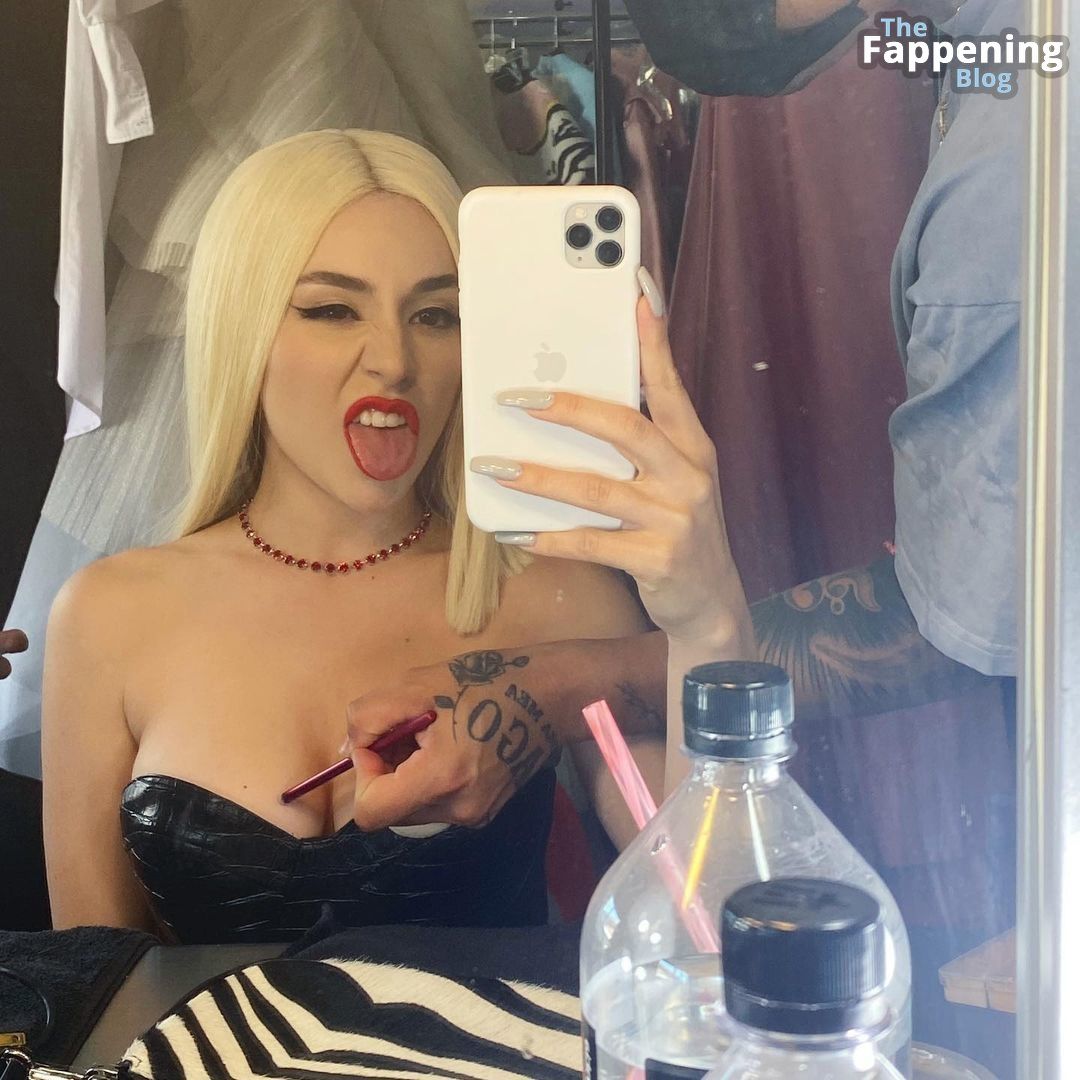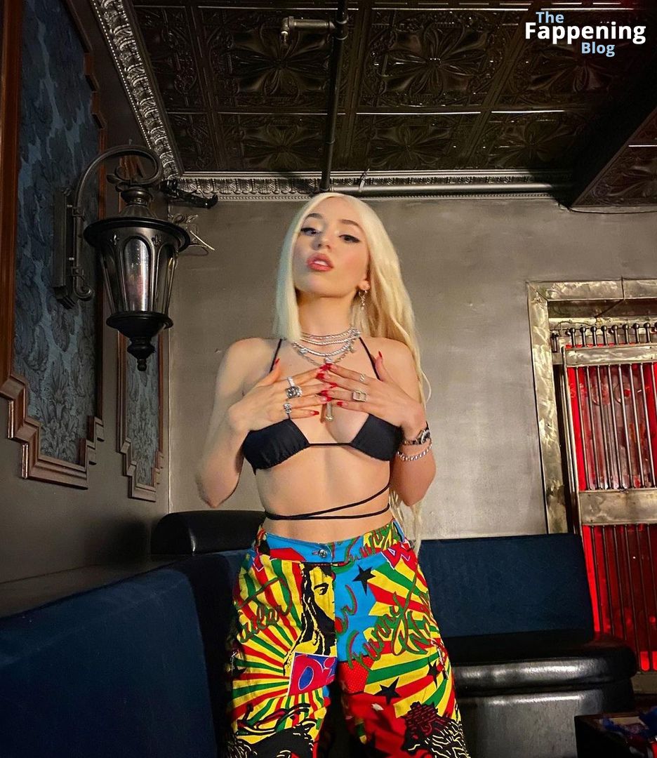 A Ava Max le encanta mostrarse casi desnuda en sus fotos también. Siempre publica imágenes seductoras en Instagram, mostrando su confianza y atractivo sexual. Y hasta conseguimos algunas fotos falsas filtradas de ella.