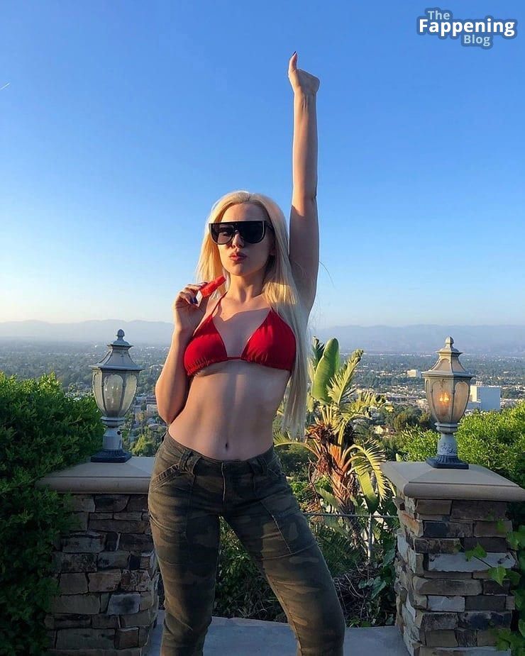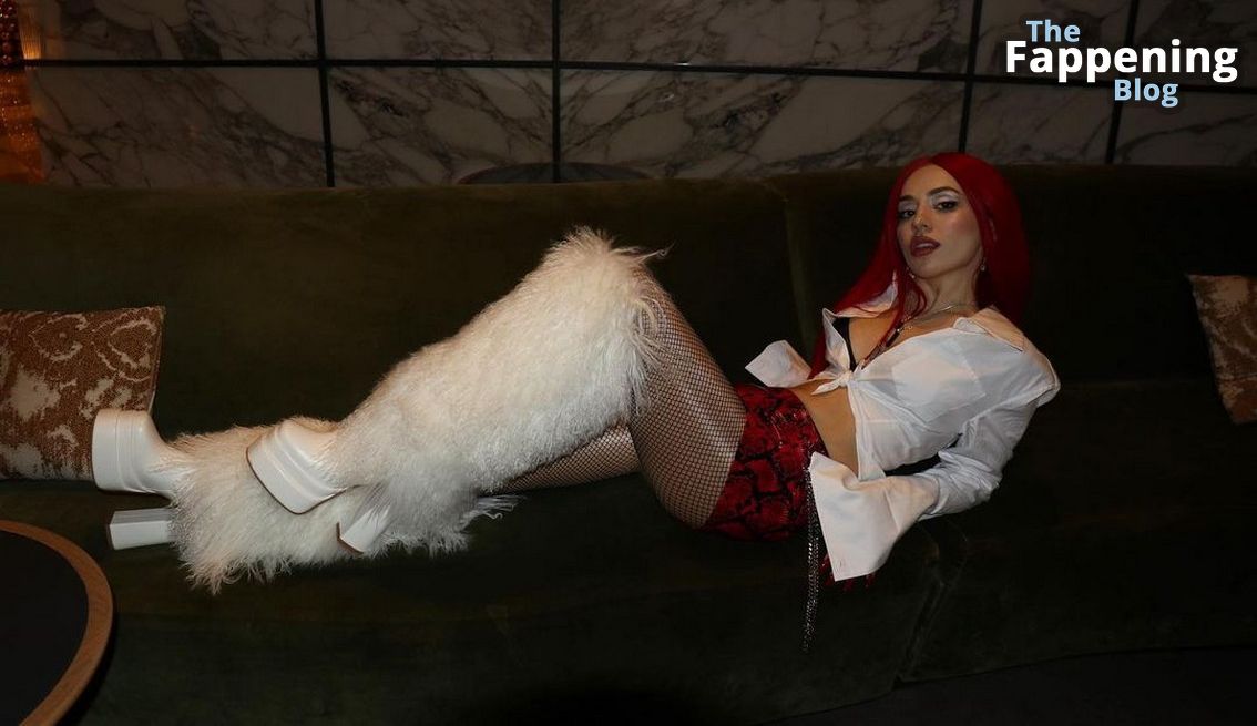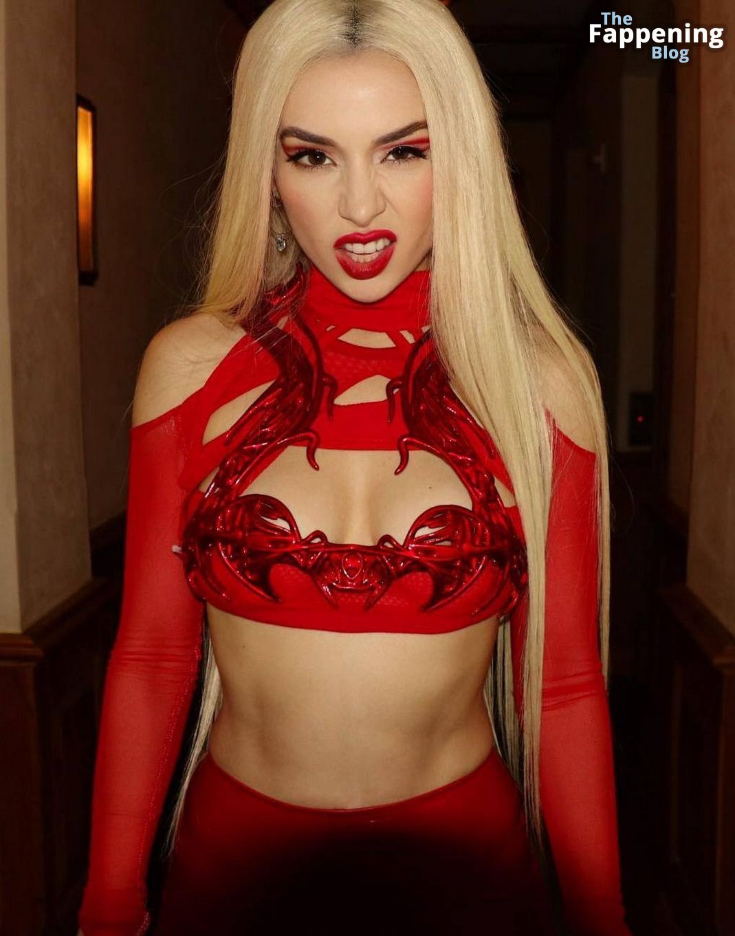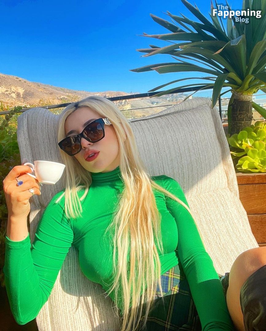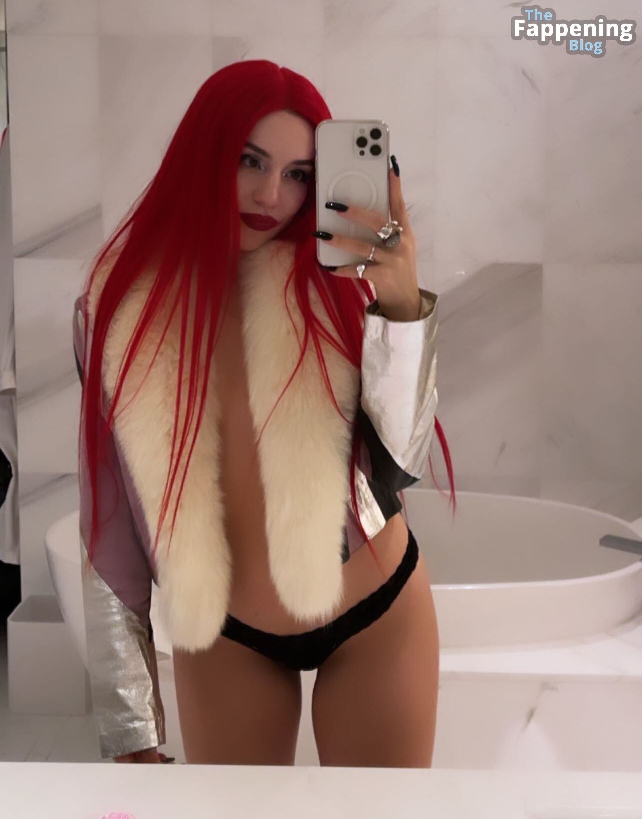 A Ava Max le encanta mostrarse casi desnuda en sus fotos también. Siempre publica imágenes seductoras en Instagram, mostrando su confianza y atractivo sexual. Y hasta conseguimos algunas fotos falsas filtradas de ella.