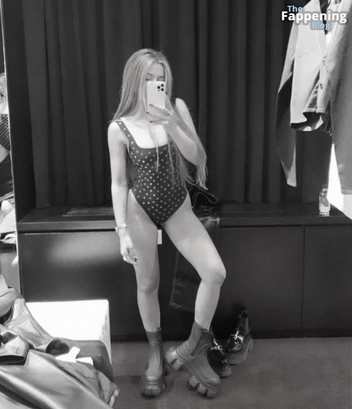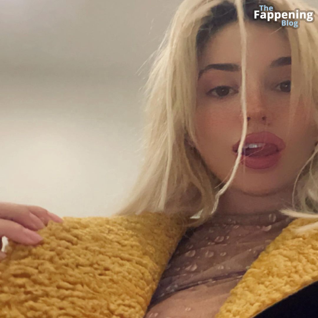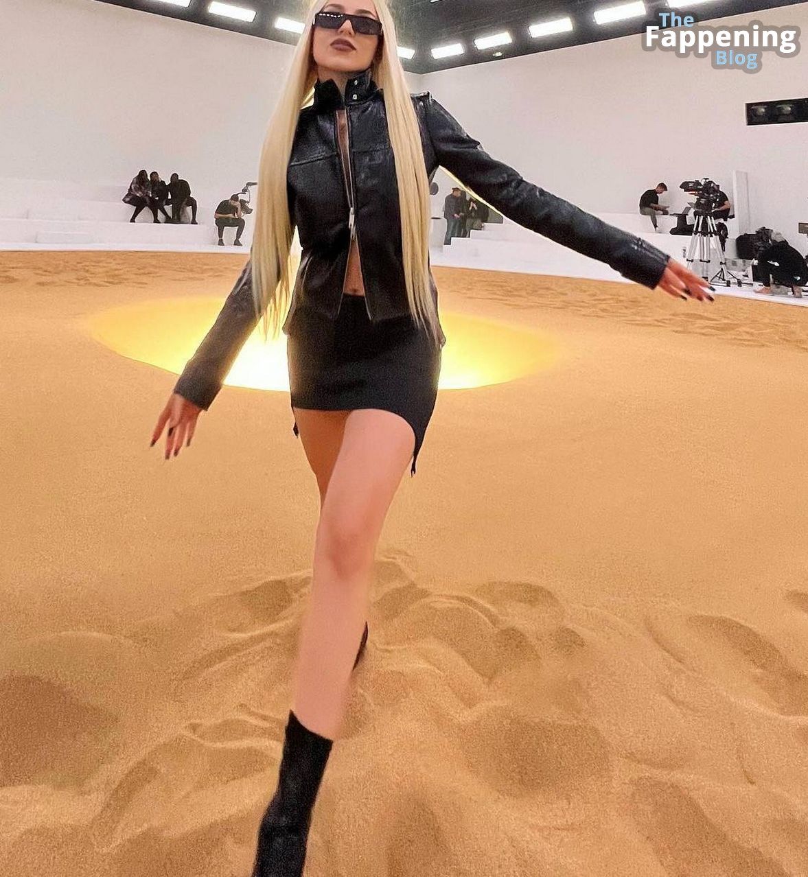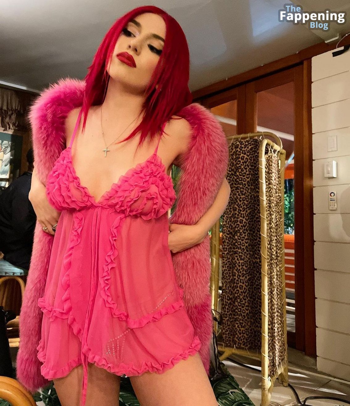 A Ava Max le encanta mostrarse casi desnuda en sus fotos también. Siempre publica imágenes seductoras en Instagram, mostrando su confianza y atractivo sexual. Y hasta conseguimos algunas fotos falsas filtradas de ella.