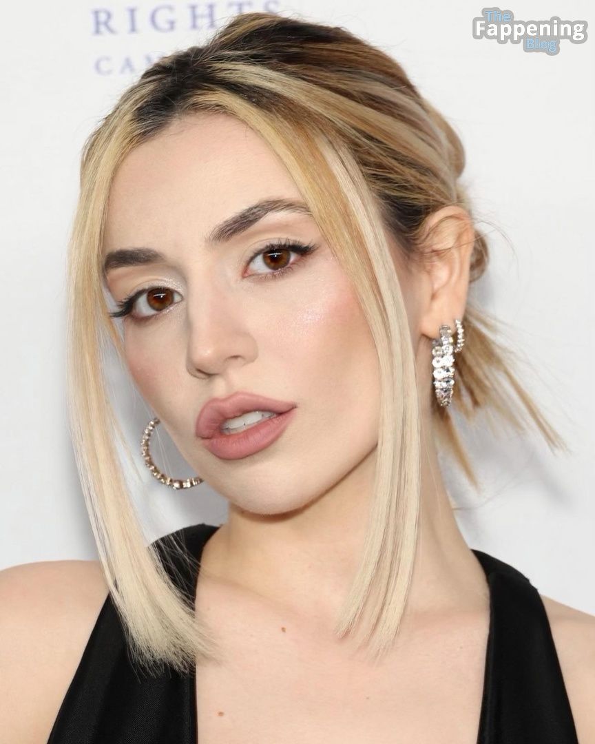 A Ava Max no le da miedo presumir sus atributos, especialmente sus enormes pechos. Luce atuendos reveladores que muestran sus curvas y sexualidad, como esas camisetas blancas ajustadas que no dejan mucho a la imaginación: se pueden ver sus pezones grandes a través de ellas.