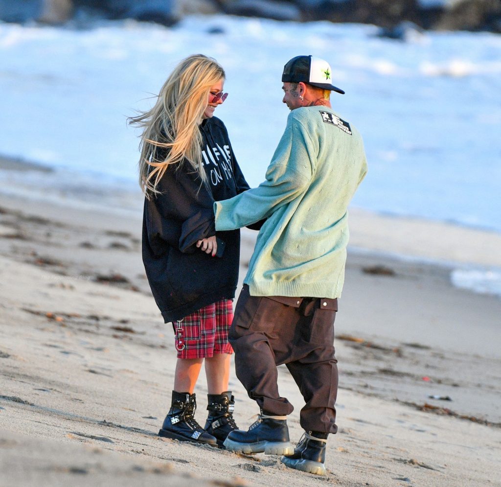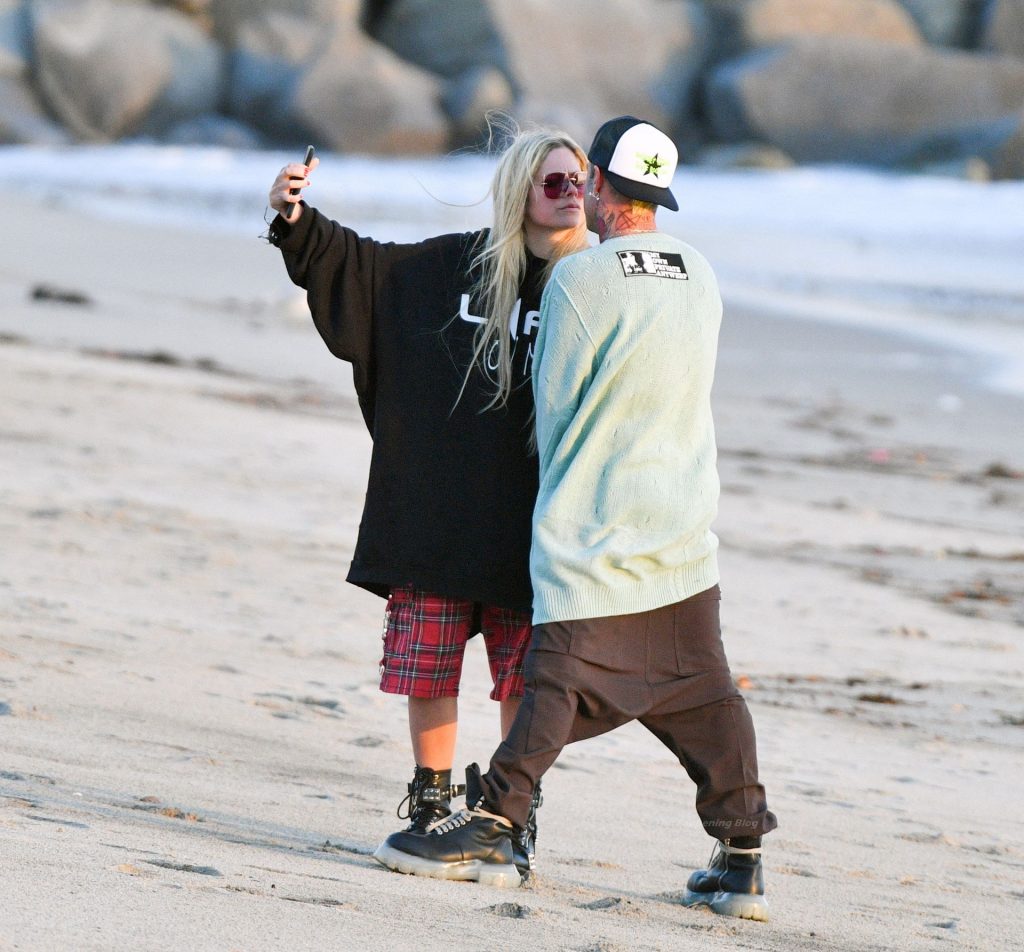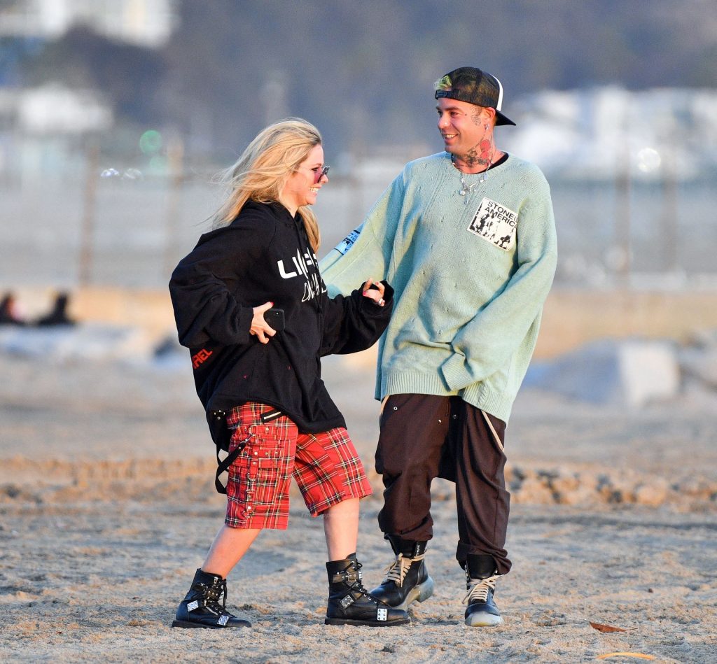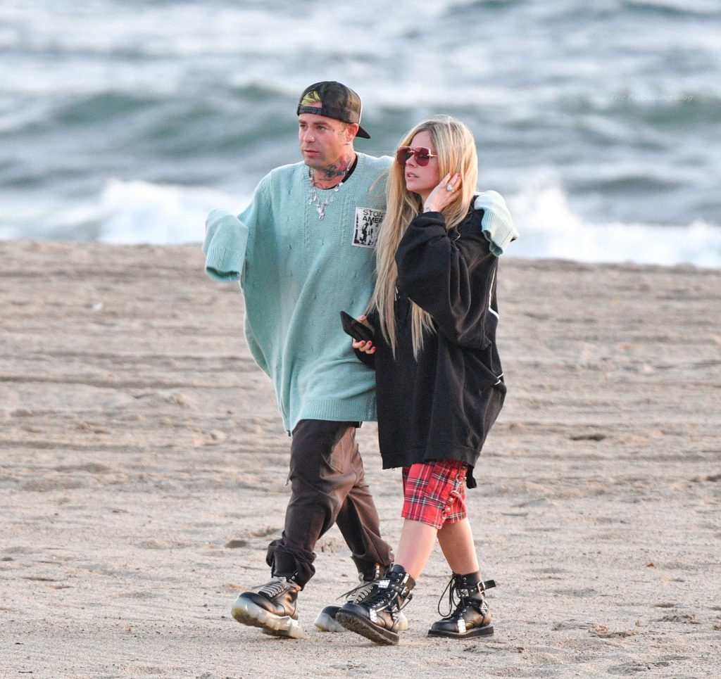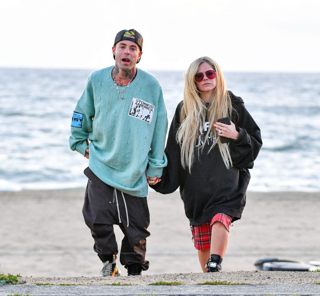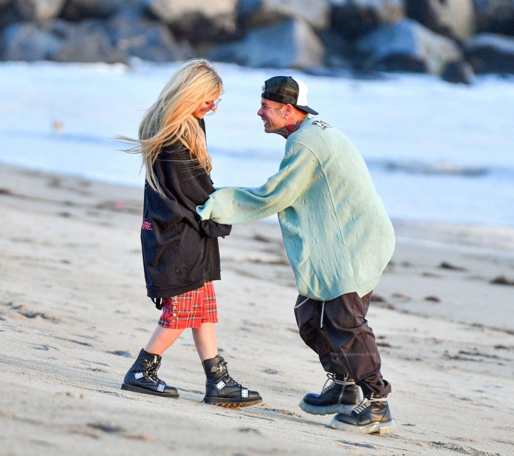 Avril Lavigne celebra el 34º cumpleaños de su nuevo novio rockero Mod Sun con un romántico viaje a la playa al atardecer en Santa Mónica, 11/03/2021.