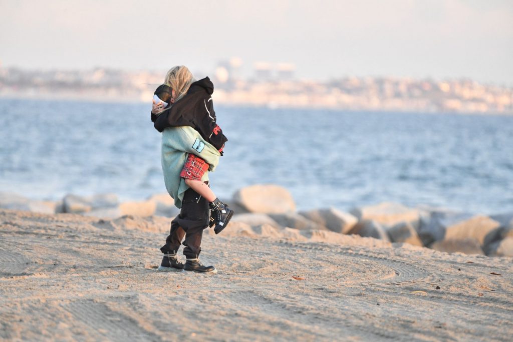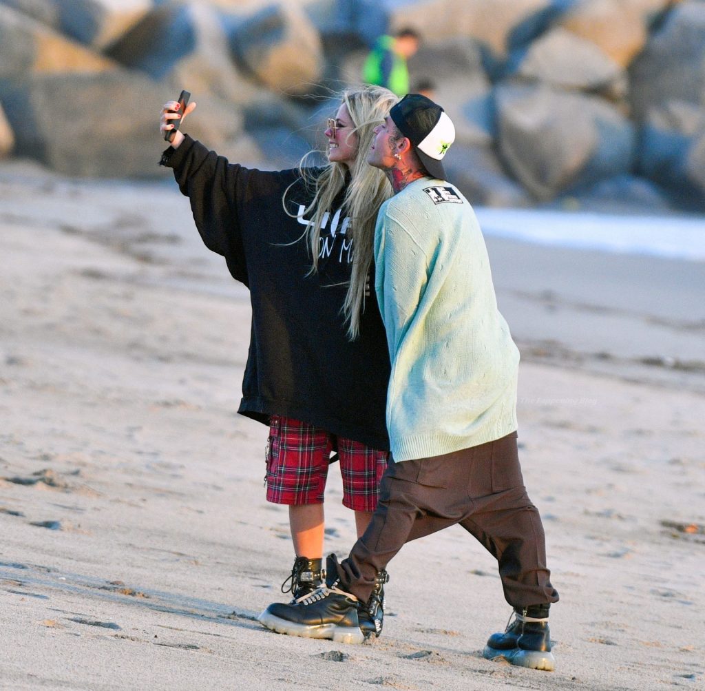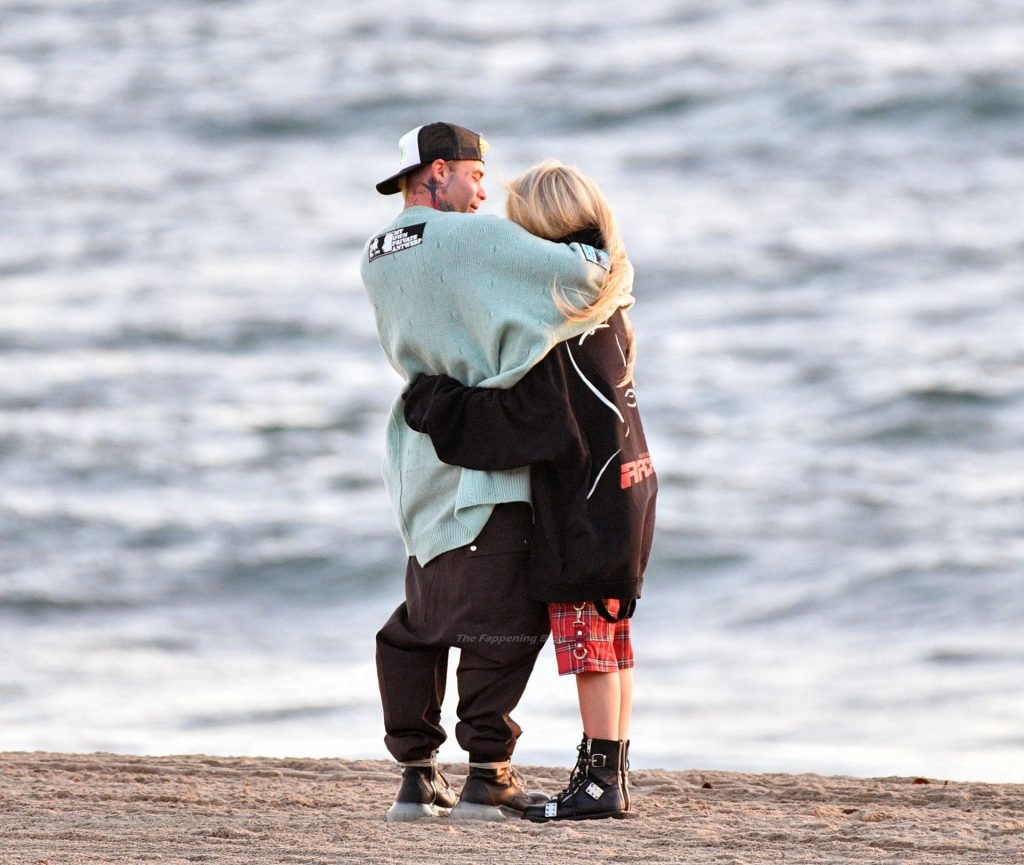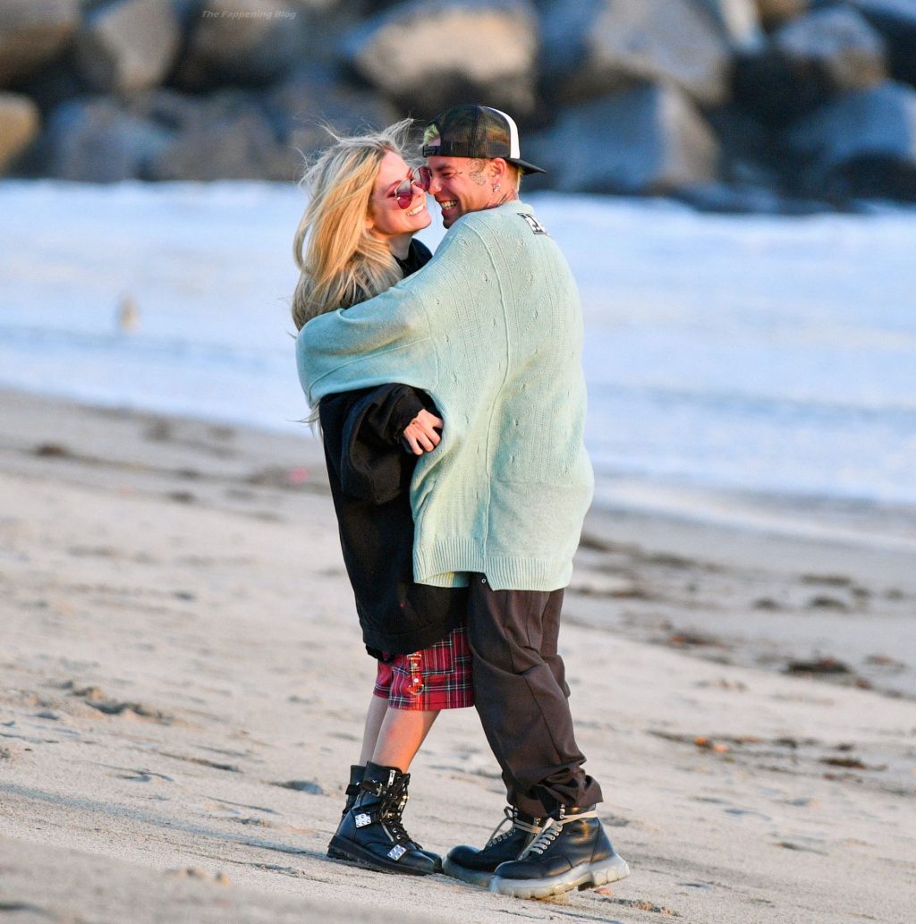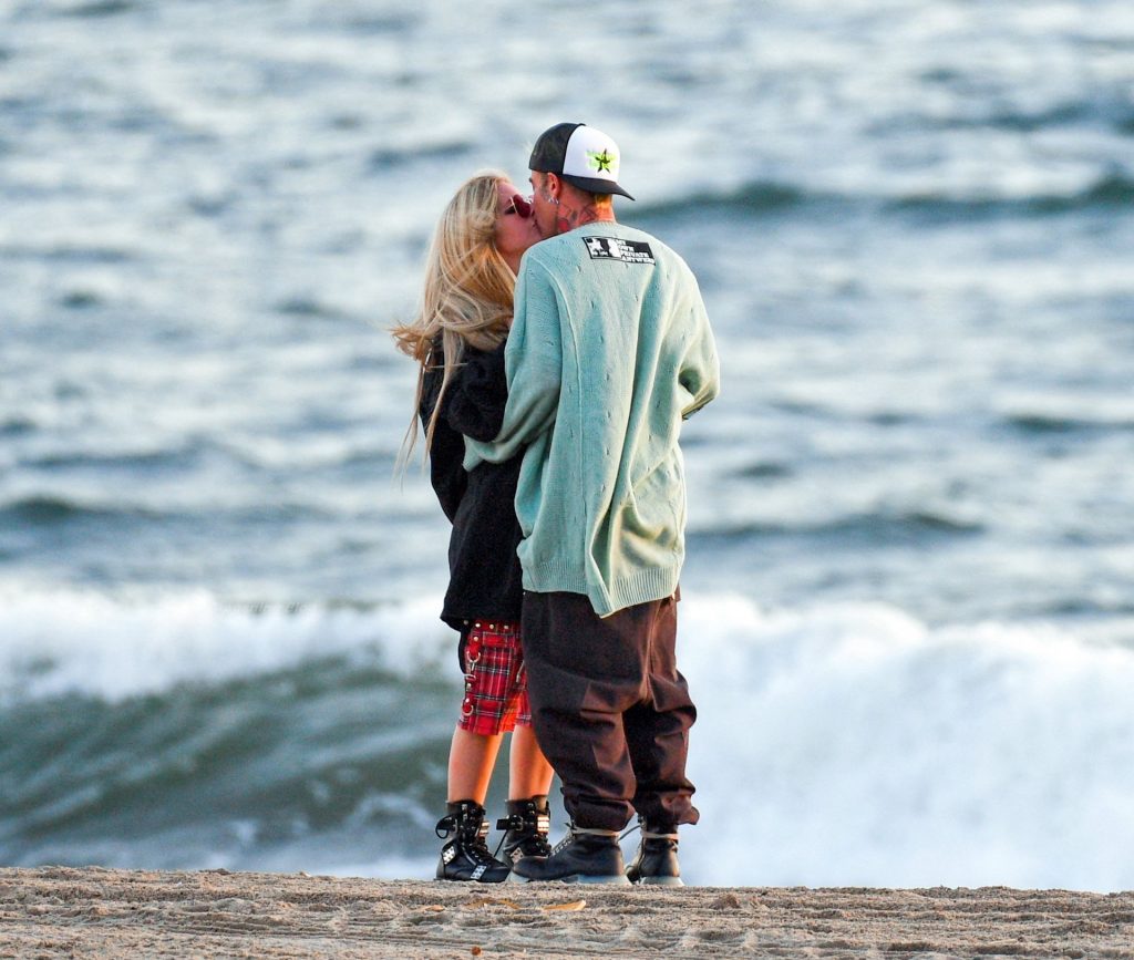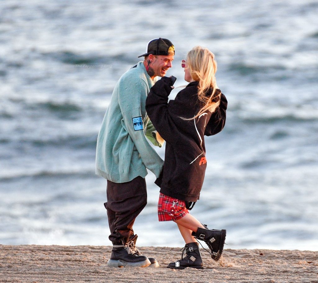 Avril Lavigne celebra el 34º cumpleaños de su nuevo novio rockero Mod Sun con un romántico viaje a la playa al atardecer en Santa Mónica, 11/03/2021.