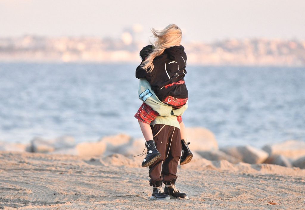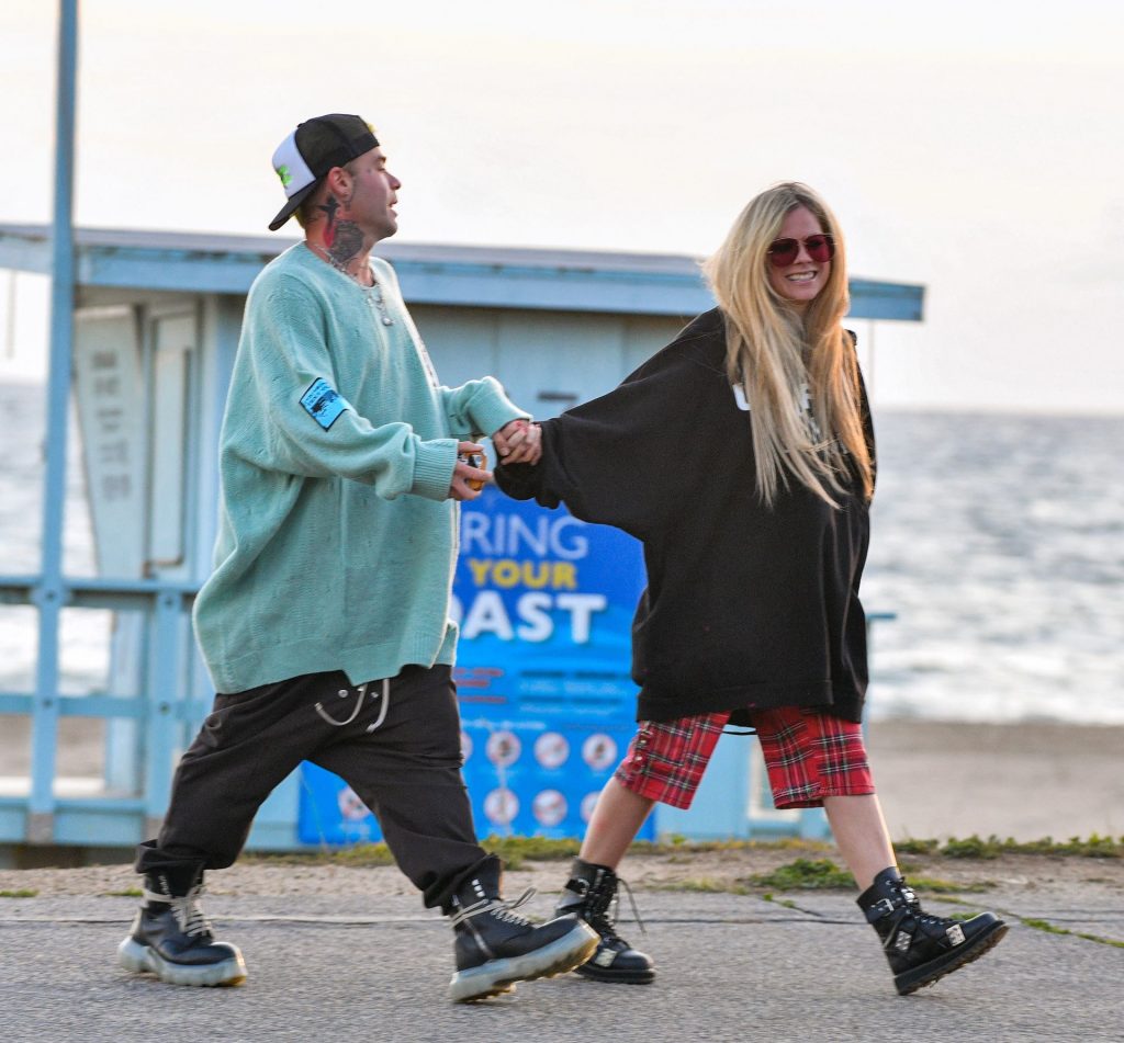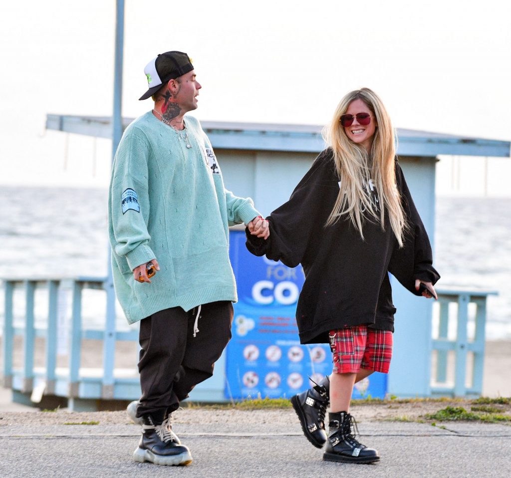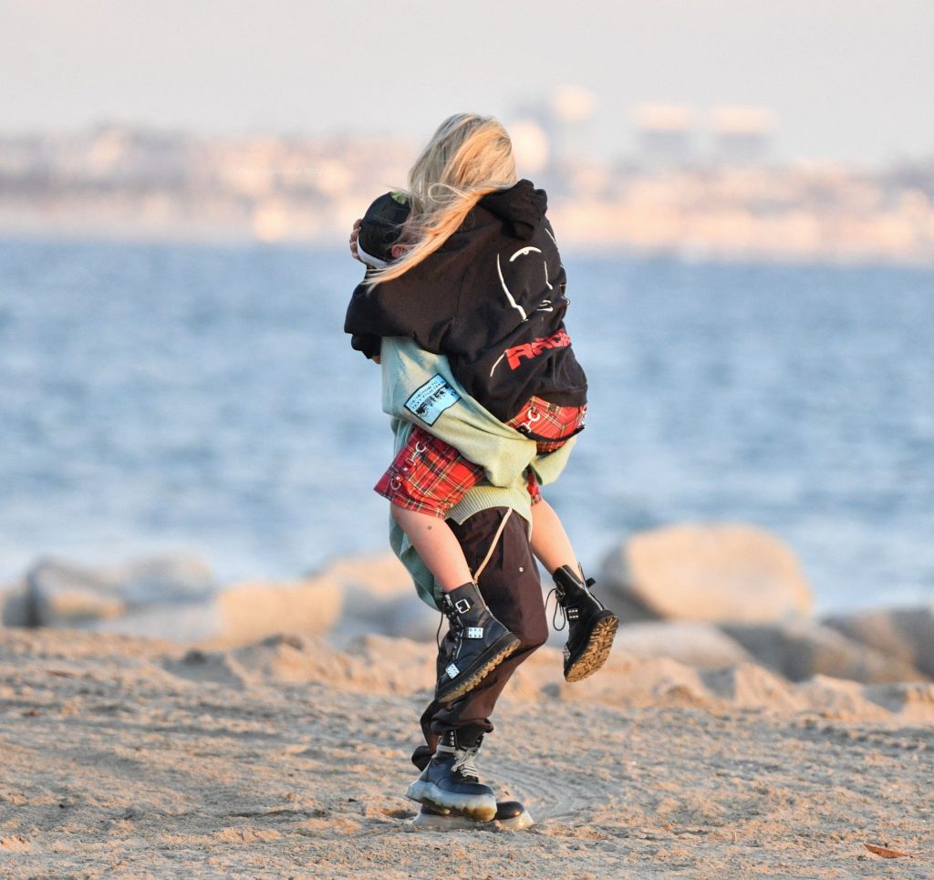 Los dos tortolitos parecían estar perdidamente enamorados mientras se besaban, se tomaban de la mano y se hacían divertidas selfies. Avril, de 36 años, hizo reír a su novio tatuado con un poco de guitarra imaginaria, y ambos estallaron en carcajadas mientras jugaban como adolescentes enamorados. En un momento, Mod Sun, cuyo nombre real es Derek Smith, levantó a su chica y ella se sentó a horcajadas sobre él.