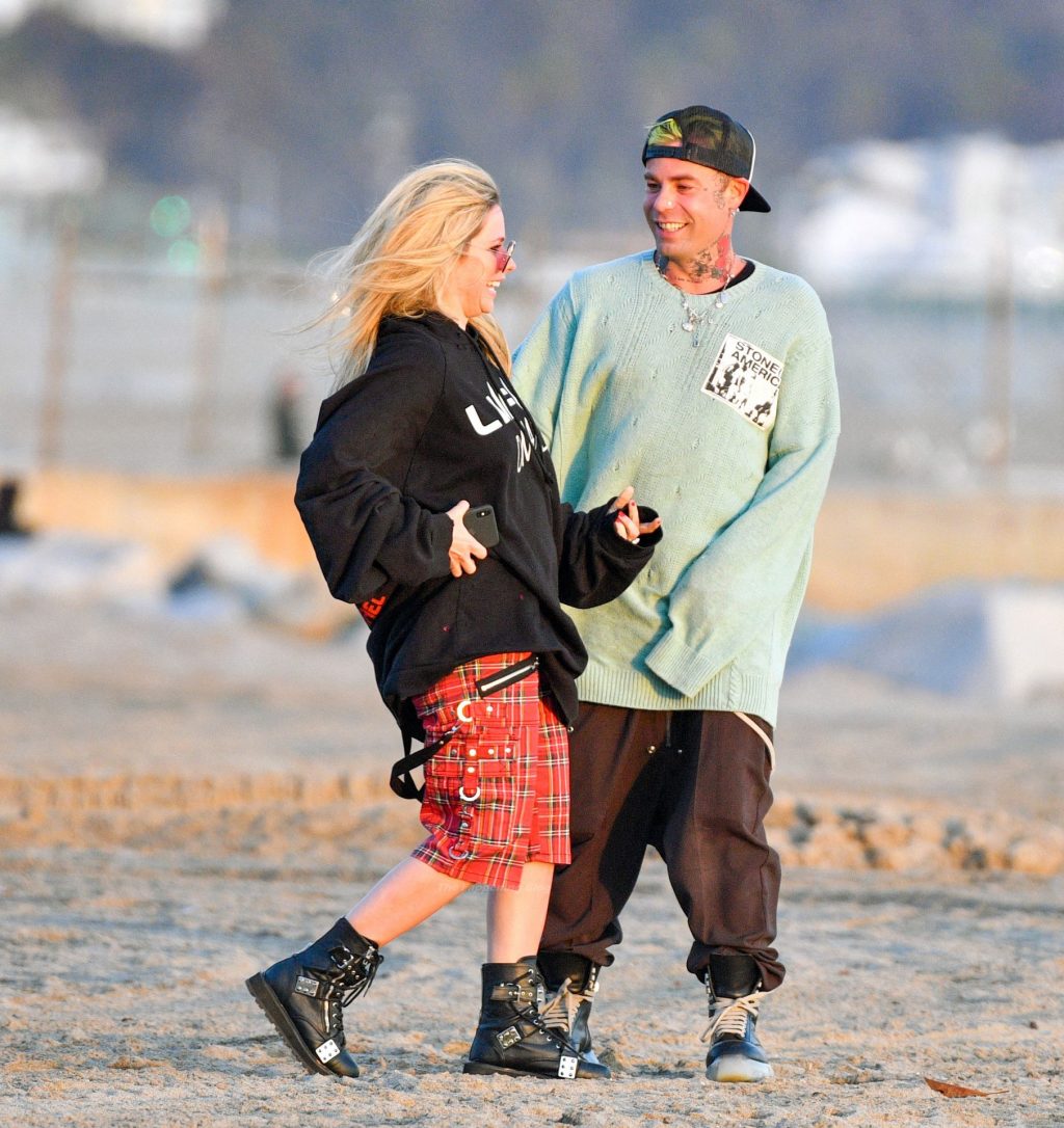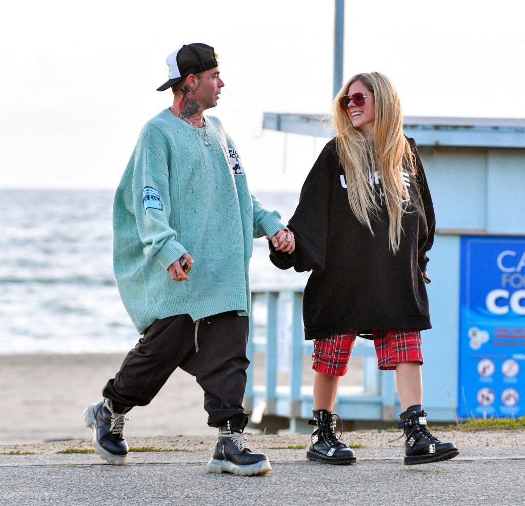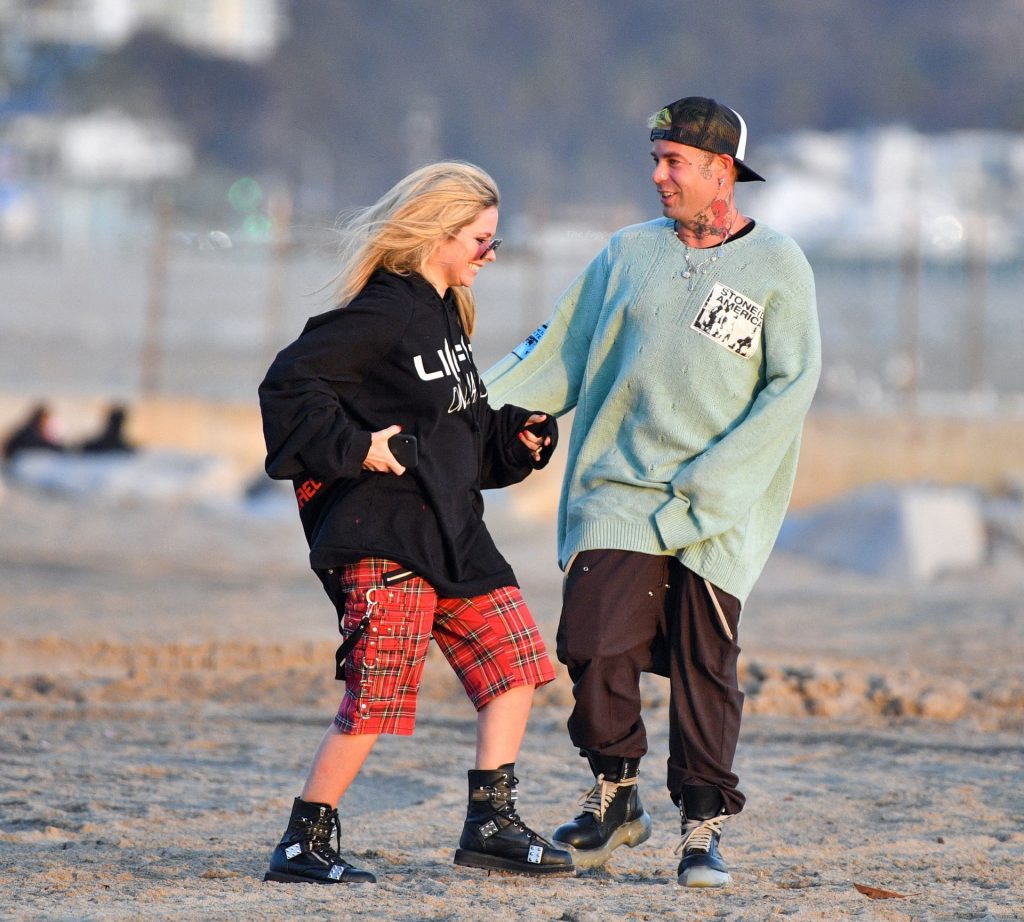 Los dos tortolitos parecían estar perdidamente enamorados mientras se besaban, se tomaban de la mano y se hacían divertidas selfies. Avril, de 36 años, hizo reír a su novio tatuado con un poco de guitarra imaginaria, y ambos estallaron en carcajadas mientras jugaban como adolescentes enamorados. En un momento, Mod Sun, cuyo nombre real es Derek Smith, levantó a su chica y ella se sentó a horcajadas sobre él.