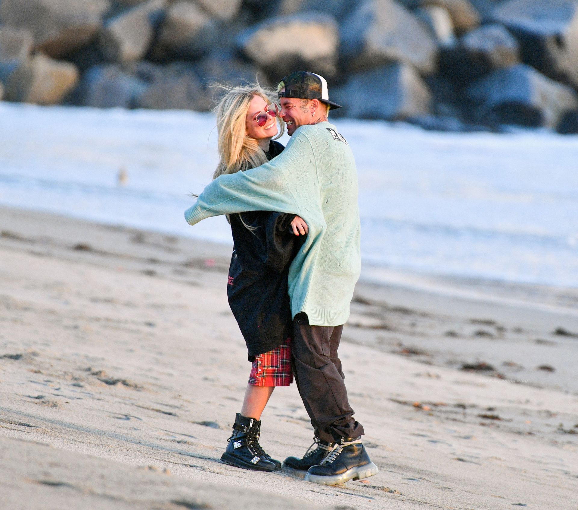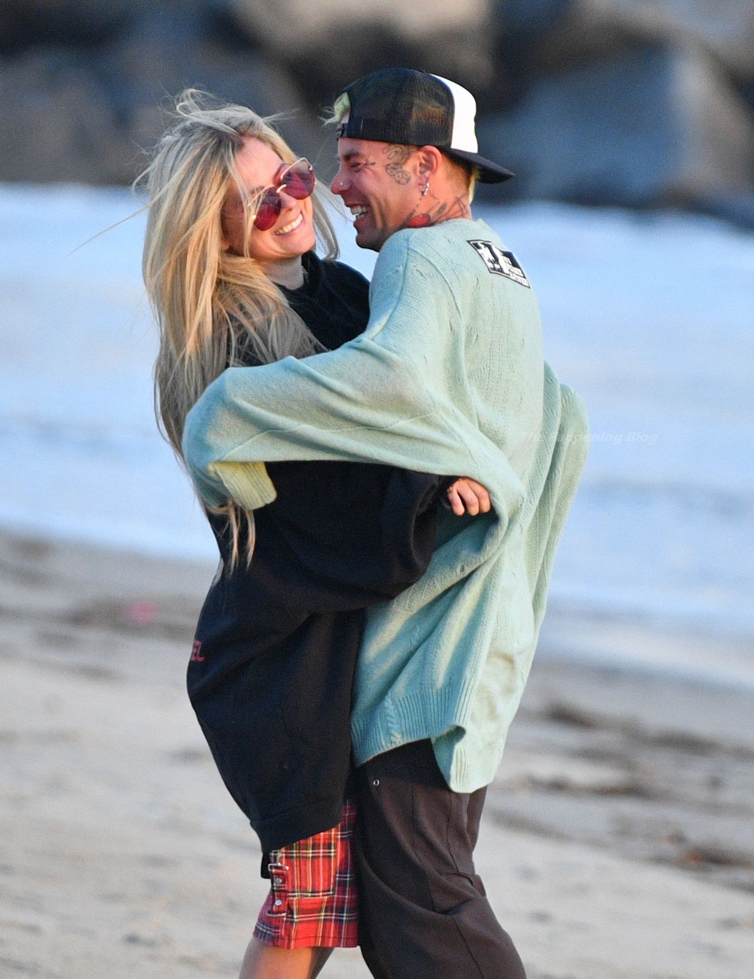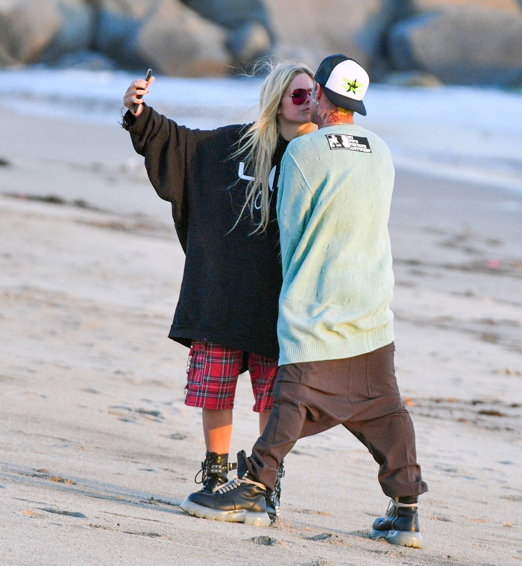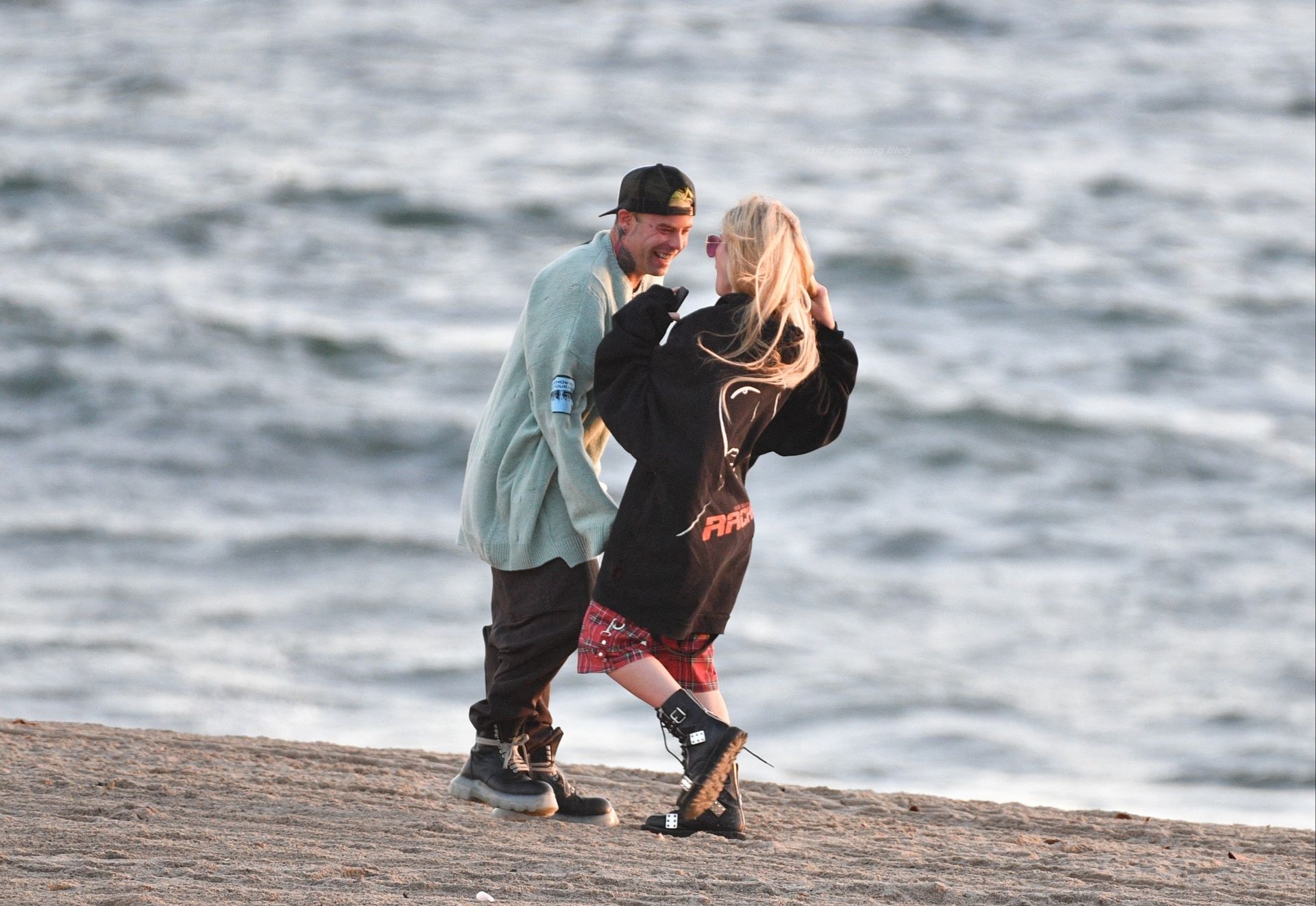 Avril Lavigne celebra el 34º cumpleaños de su nuevo novio rockero Mod Sun con un romántico viaje a la playa al atardecer en Santa Mónica, 11/03/2021.