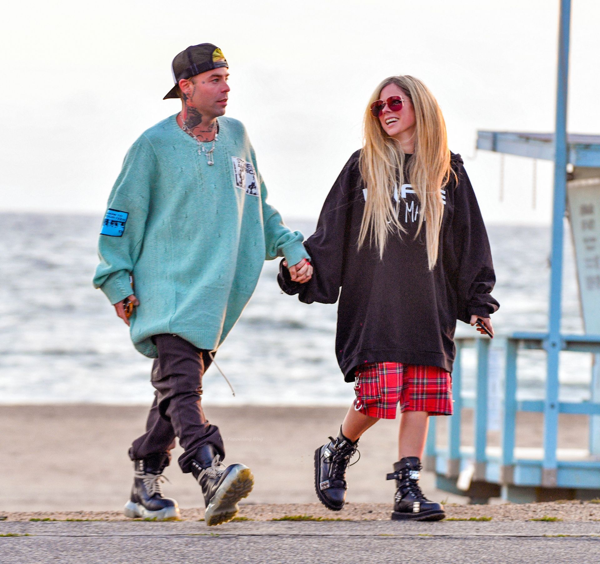 Los dos tortolitos parecían estar perdidamente enamorados mientras se besaban, se tomaban de la mano y se hacían divertidas selfies. Avril, de 36 años, hizo reír a su novio tatuado con un poco de guitarra imaginaria, y ambos estallaron en carcajadas mientras jugaban como adolescentes enamorados. En un momento, Mod Sun, cuyo nombre real es Derek Smith, levantó a su chica y ella se sentó a horcajadas sobre él.