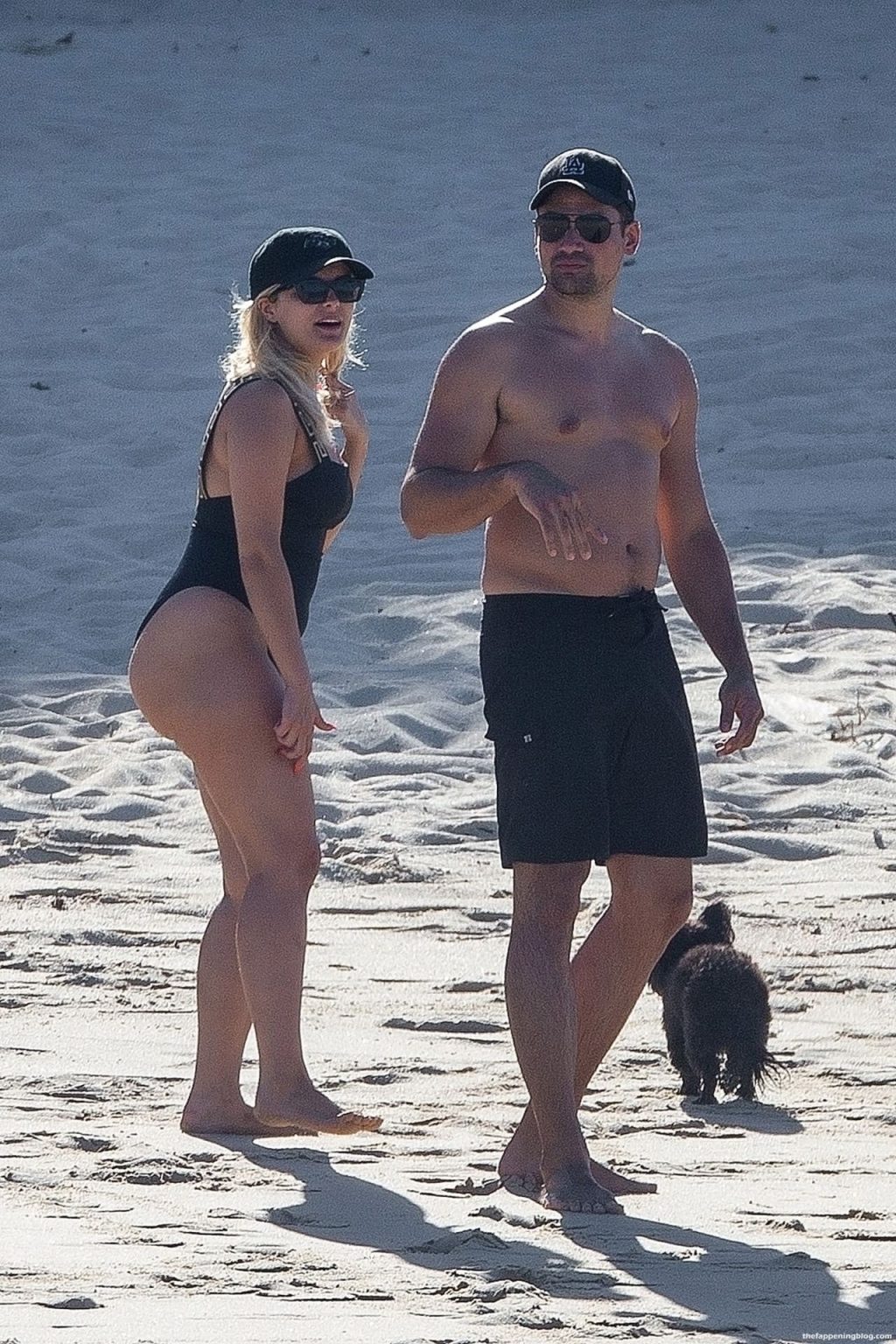 Busty Bebe Rexha is smiling while enjoying a beach day in Cabo with her boyfriend (November 2020). The singer looks fantastic in a black one-piece swimsuit, as she goes for a swim. Bebe has some fun with a bodyboard who is fucking this big booty and enjoying the sun-soaked vacation.