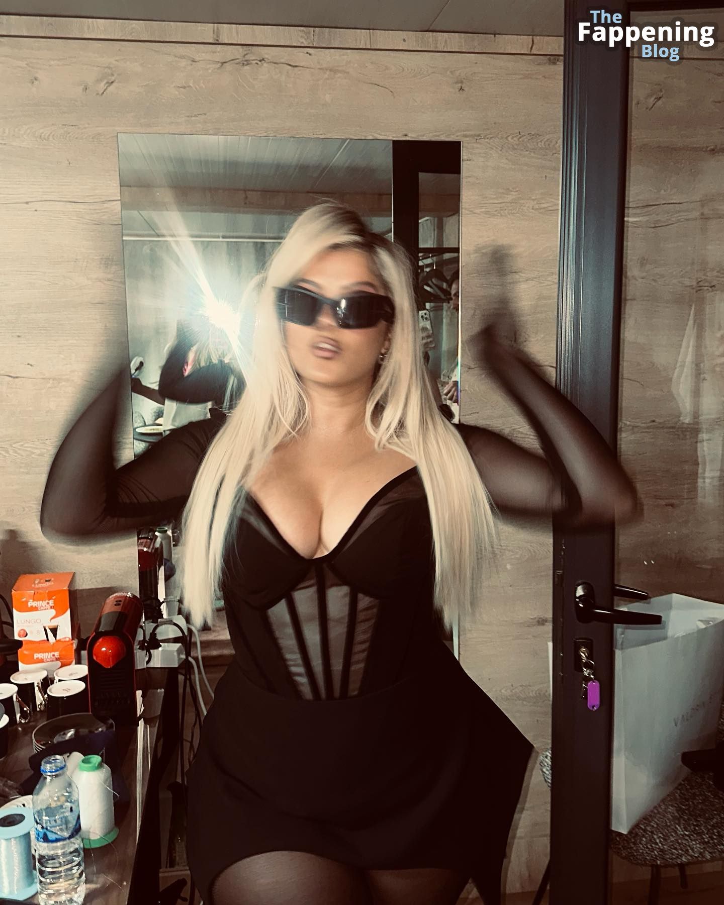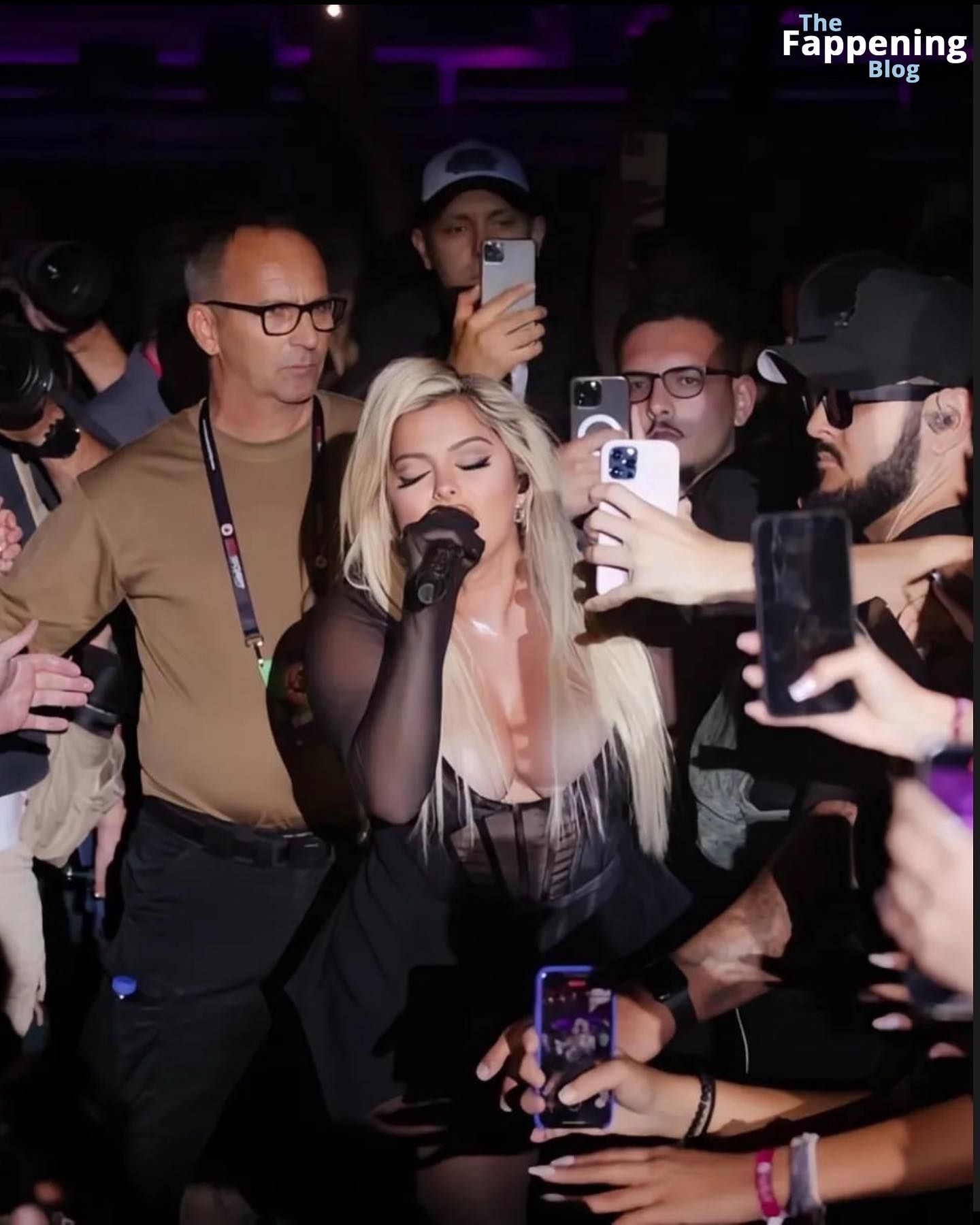 Bebe Rexha luce su escote con un conjunto negro de concierto. Esta cantante se ve increíblemente feroz y sexy, y estamos obsesionados con cómo lo está dando todo.