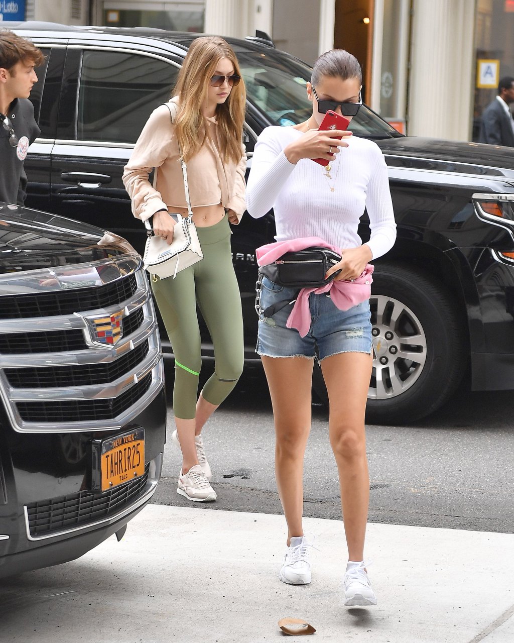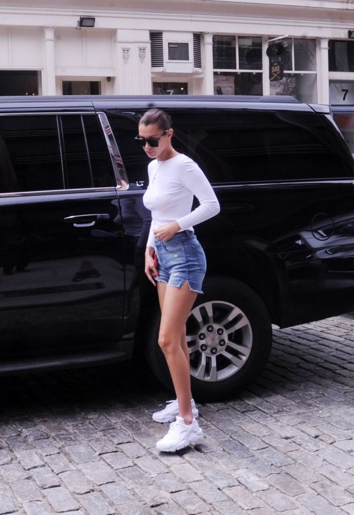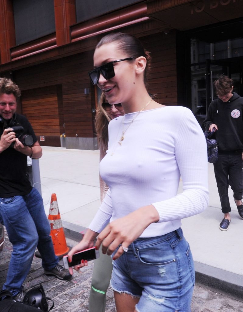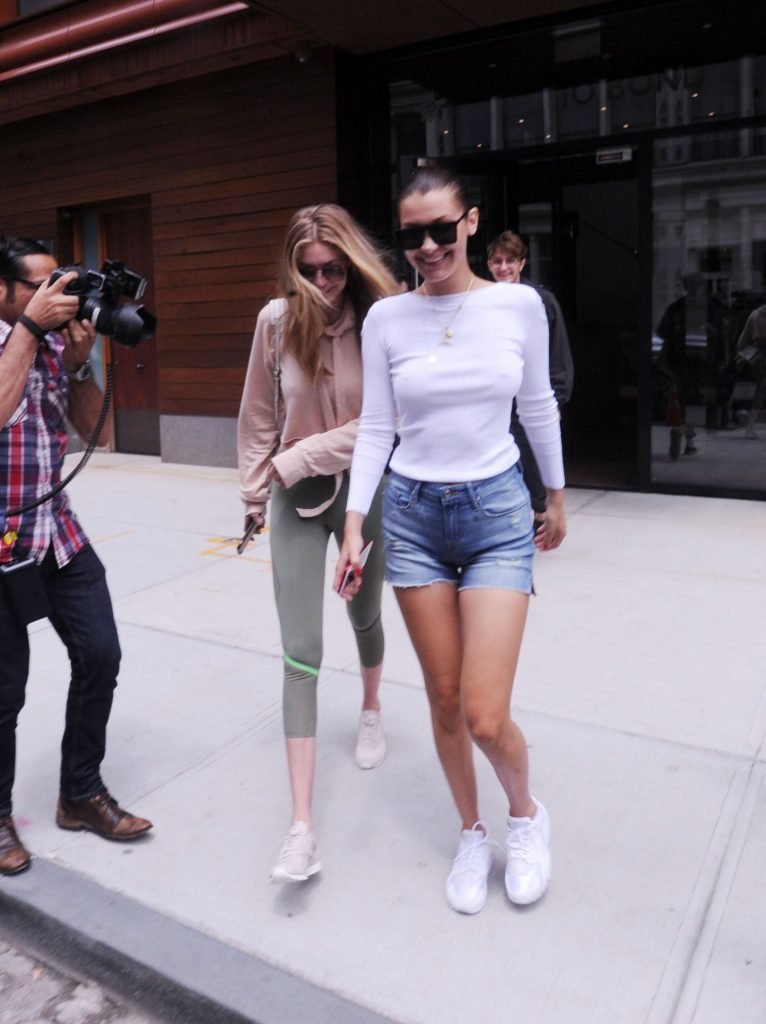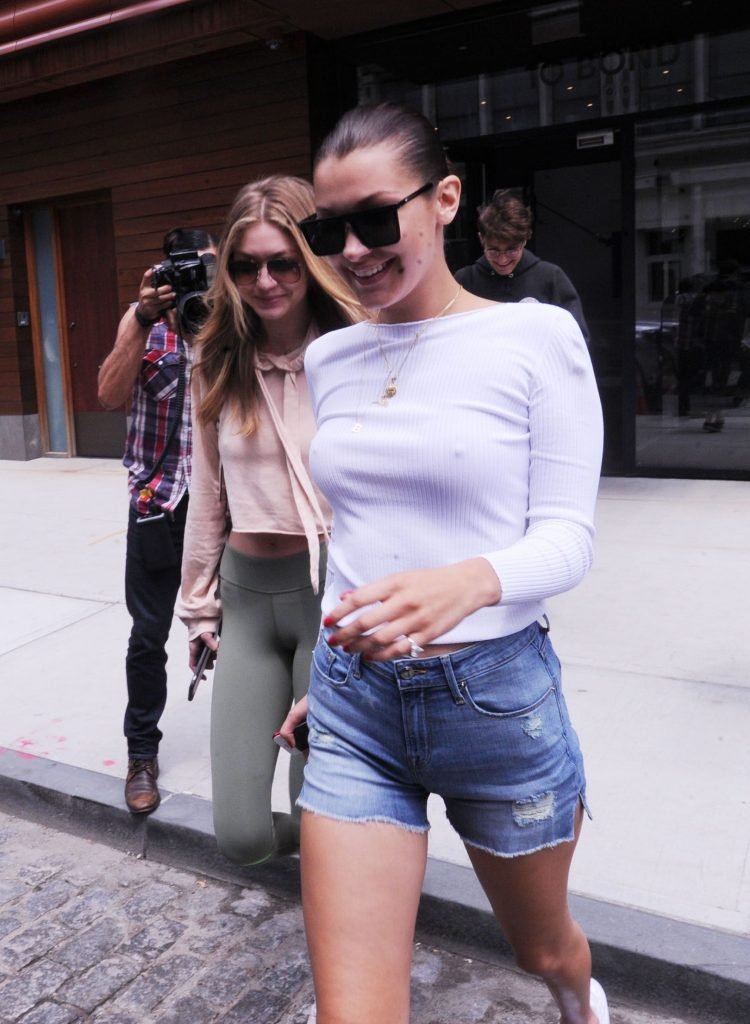 Gigi, Anwar y Bella Hadid sin sujetador salen en Nueva York, 27/07/2017. Isabella (Bella) Hadid es una supermodelo y actriz estadounidense. Edad: 20.