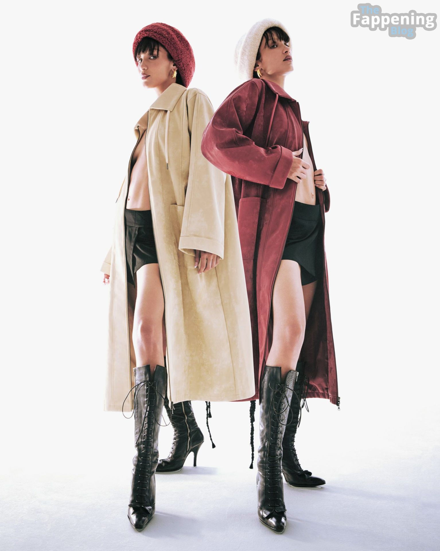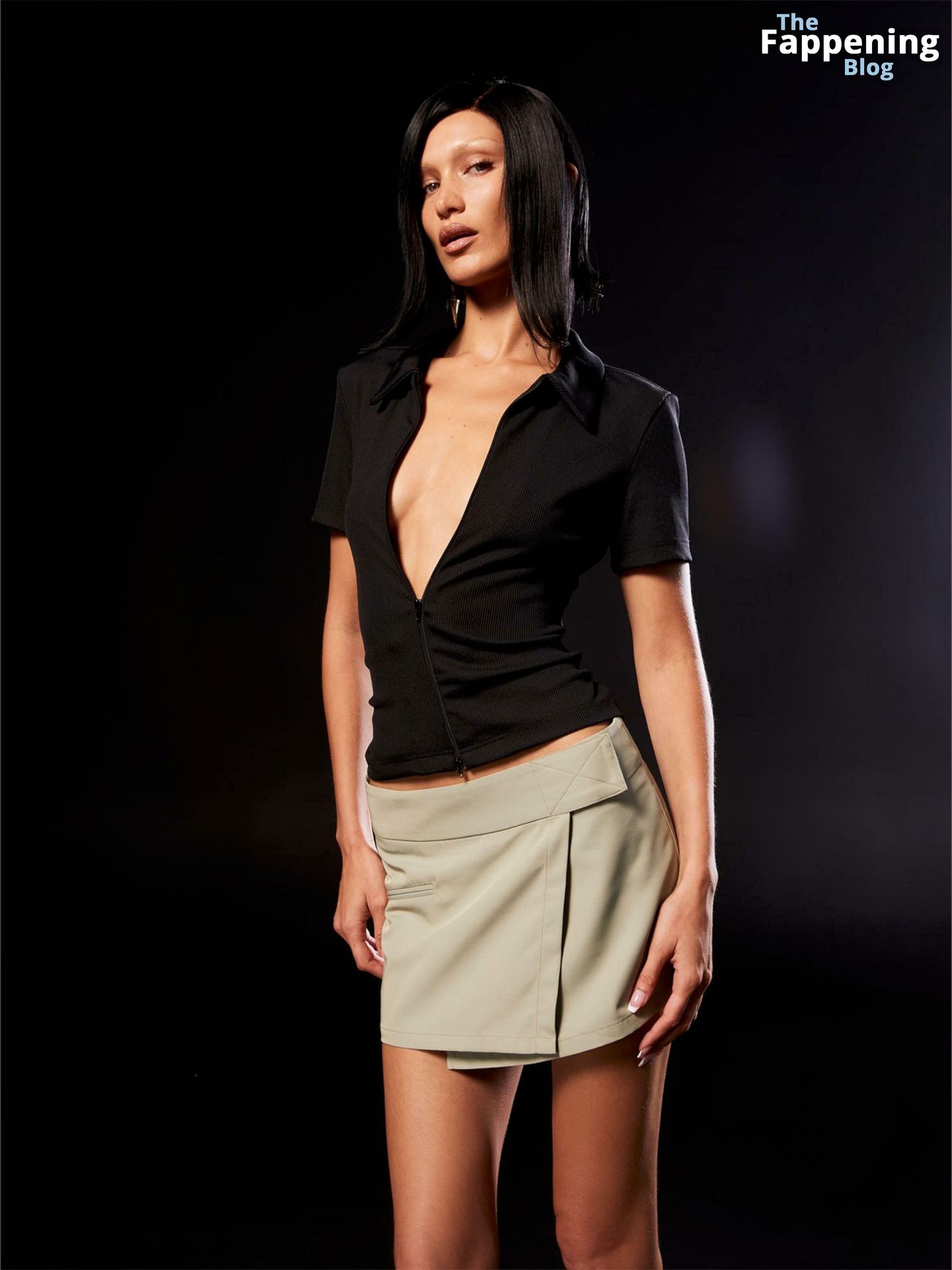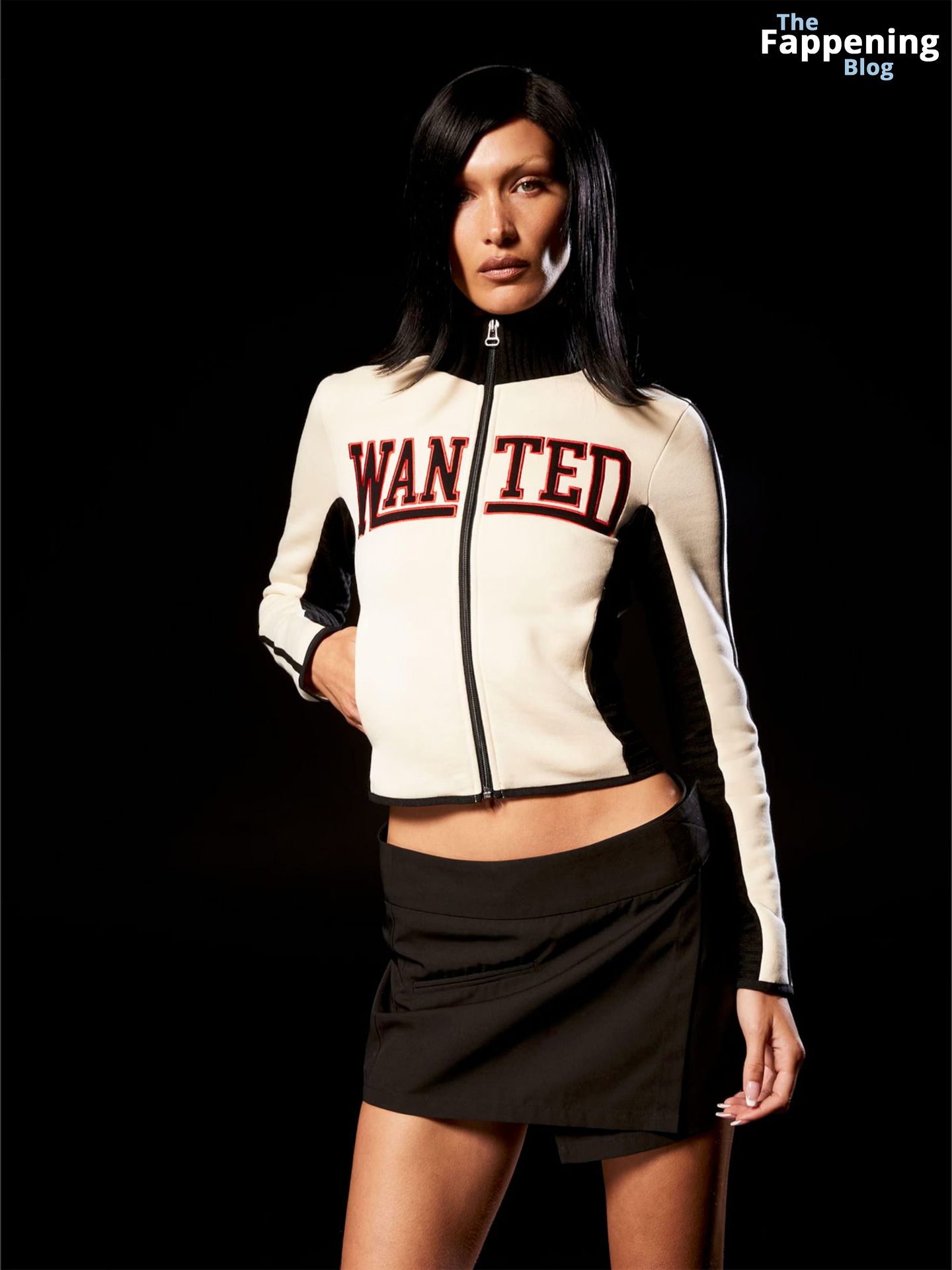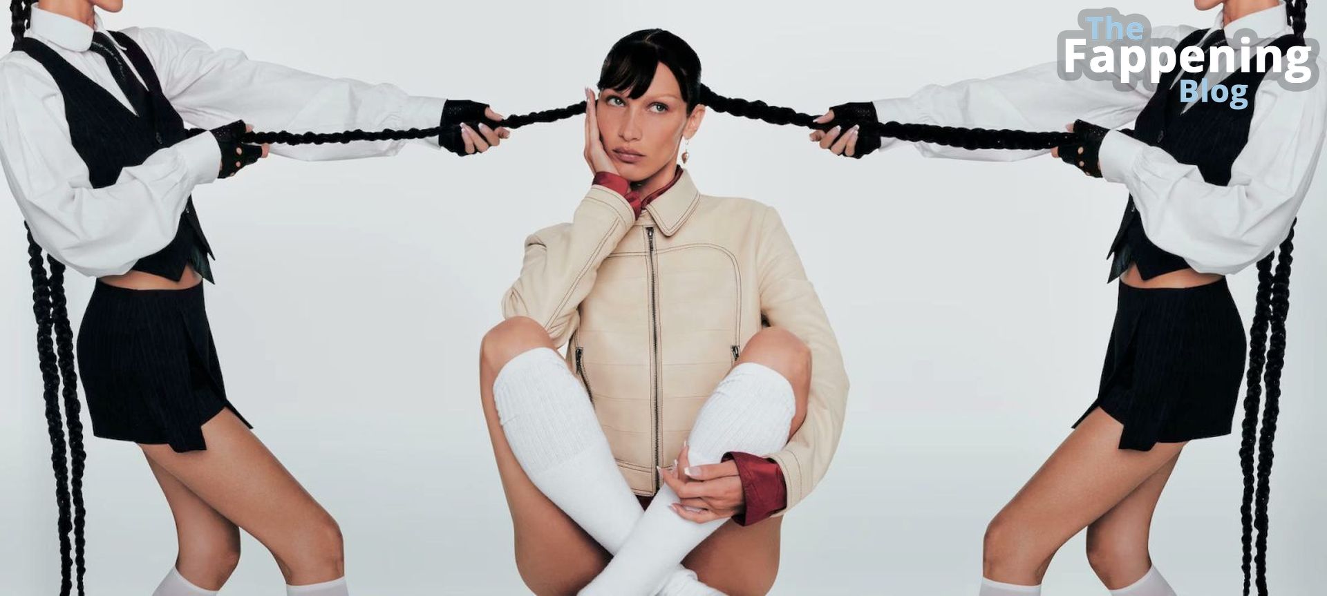 Bella Hadid muestra sus atractivas piernas y posa sin sostén en la colección otoño/invierno para “About You”, revelando sus pezones (2023).